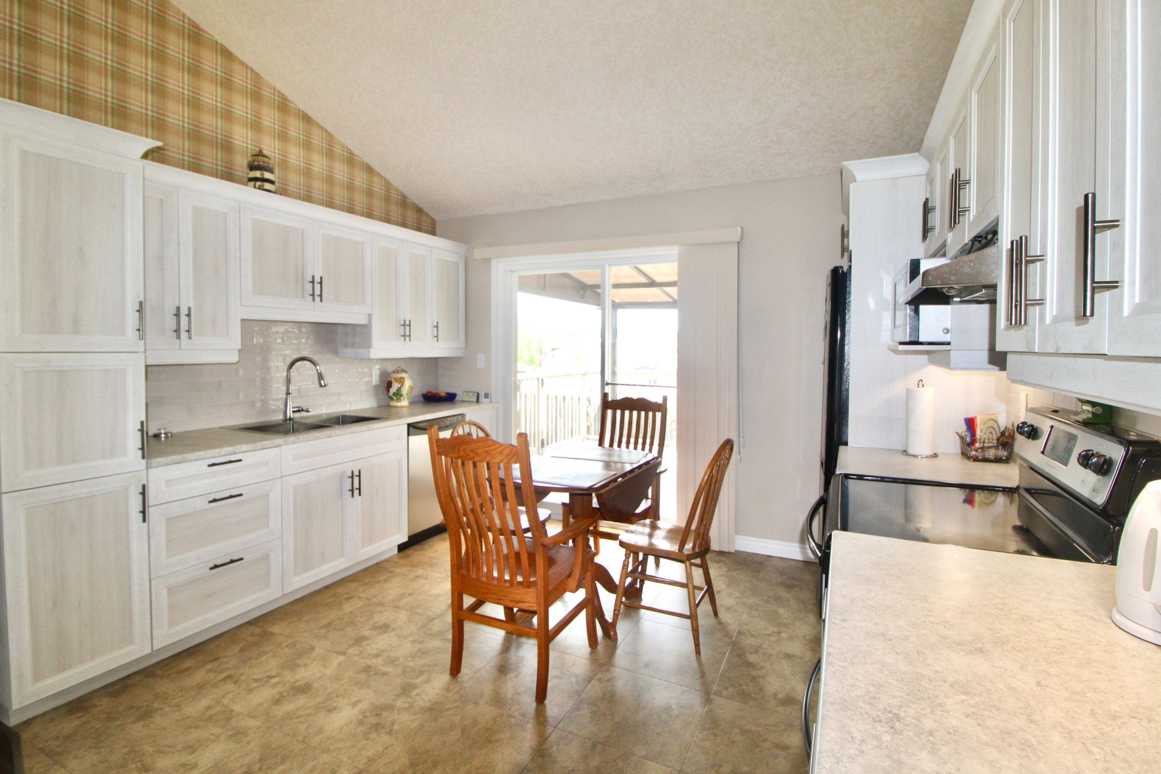 • Kitchen walks out to a partially covered deck for outdoor enjoyment.