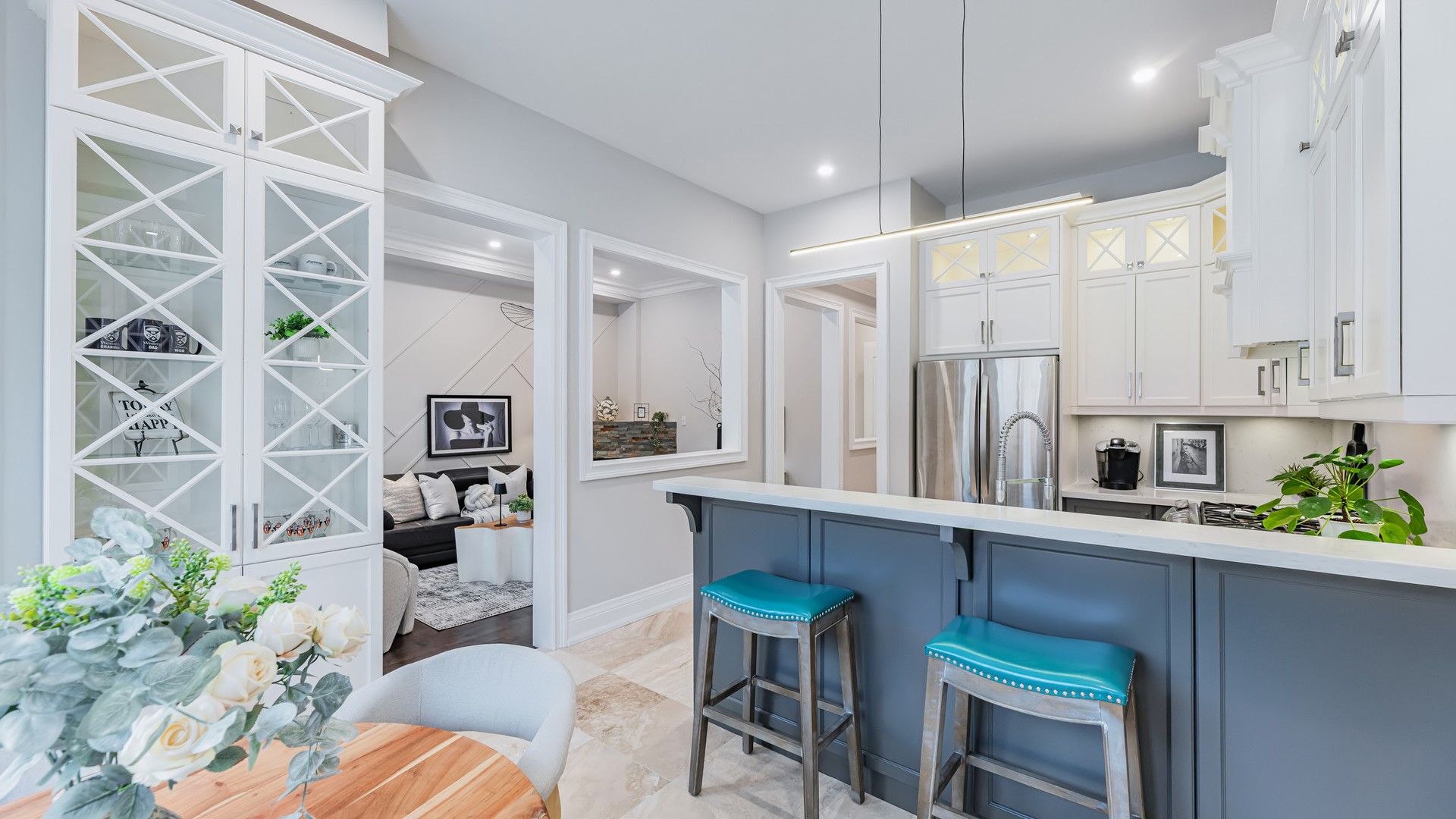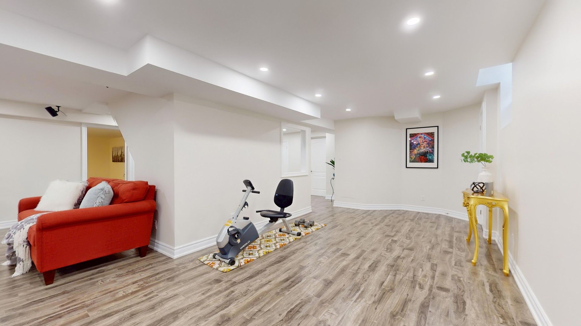 Located in the highly sought-after lake wilcox community, just a short walk to lake wilcox park, this beautifully upgraded home offers exceptional curb appeal. The stone-paved driveway fits three cars side by side, and the double garage features high ceilings and ample storage. Professionally landscaped front and back yards feature hydrangeas, roses, and seasonal blooms, with a lush lawn, interlocking stone patio, and a 9-foot wooden pergola in the backyard-perfect for summer gatherings. Inside, a 72" x 8' glass-paneled front door opens to a bright main floor with 10-foot ceilings. Marble floors highlight the foyer, hallway, and kitchen, while solid hardwood flows throughout the rest of the level. The kitchen offers two-tone cabinetry, glass display cabinets with lighting, stone countertops, and a bar-style island. The family room features a fireplace and garden views, and the office enjoys a large window. All first-floor doors are 8 feet high, and windows are triple-pane for energy efficiency and comfort. Lovingly maintained by the same owner for over 10 years, upgrades include triple-glazed windows(2021, lifetime warranty), upgraded light features (2025); insulation (2021), furnace & ac (2021), front and backyard doors (2022), backyard patio, pergola, and shed (2023), roof (2016),and stone garden beds. Interior improvements include updated baseboards, door and window trim, crown molding, designer feature walls, and freshly painted smooth ceilings. The finished basement features a large bedroom, three-piece bathroom, open-concept recreation area, dedicated home theater with in-wall wiring, laminate flooring throughout, and a spacious cold room for storage.