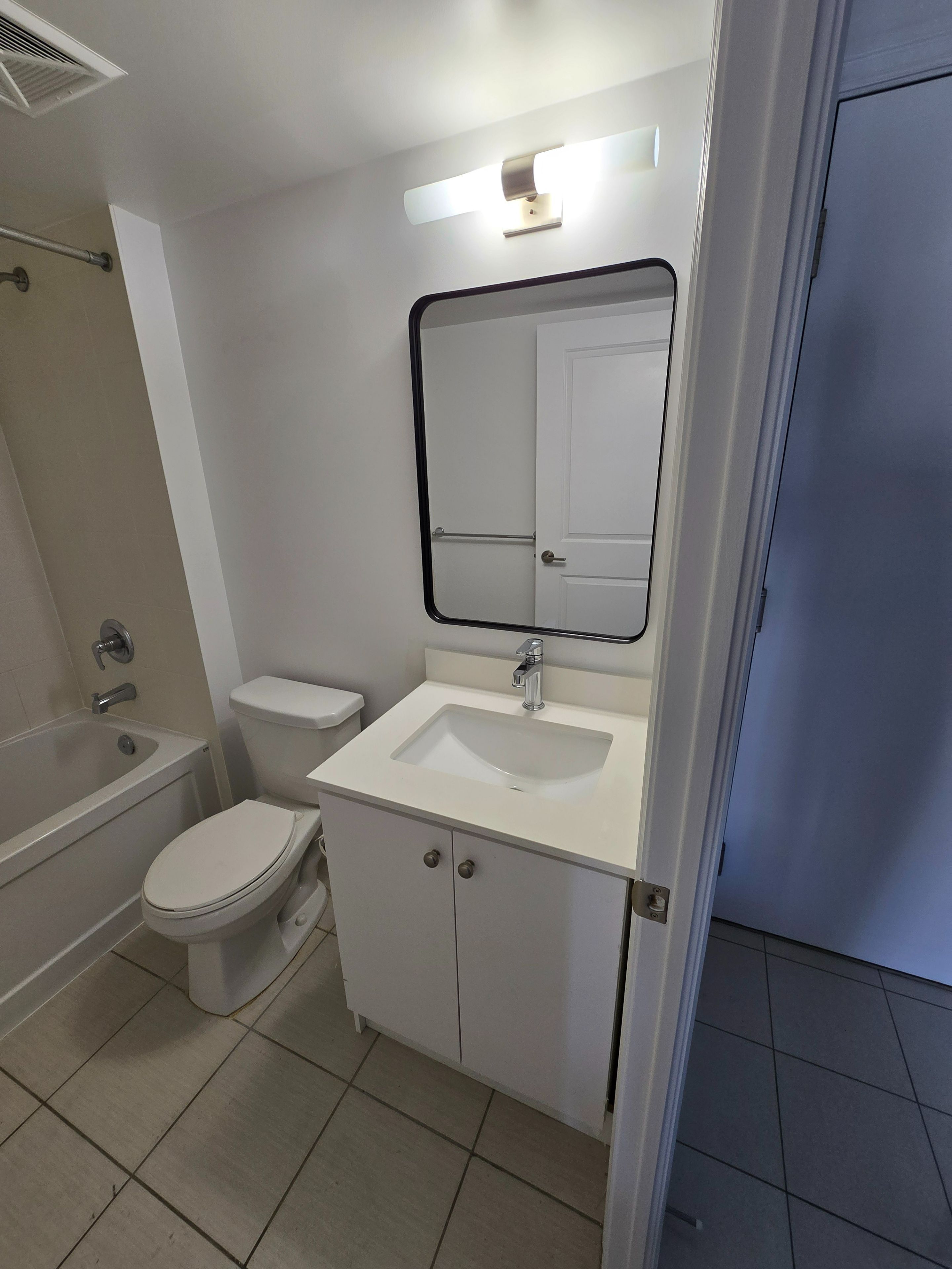 • Updated bathroom with new vanity sink, cabinet, faucet, and mirror.