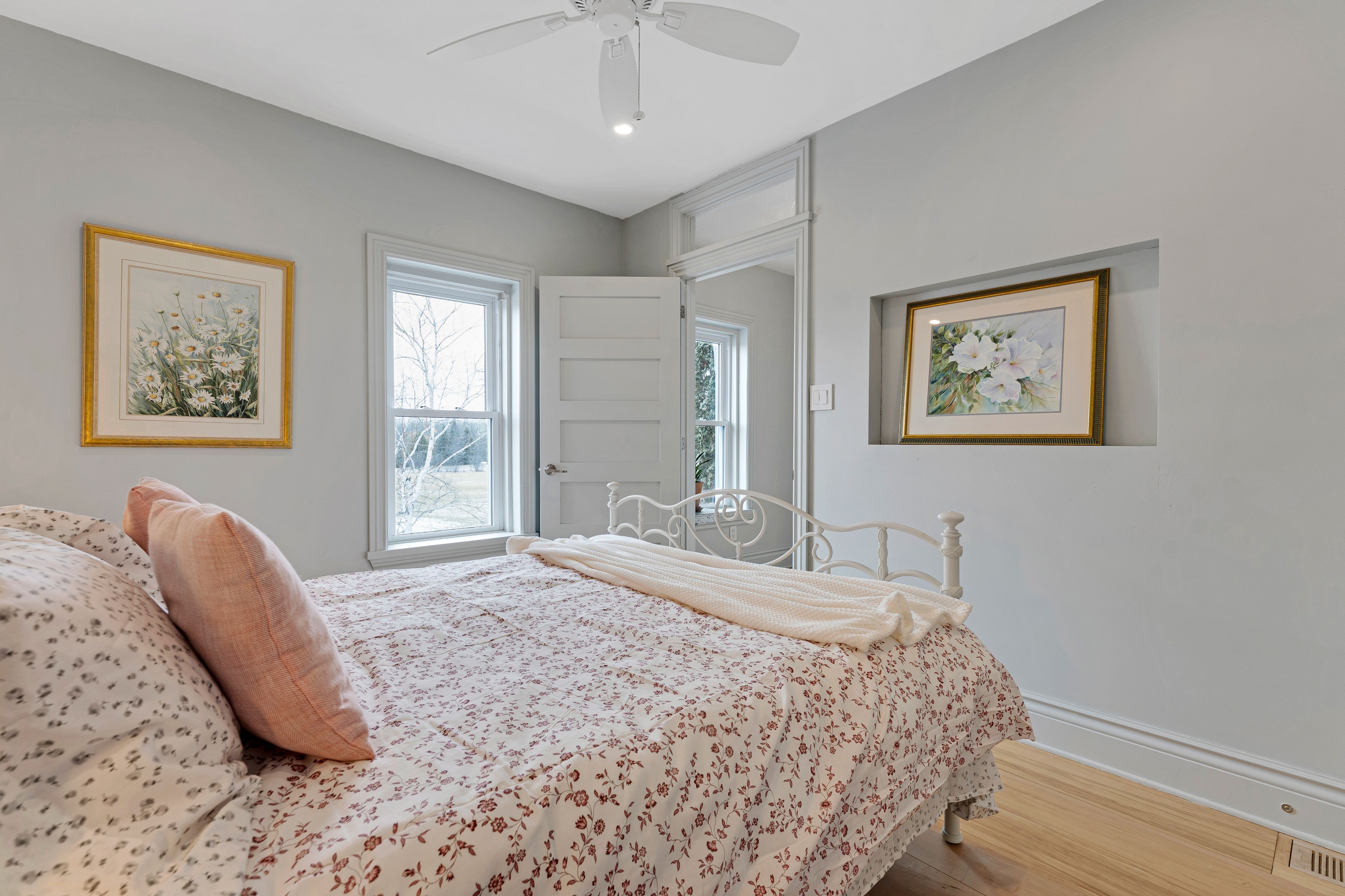 Set on a picturesque 30 acre parcel just minutes from perth, this classic red brick farmhouse offers the perfect blend of rural charm and modern flexibility. With over 2,500 sq ft of living space, this home adapts effortlessly to a variety of lifestyles, from growing families to multi-generational living. The main level features a spacious layout with a bright living room highlighted by a bay window and cozy propane fireplace, a convenient main floor laundry area, and a 3pc bathroom. The dining room and office were previously configured as additional bedrooms, offering excellent potential for up to 5 bedrooms if desired. A separate entrance creates an ideal setup for an in-law suite or private guest space. Upstairs, you'll find a thoughtfully renovated second floor complete with hardwood flooring and a beautifully updated 4pc bathroom featuring a custom vanity and heated floors. The heated walk up attic provides incredible bonus space - perfect for storage, a studio, or future finished living area. Outside, there is a fully fenced dog run, approximately 25 acres of workable land are currently being farmed (hay, soy, and corn), offering the opportunity to pursue your own agricultural vision. A chicken coop is already in place for those looking to embrace hobby farming. Major updates include a new septic system (2020), furnace (2020), and roof (2025), providing peace of mind for years to come. Ideally located just 8 minutes to perth, 21 minutes to carleton place, 41 minutes to kanata, and under 1. 5 hours to kingston, this property delivers the tranquility of country living without sacrificing convenience. A rare opportunity to own a versatile farmhouse on a beautiful and productive piece of land, ready to suit your lifestyle.