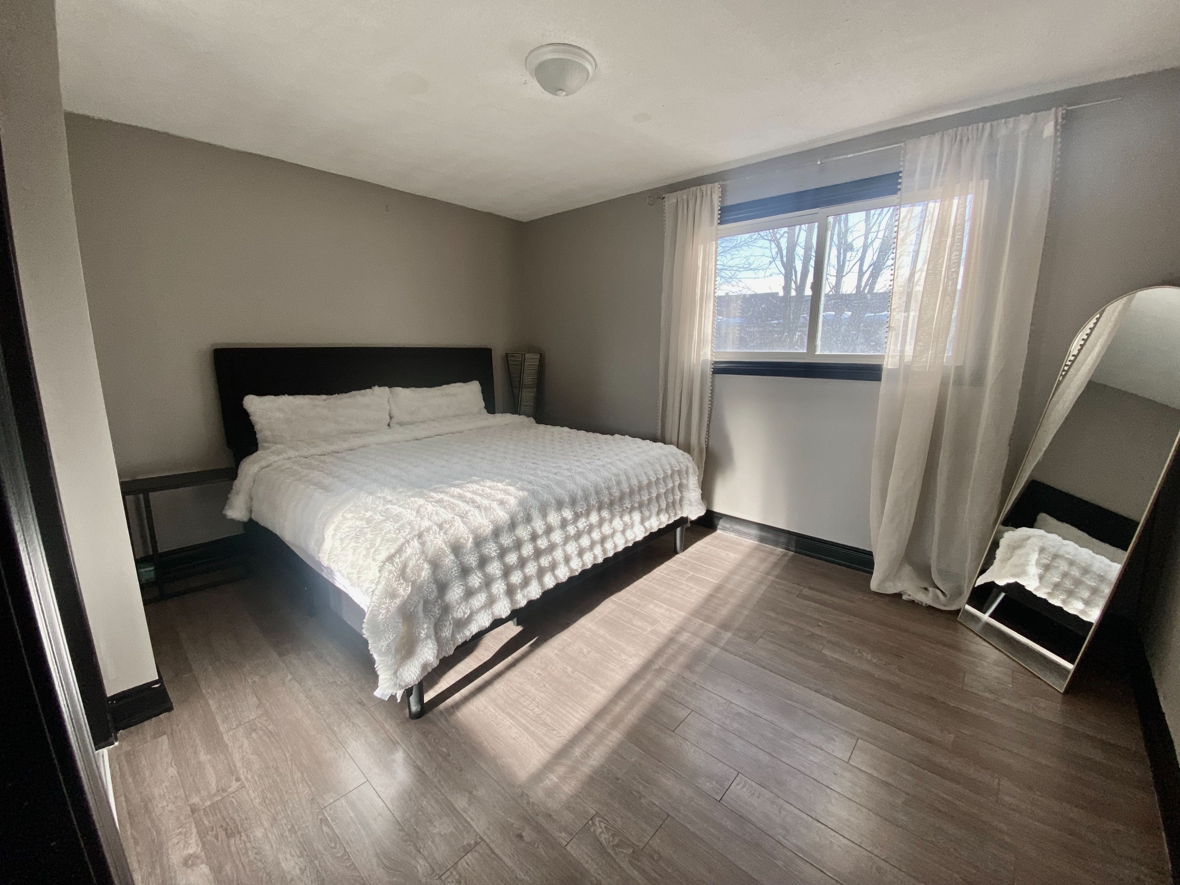 • Bright open-concept living area with access to a private backyard.