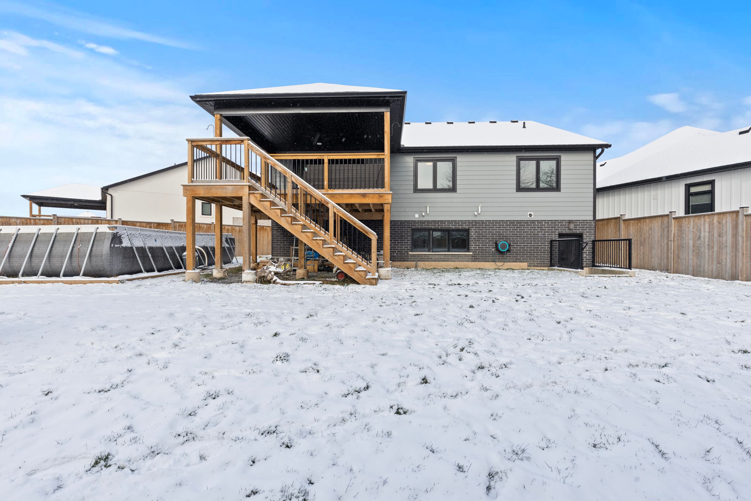 Your next chapter starts here in black creek! Tucked at the end of a quiet cul-de-sac on a pie-shaped lot, this 2022 raised bungalow delivers that "finally, this is the one" feeling the moment you pull up. Thoughtful design, modern finishes and a backyard built for summer fun make this home the perfect blend of comfort and style. Step inside and you're greeted by oak stairs with sleek wrought-iron accents, leading you to an open, airy living space flooded with natural light. Vaulted ceilings keep everything feeling bright and the generous living room easily fits your dream sectional without a squeeze. The dining area is ready for family dinners, dance parties and everything in between, while the kitchen steals the show with a sprawling over 7 foot island, black quartz counters, a walk-in pantry and high-end lg appliances. From here, patio doors take you out to a massive covered deck, providing an outdoor living room you can enjoy rain or shine. A few steps up, the private primary suite feels like its own retreat, featuring a spacious walk-in closet and an ensuite with a double vanity and beautifully tiled walk-in shower. Two additional bedrooms, a stylish 4-piece bath and a convenient laundry closet round out the main level. Downstairs, the basement features high ceilings with a separate entrance providing a blank canvas, awaiting your finishing touches. Outside, a fully fenced yard wraps around the pie shaped lot, giving you green space to play and an above-ground pool ready for those hot summer days. Situated in one of black creek's newer communities, this home is conveniently located with quick highway access and close to schools, parks, golf courses, restaurants, entertainment and scenic trails. This home offers the perfect blend of luxury, comfort and functionality. Don't miss the opportunity to make this exceptional home yours! Book your showing today!