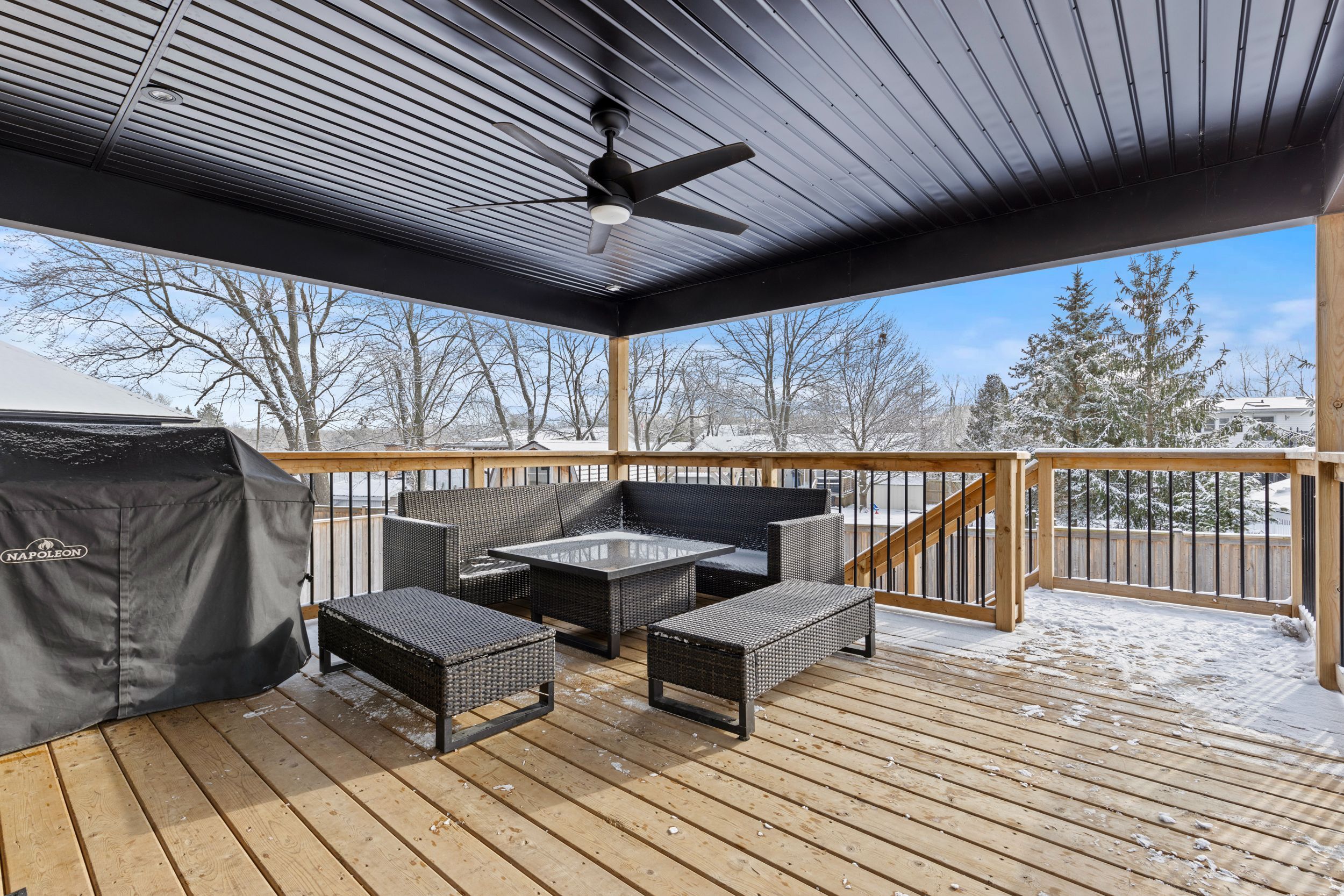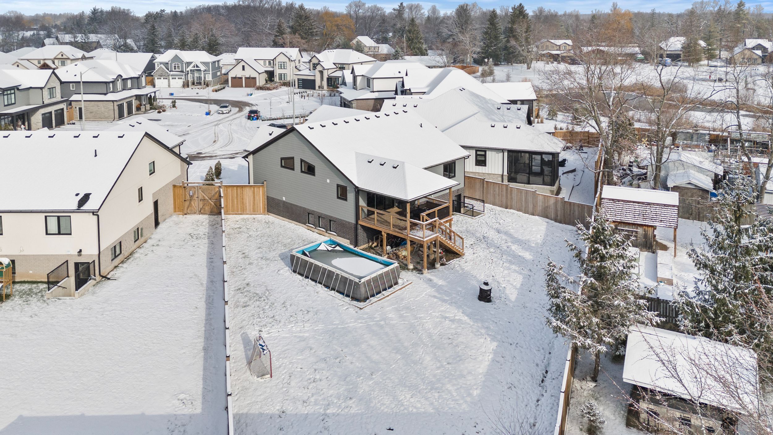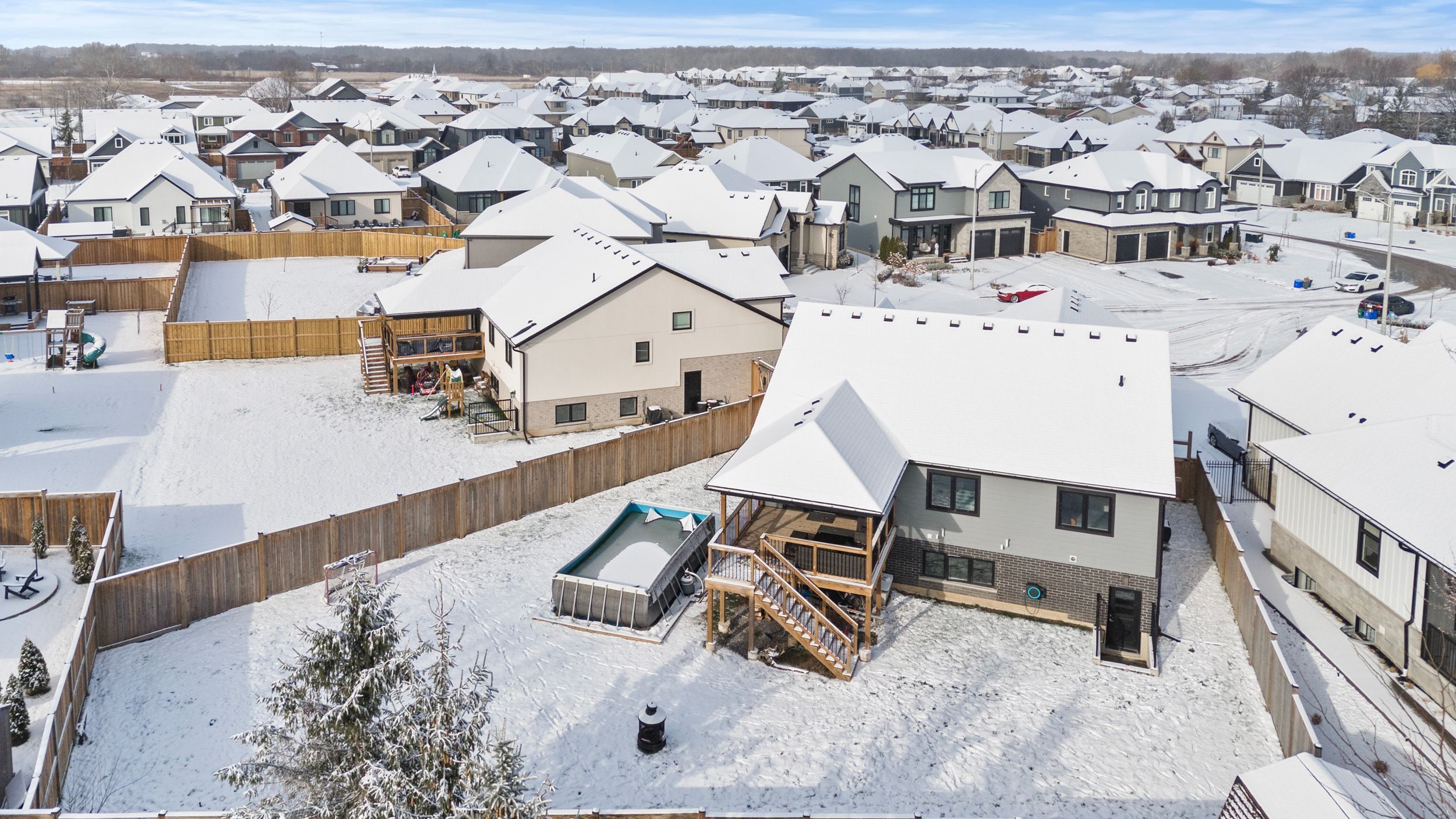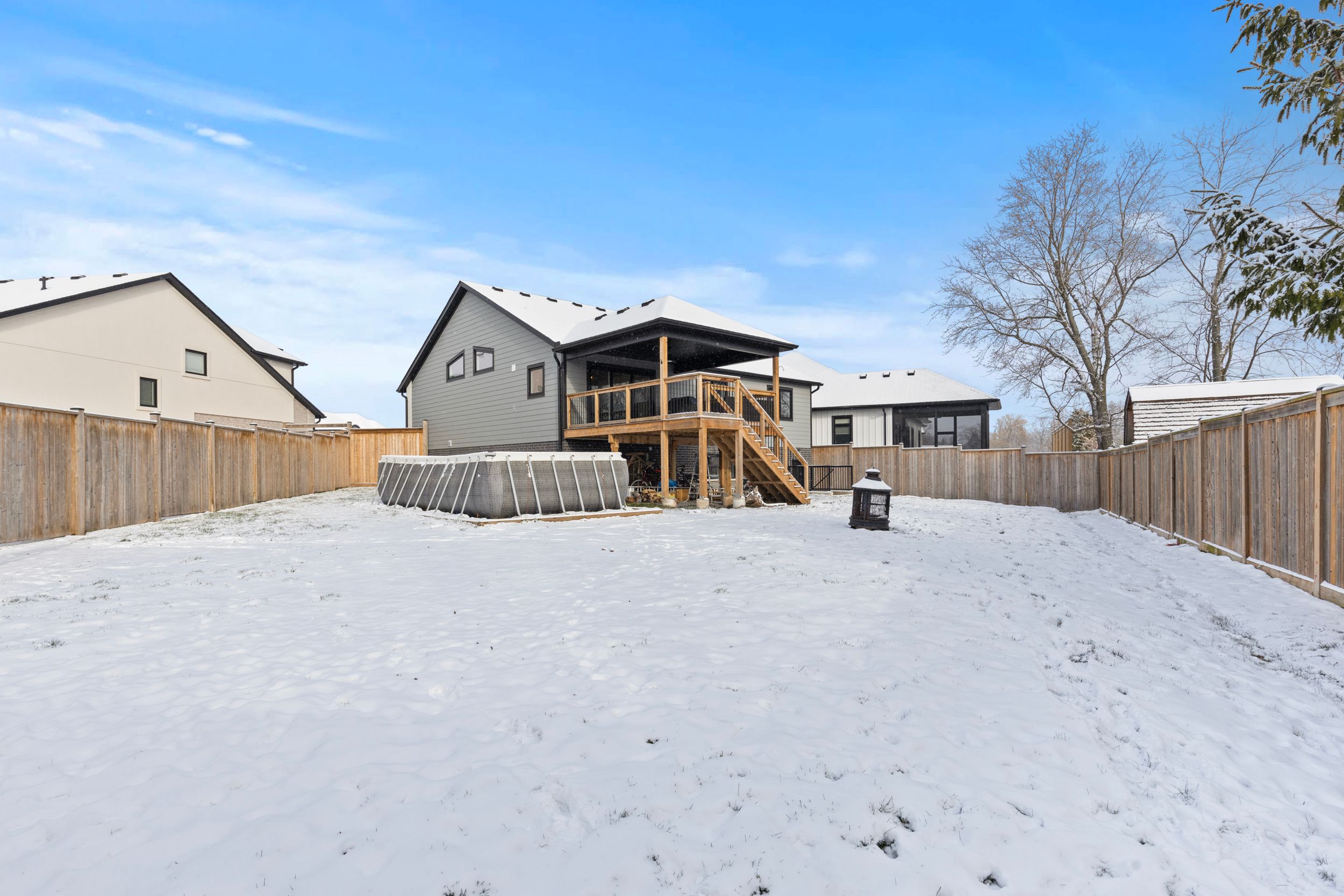 • Massive covered deck and an above-ground pool for summer enjoyment.