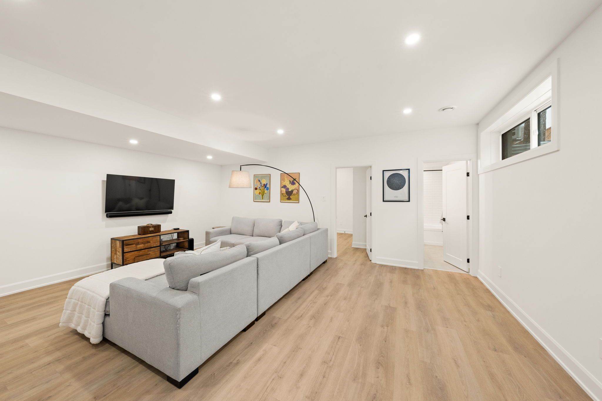 Situated in the heart of westboro village and directly overlooking clare gardens park, this exceptional 2022-built semi offers over 3,200 sq ft of beautifully finished living space and an oversized south facing backyard. Thoughtfully designed for modern living with future flexibility in mind, the home features a separate side entrance to the lower level which is fully roughed-in for a legal secondary dwelling - offering excellent potential for multi-generational living or rental income. The main floor is both functional and refined, featuring a dedicated home office, a generous walk-in foyer closet for clutter-free living, and a striking custom gas stone fireplace that anchors the family room. Wide-plank european oak flooring and hunter douglas blinds add warmth and texture throughout. At the heart of the home, the custom deslaurier kitchen showcases quartz countertops, premium appliances, designer lighting, and a walk-in pantry complete with custom millwork. The adjacent dining area is enhanced by an oversized bar with built-in wine fridge - perfectly suited for entertaining. Upstairs, the primary retreat offers an oversized balcony with durable composite flooring and a spa-inspired ensuite with heated floors. Custom millwork continues throughout every closet, maximizing both function and style, while a full upper-level laundry room adds everyday convenience. The fully finished lower features high ceilings, a bright bedroom and full bathroom - well-suited for guests or future suite configuration. All just steps to richmond road's boutiques and cafés, the ottawa river pathway, and westboro beach - an exceptional opportunity in one of ottawa's most sought-after neighbourhoods. Exterior wooden posts will be sanded & stained. Tarion warranty will transfer. Irregular lot (27 ft frontage, 35 ft at rear). Incredible sound-proofing between the properties. This wonderful home awaits its new owner!
