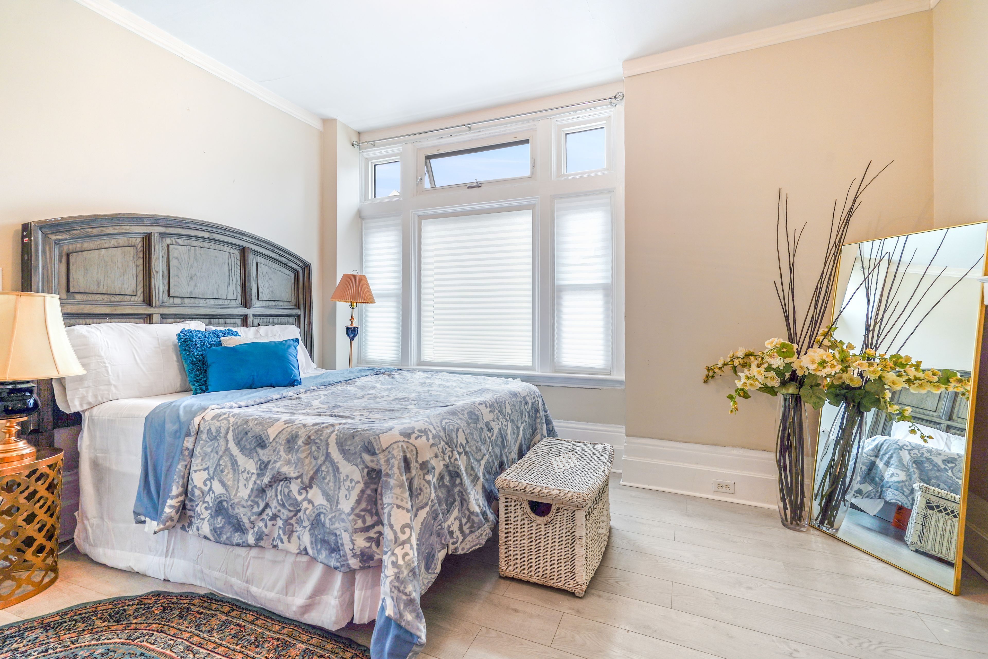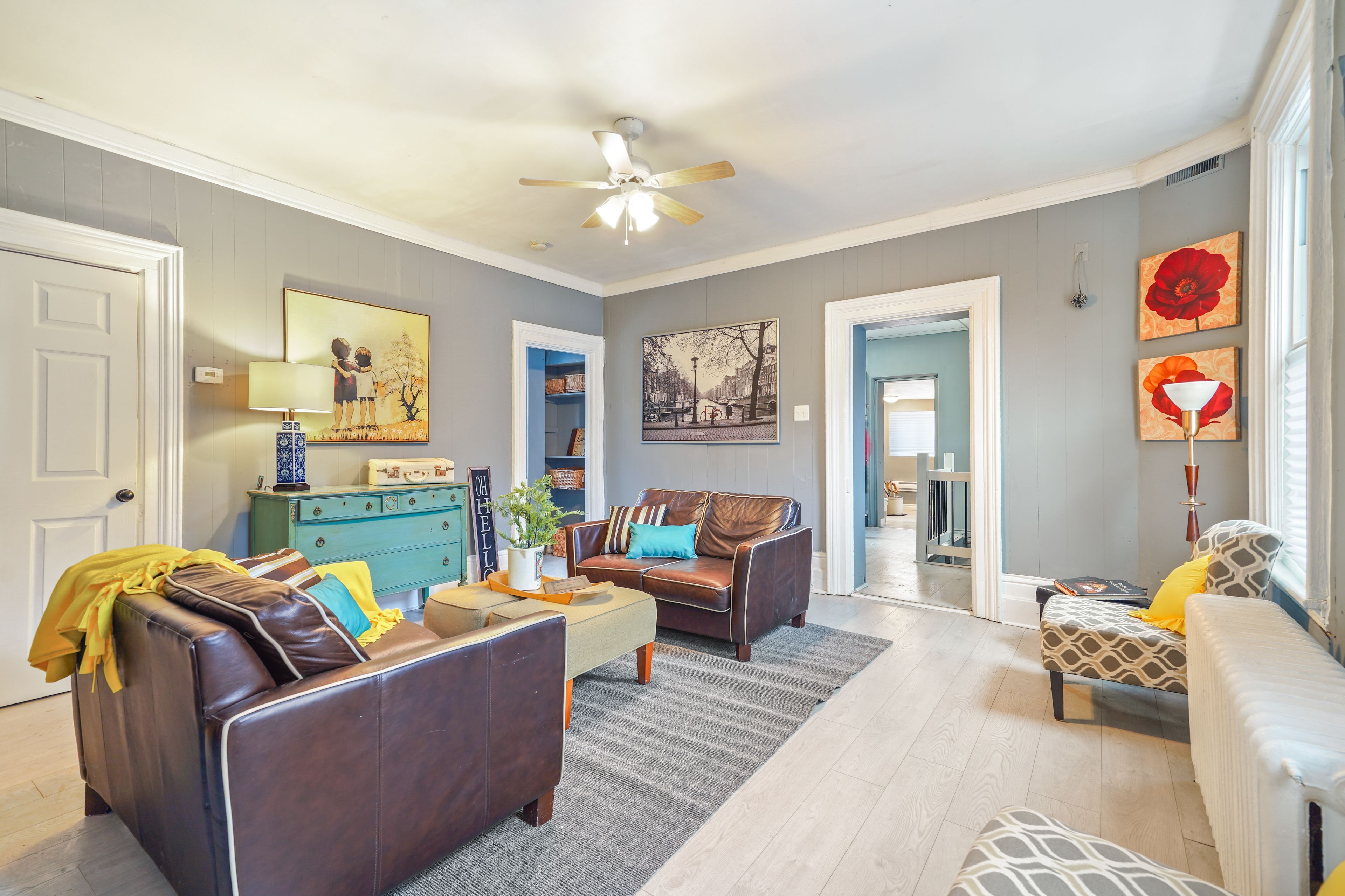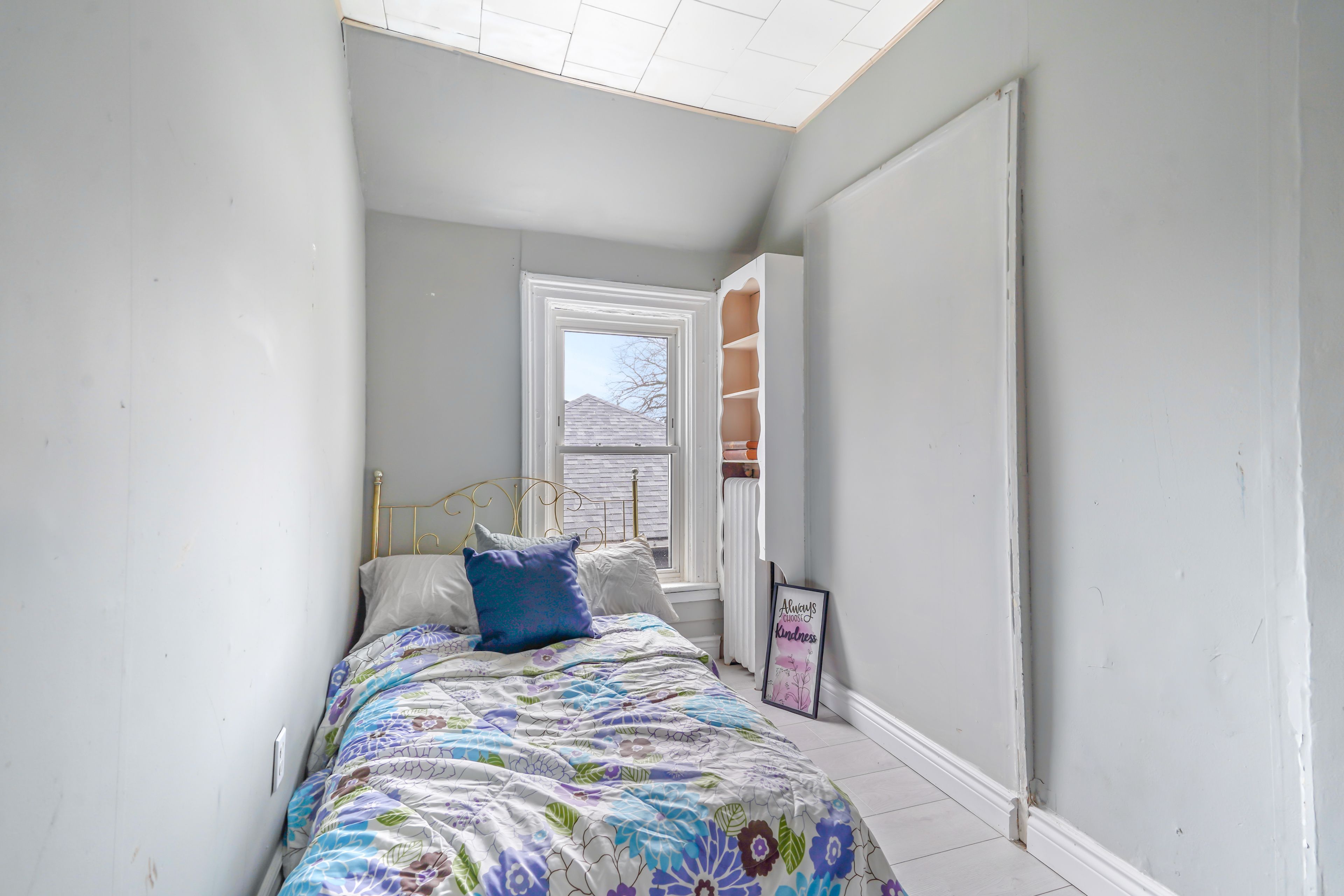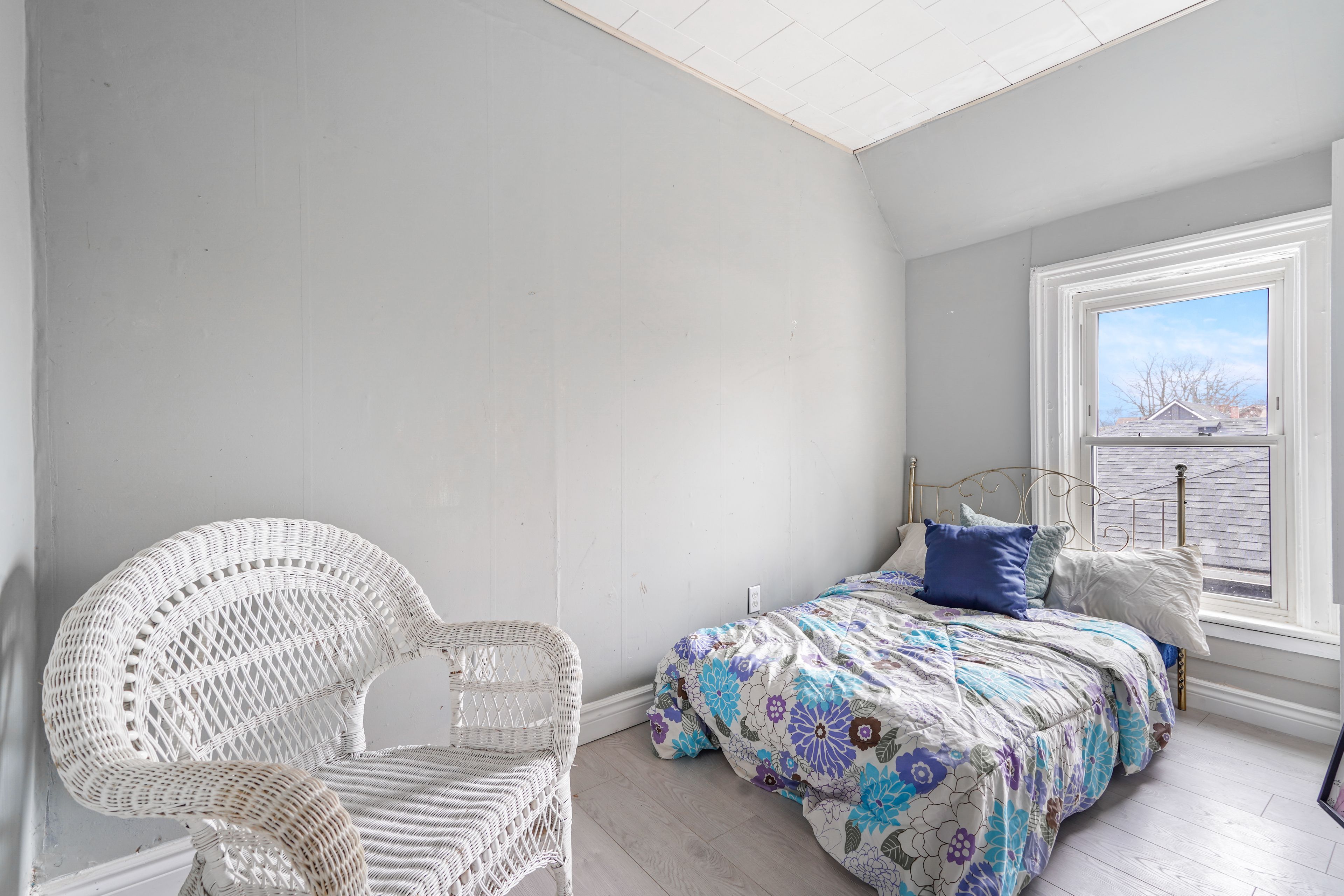 • Bright living room with high ceilings and a cozy main floor bedroom.