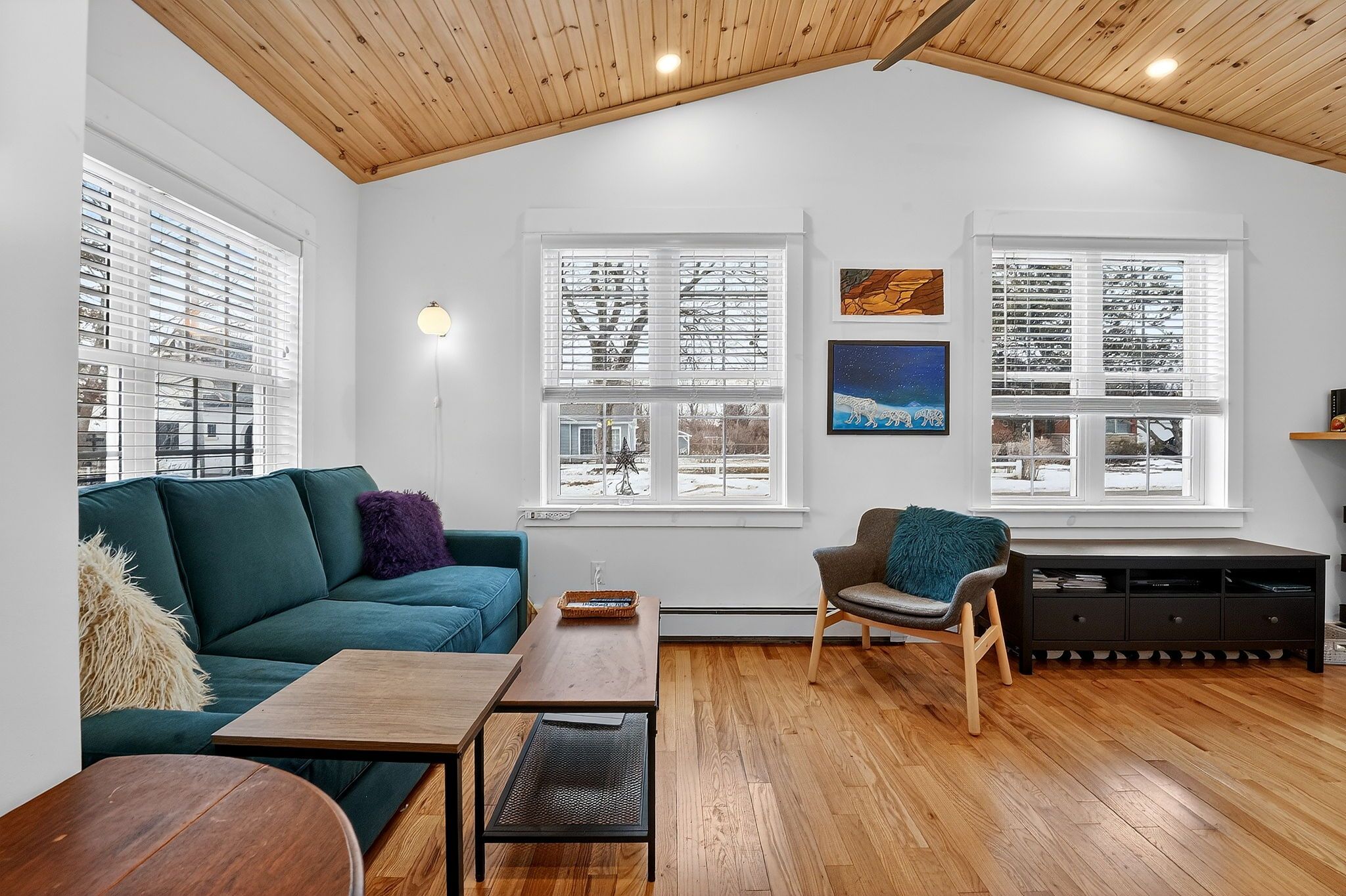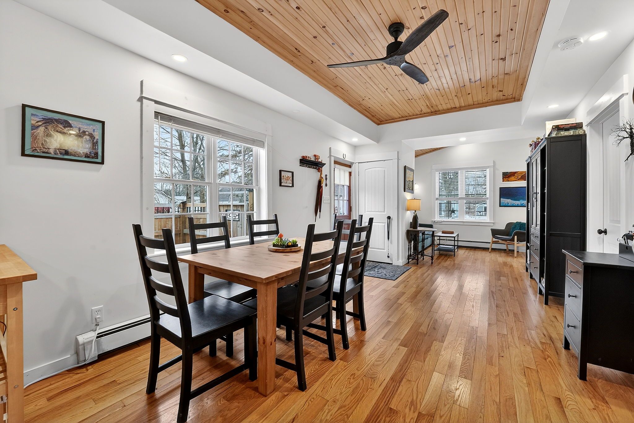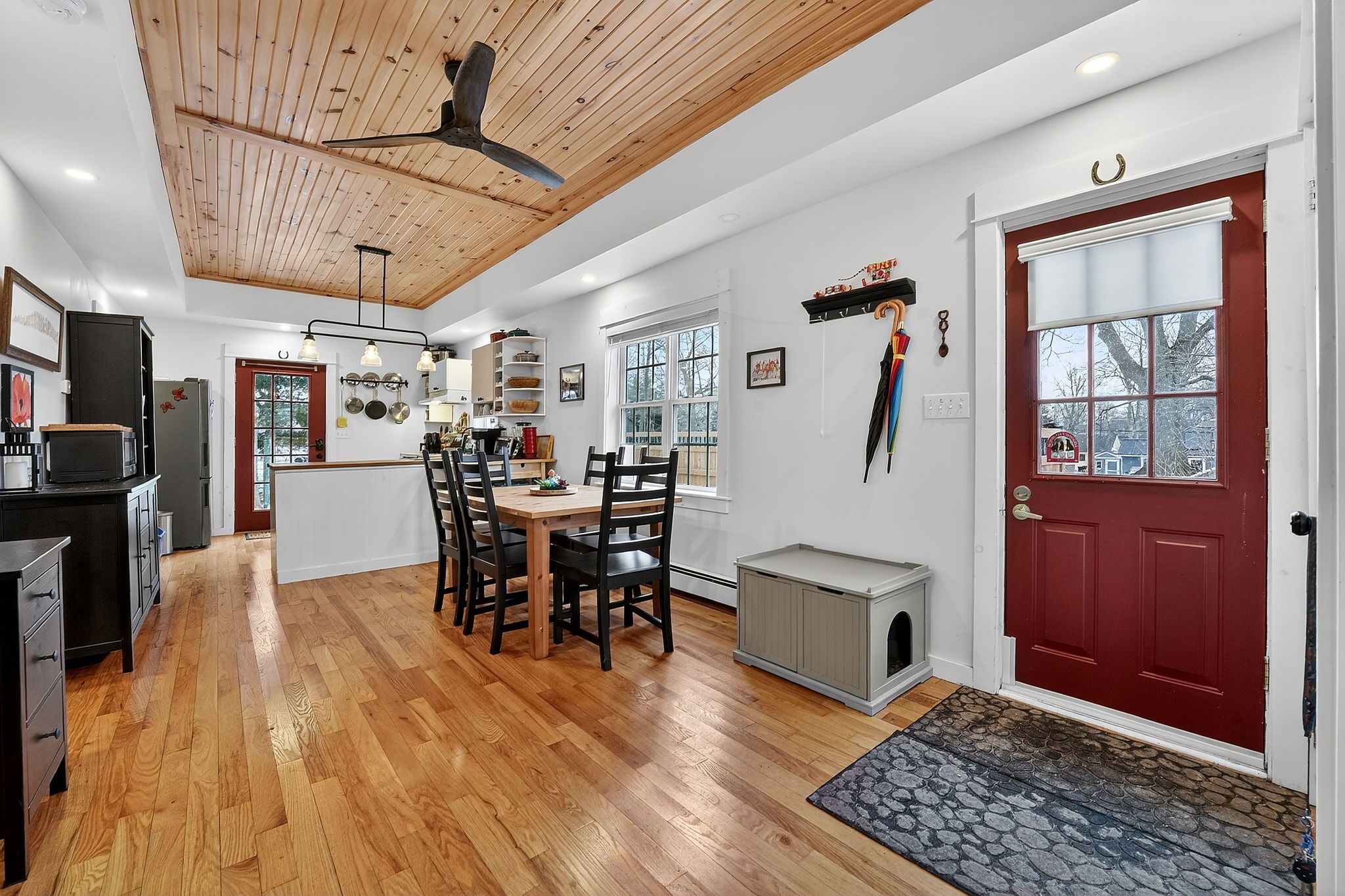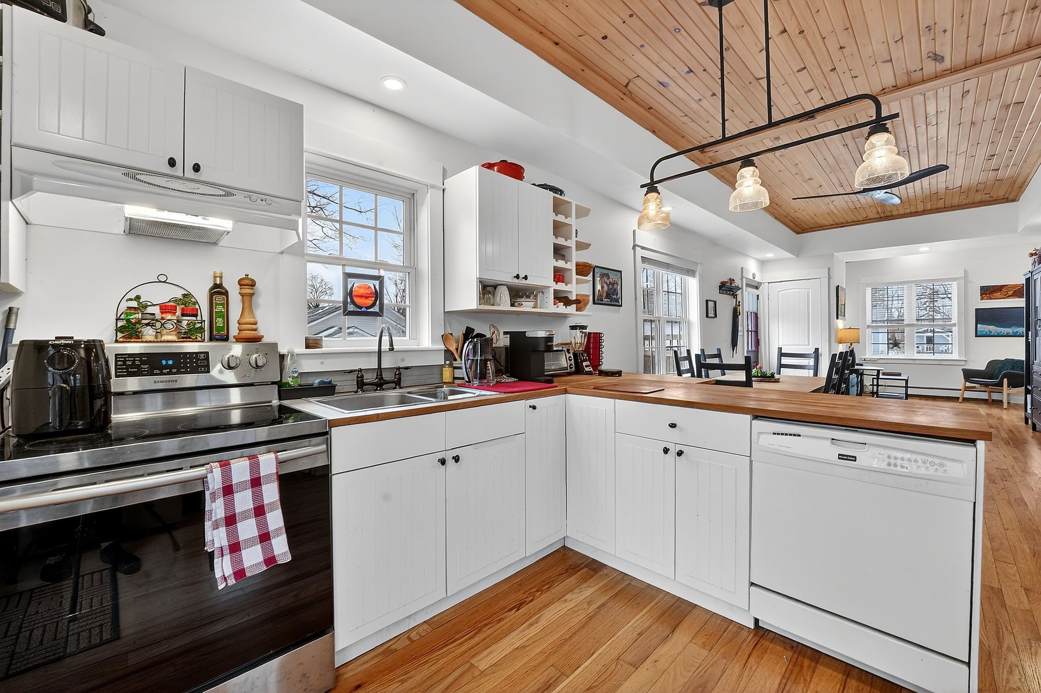 • Bright and airy open concept living area with vaulted wood ceilings.