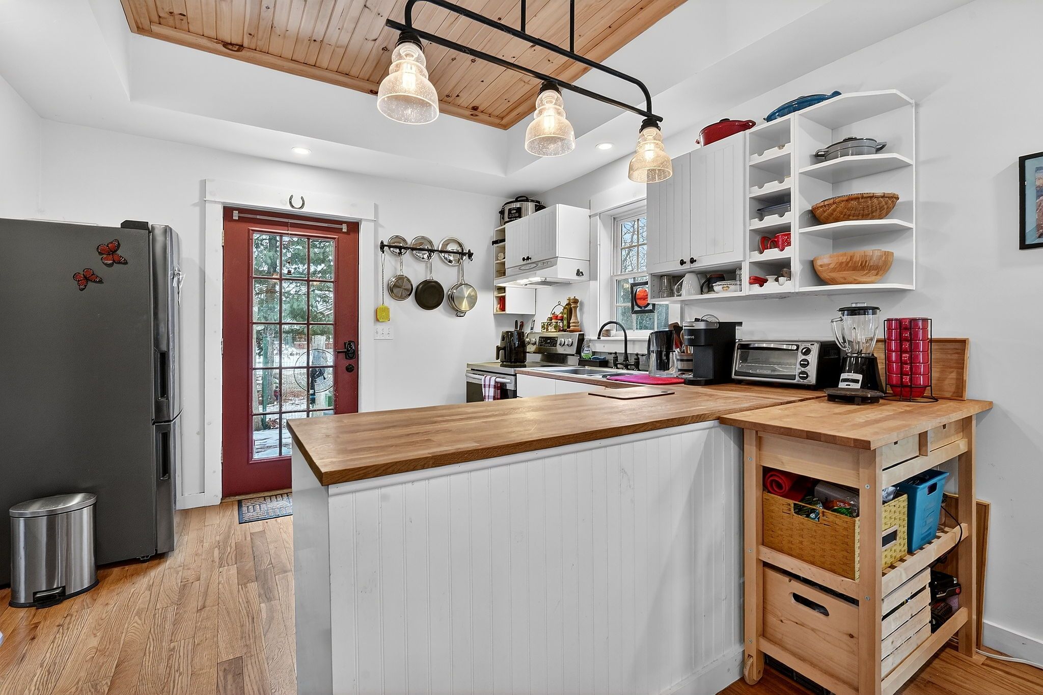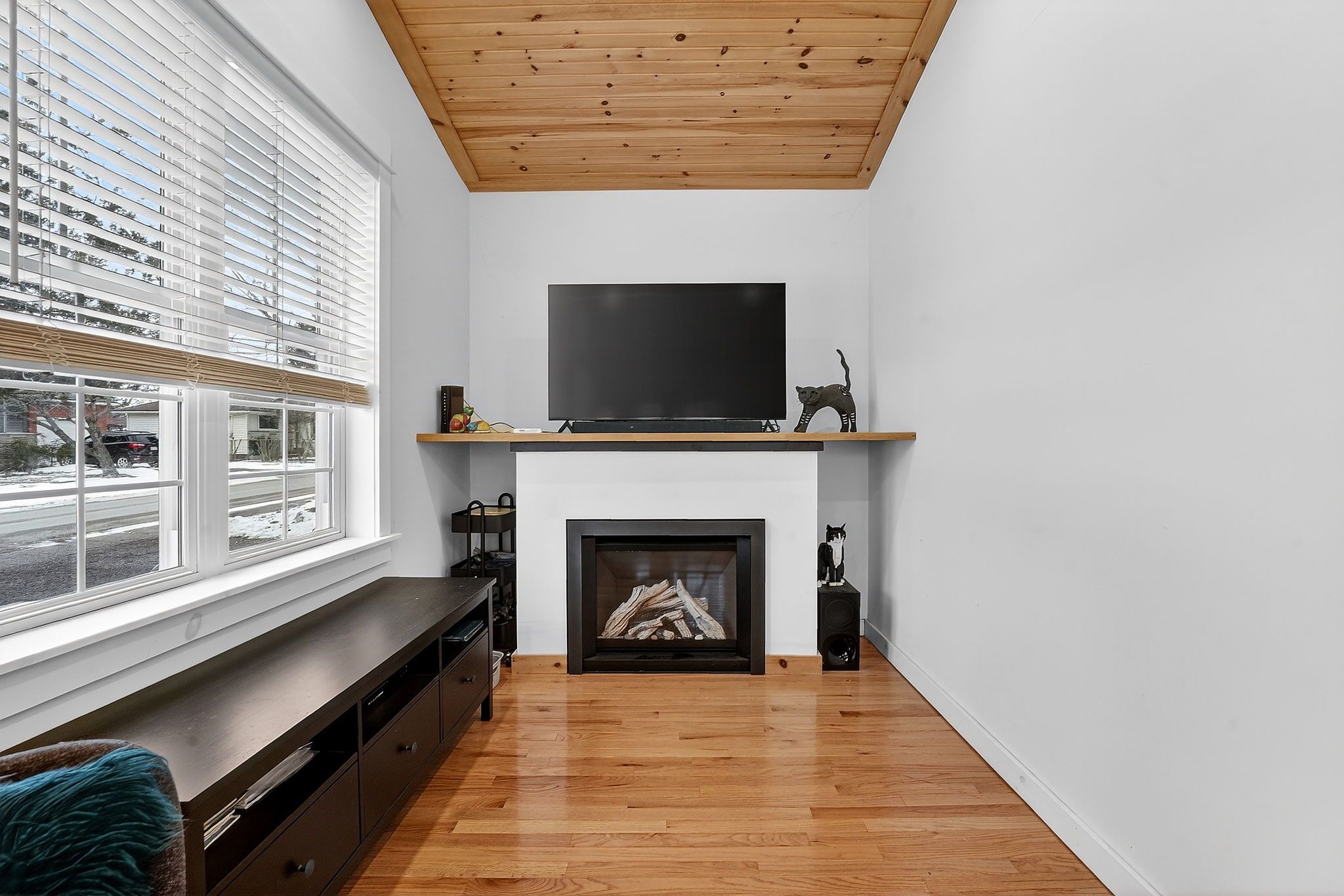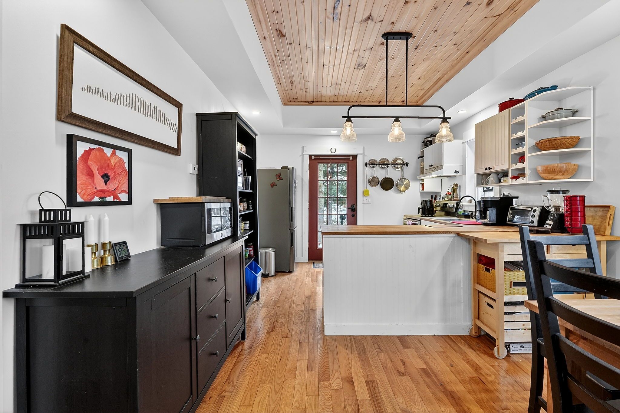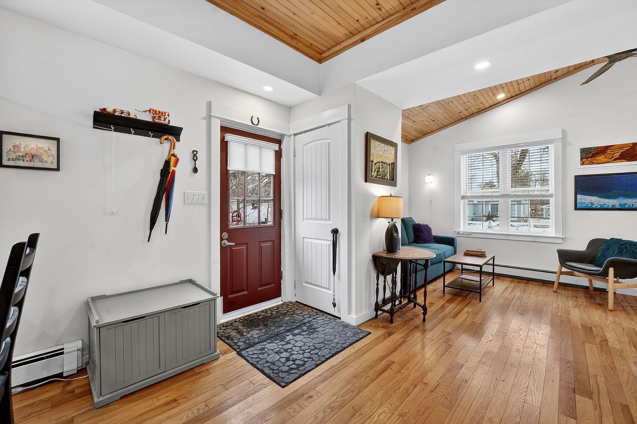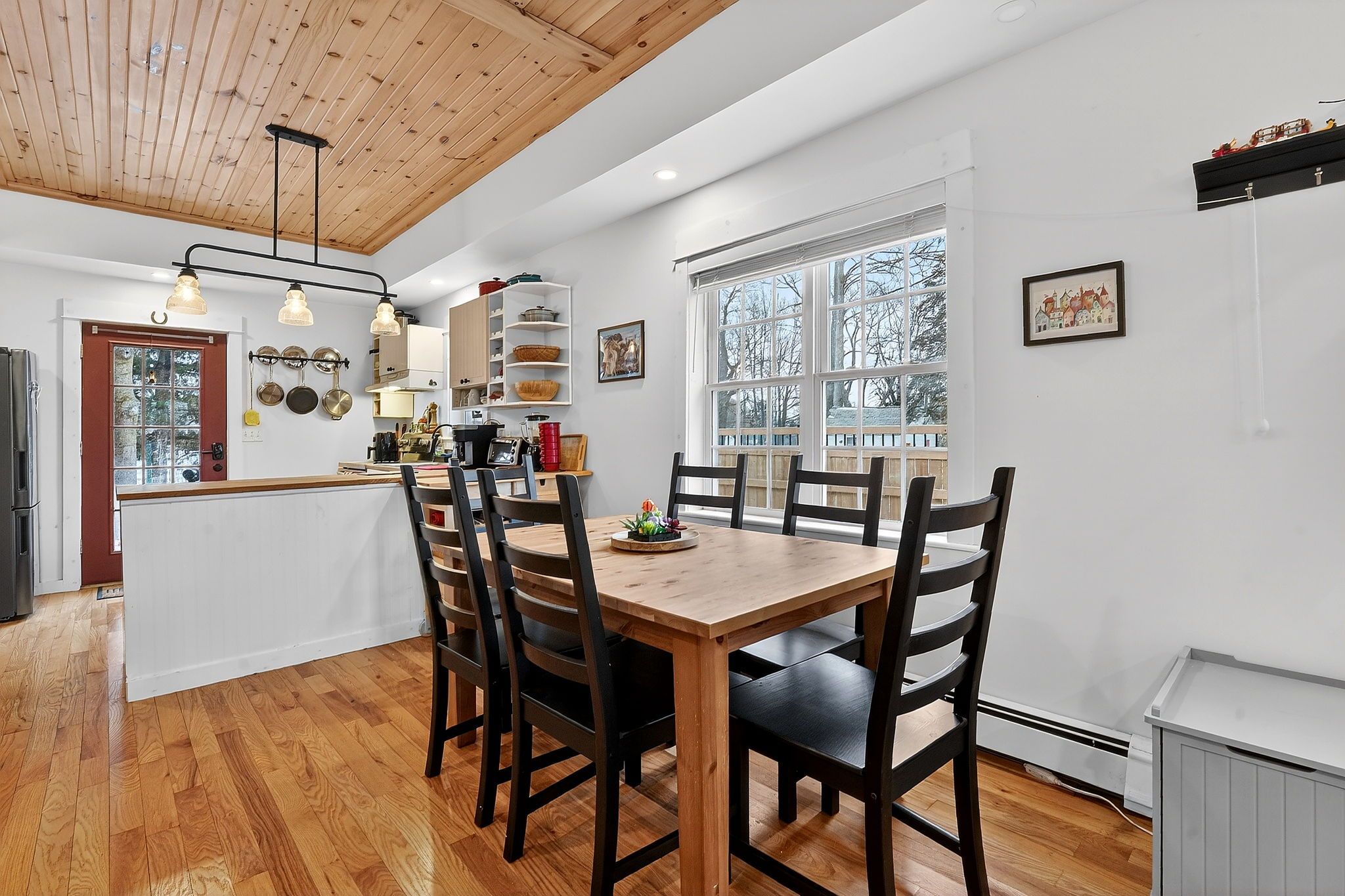 • Bright and airy open concept living area with vaulted wood ceilings.
