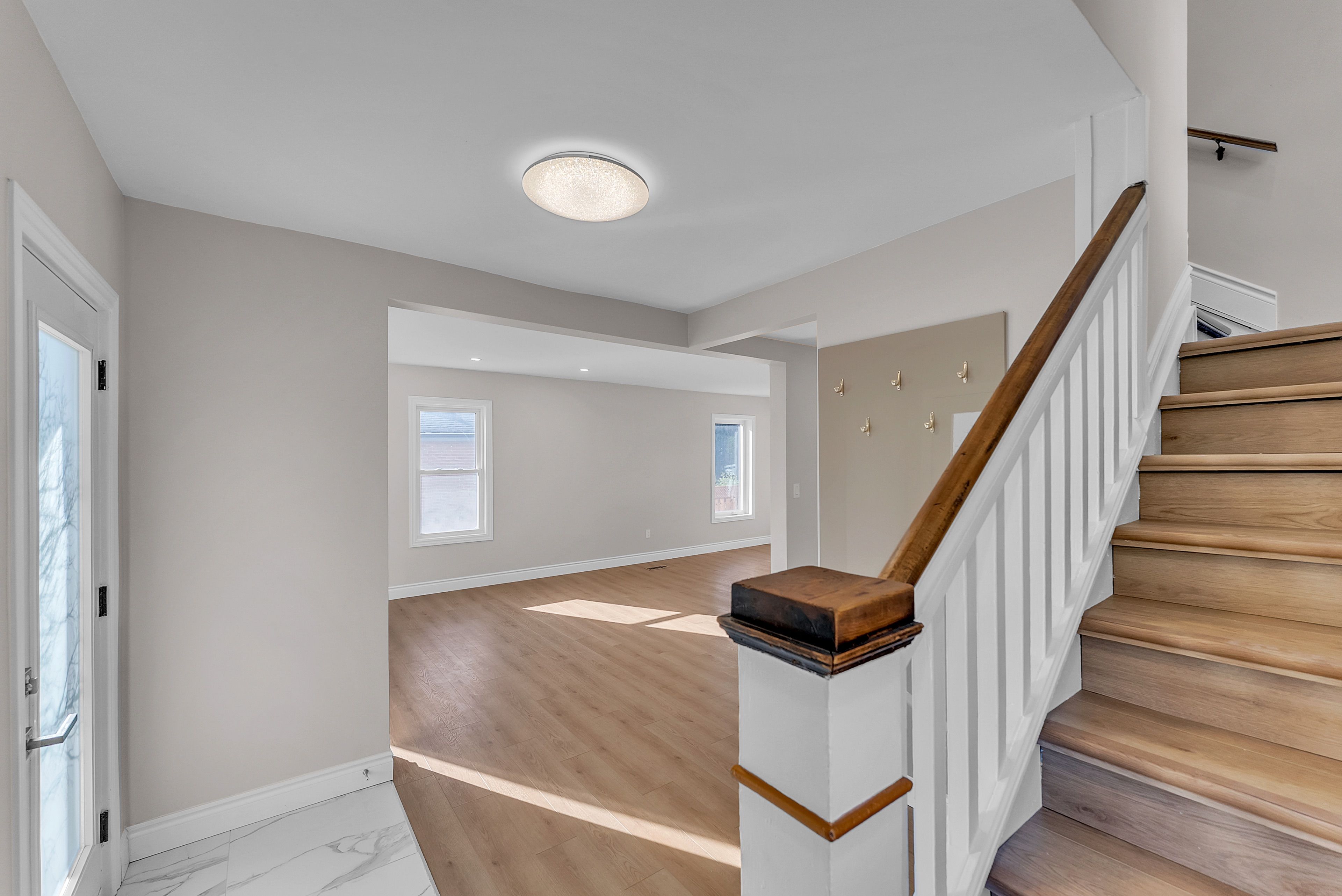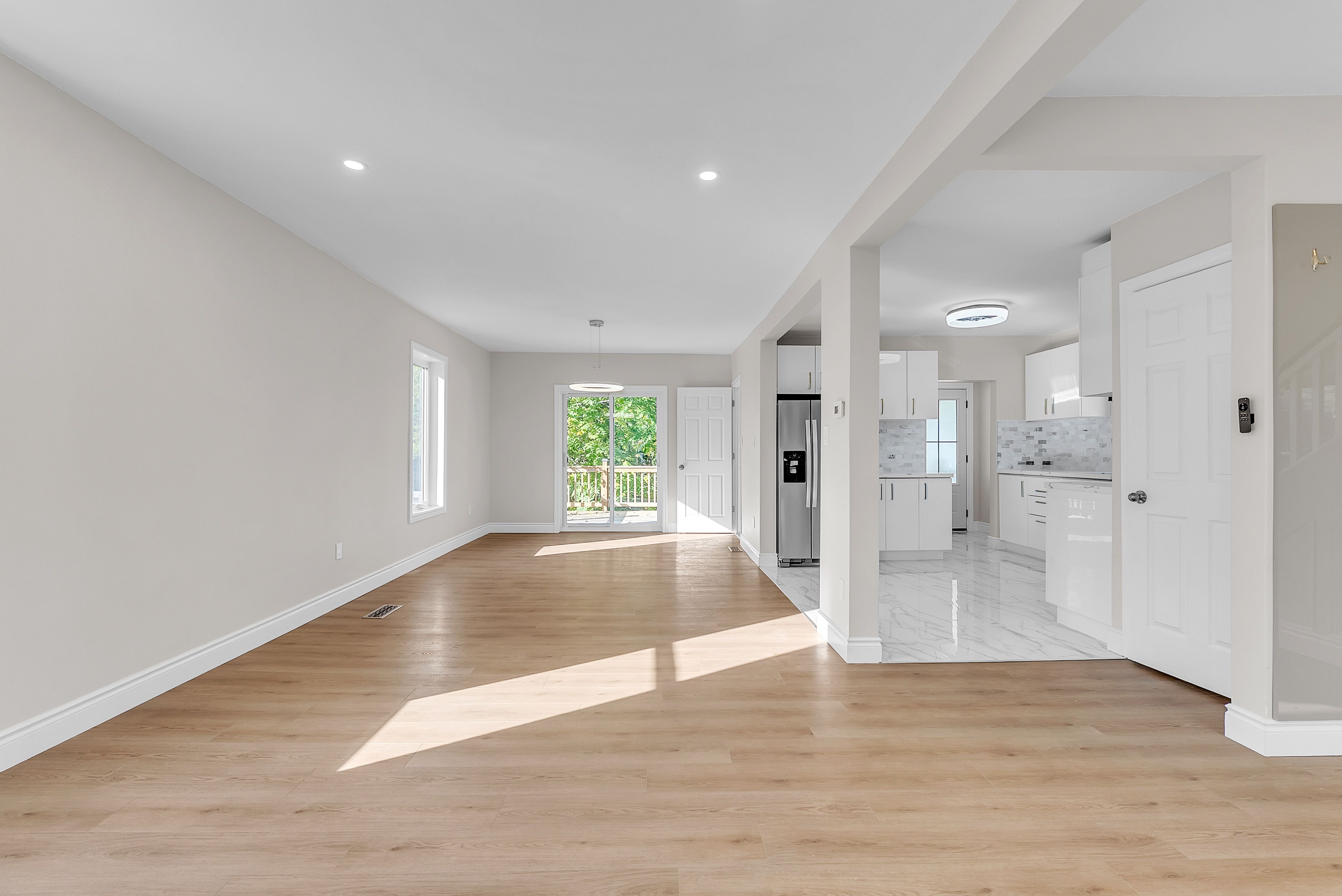 • Bright and functional open concept living area with renovated kitchen and high ceilings.