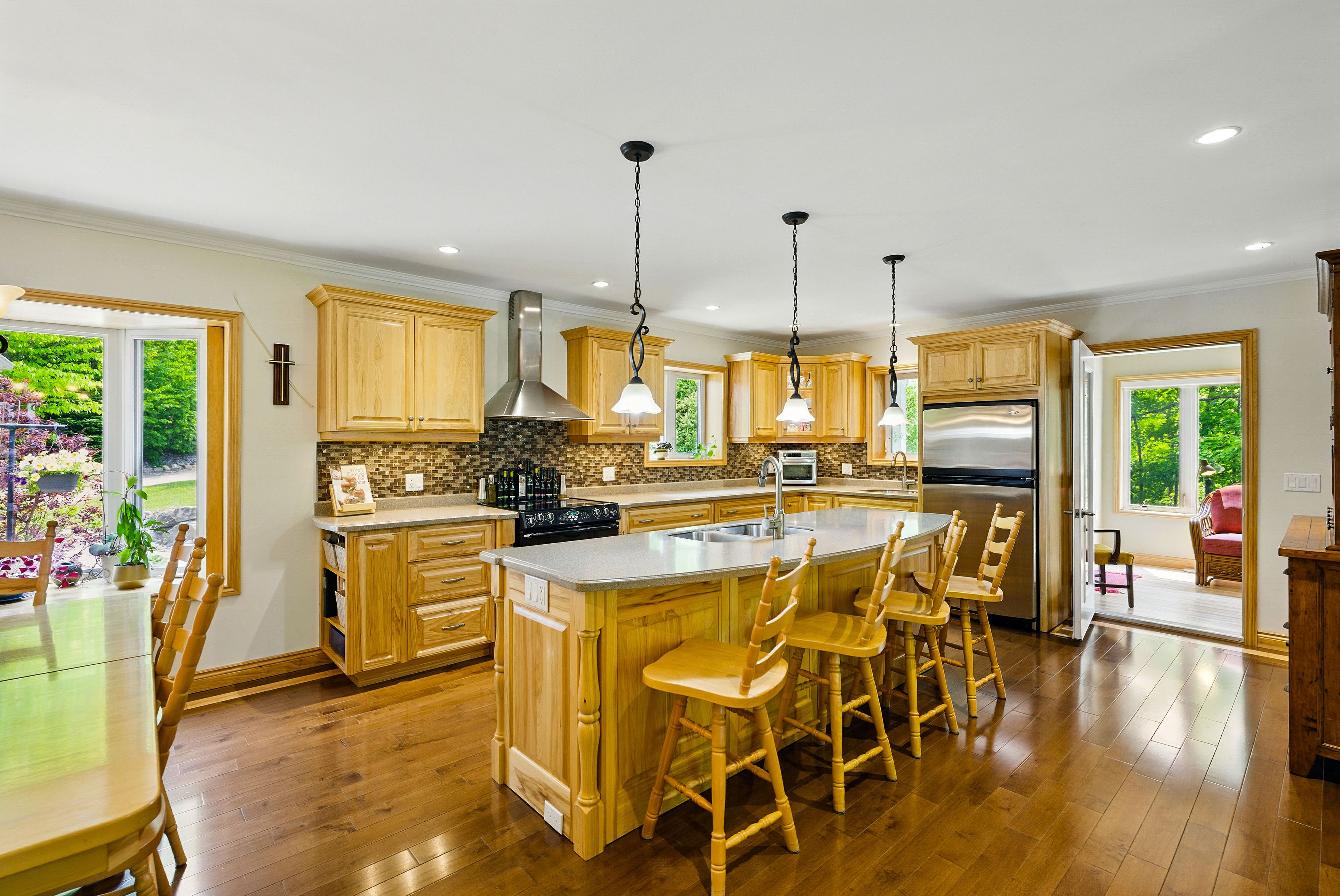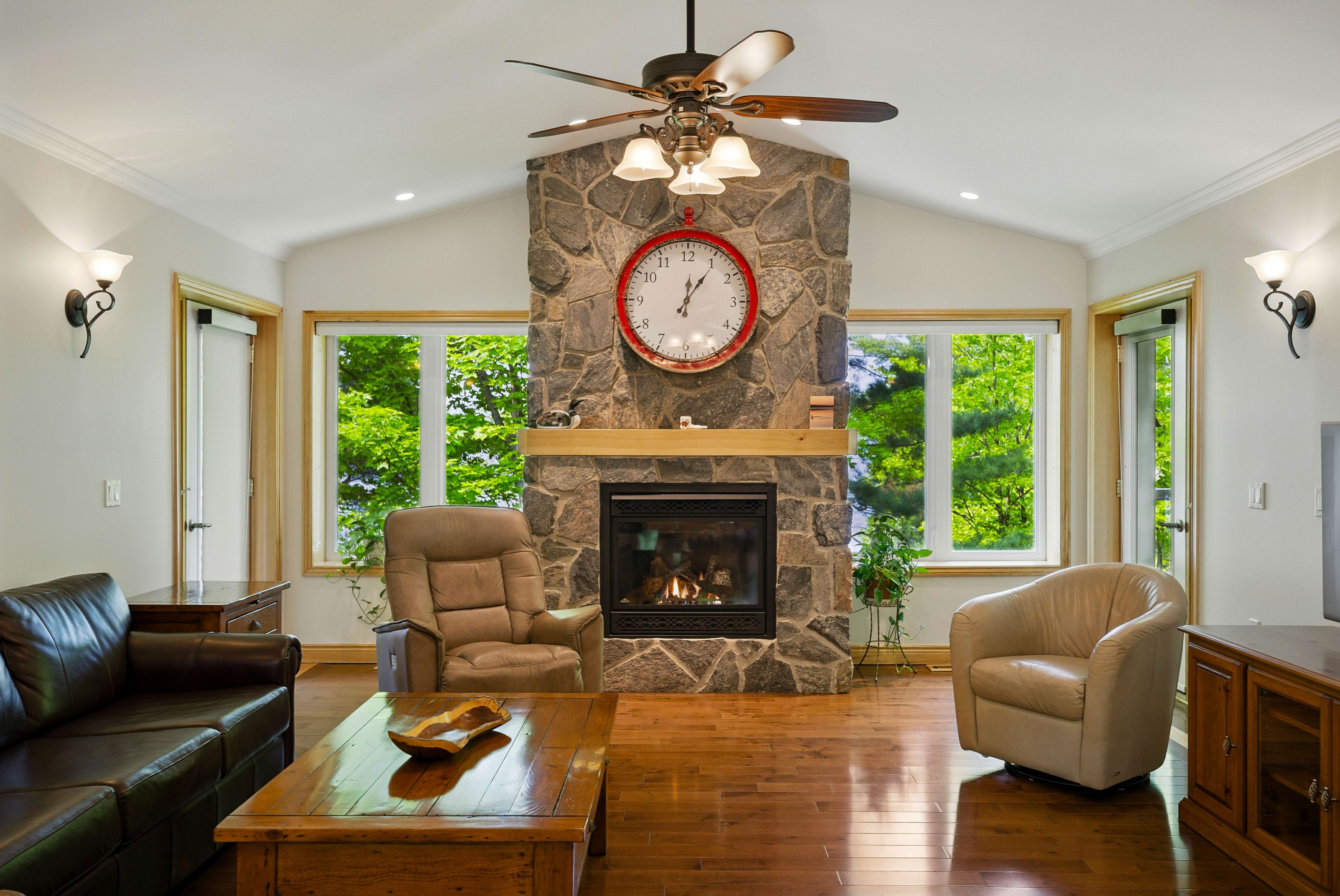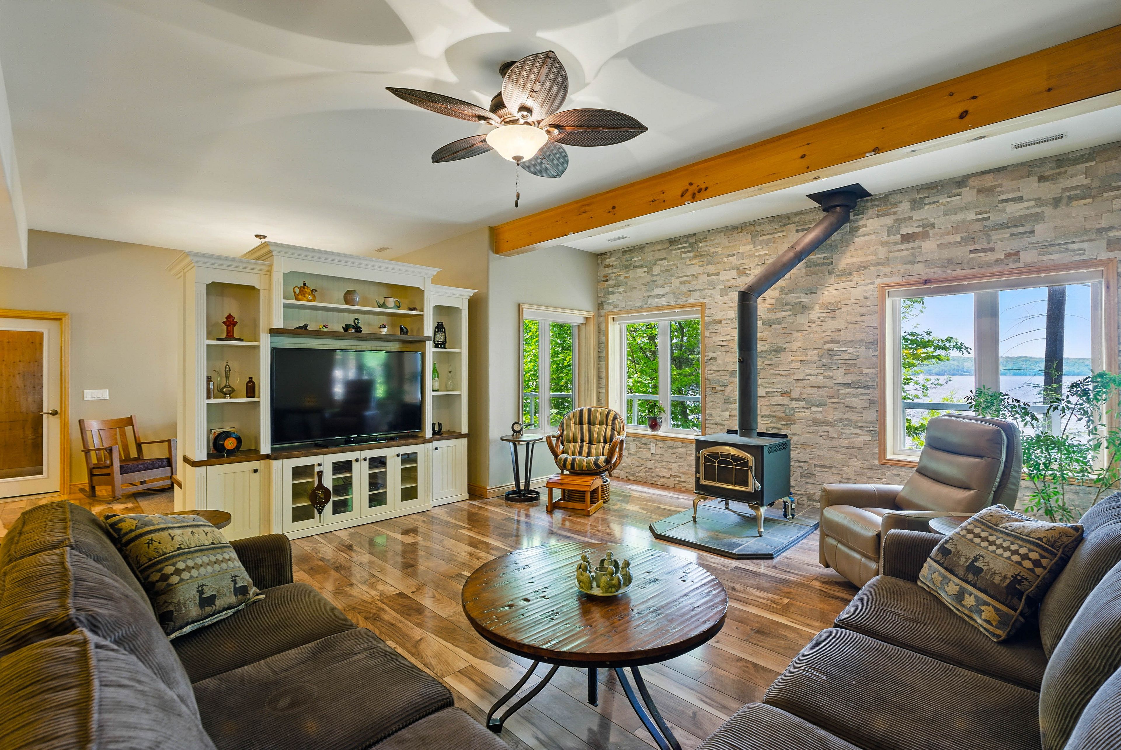 Built in 2008, this energy-efficient icf block bungalow with walk-out basement offers year-round comfort. Situated at the end of a dead-end road provides privacy on this irregular 1-acre lot. Lake front property with the desirable southwest exposure of lake cecebe, a lake that offers 40 miles of boating joining lake cecebe with the magnetawan river, midlothian lake and ahmic lake. Perfectly placed in between burk's falls and magnetawan and just 30 minutes from huntsville. The main floor of the home features hardwood/tile floors, a custom chef's kitchen by cutter's edge of muskoka made of solid hickory including extra touches such as two sinks and corian countertops. Open concept from kitchen, dining and living room provides the perfect space for entertaining your family and friends. The living room has vaulted ceilings and a grandeur granite stone gas fireplace. A deck off each side of the living room provides extra living space for outdoor dining and relaxation. Main floor primary bedroom has a walk-in closet, ensuite with double sinks, walk-in shower and heated tile floor. A pantry provides extra storage and a place for a freezer. The laundry room on the main floor shares a mud room coming in from the 2-car 30' x 30' garage with work bench. An added touch is the 2-piece washroom with a work sink in the garage. To complete this level is a second bedroom facing the lake. The lower level has 2 spacious bedrooms with closets, 3-piece washroom with heated tile floor. The family room has a napolean wood burning stove, entertainment centre and a shuffleboard table. There is a wood room on this level for easy access to the wood or it can be easily converted to another bedroom. To continue with convenience, there is a kitchenette on this level equipped with a refrigerator, microwave, cupboards and sink for easy cleanup. Relax in an indoor hot tub that has a sliding door to the outdoors or convert to an office, bedroom or gym. Walk out to a deck which leads you to the lake.