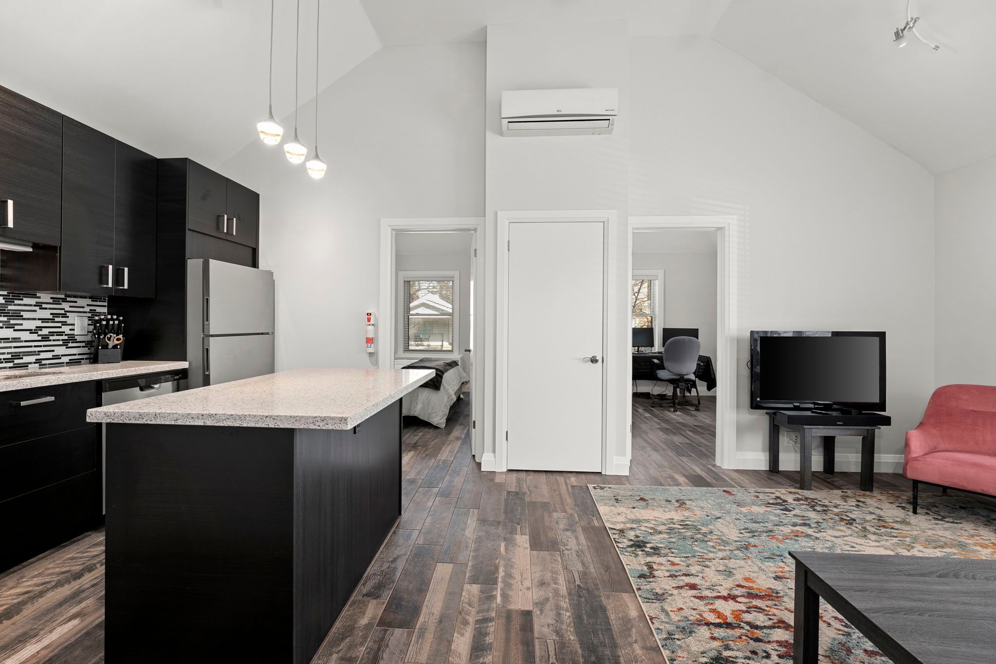 • High vaulted ceilings create an airy and spacious atmosphere.