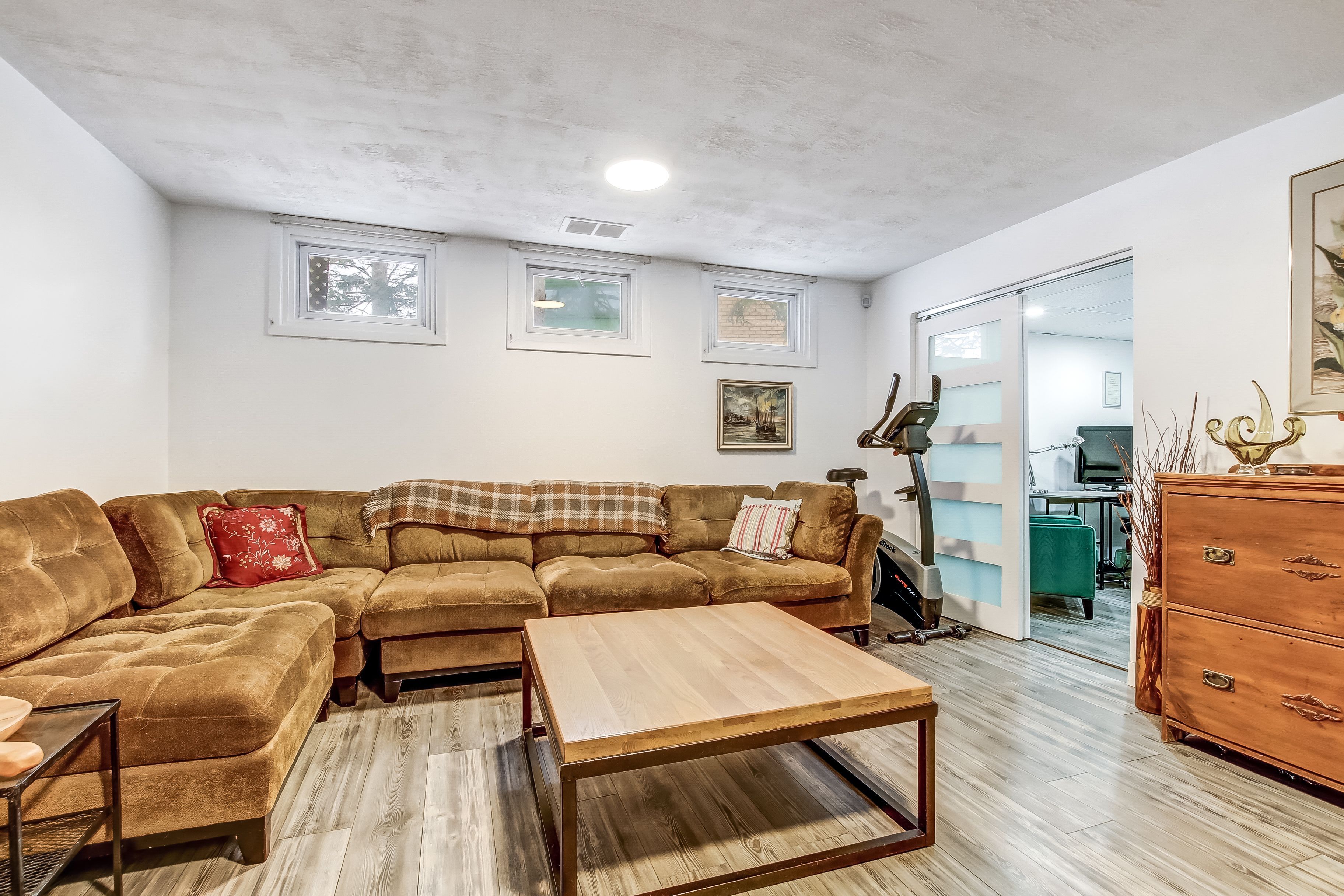• Cozy den with gas fireplace, plus a finished lower level for extra space.