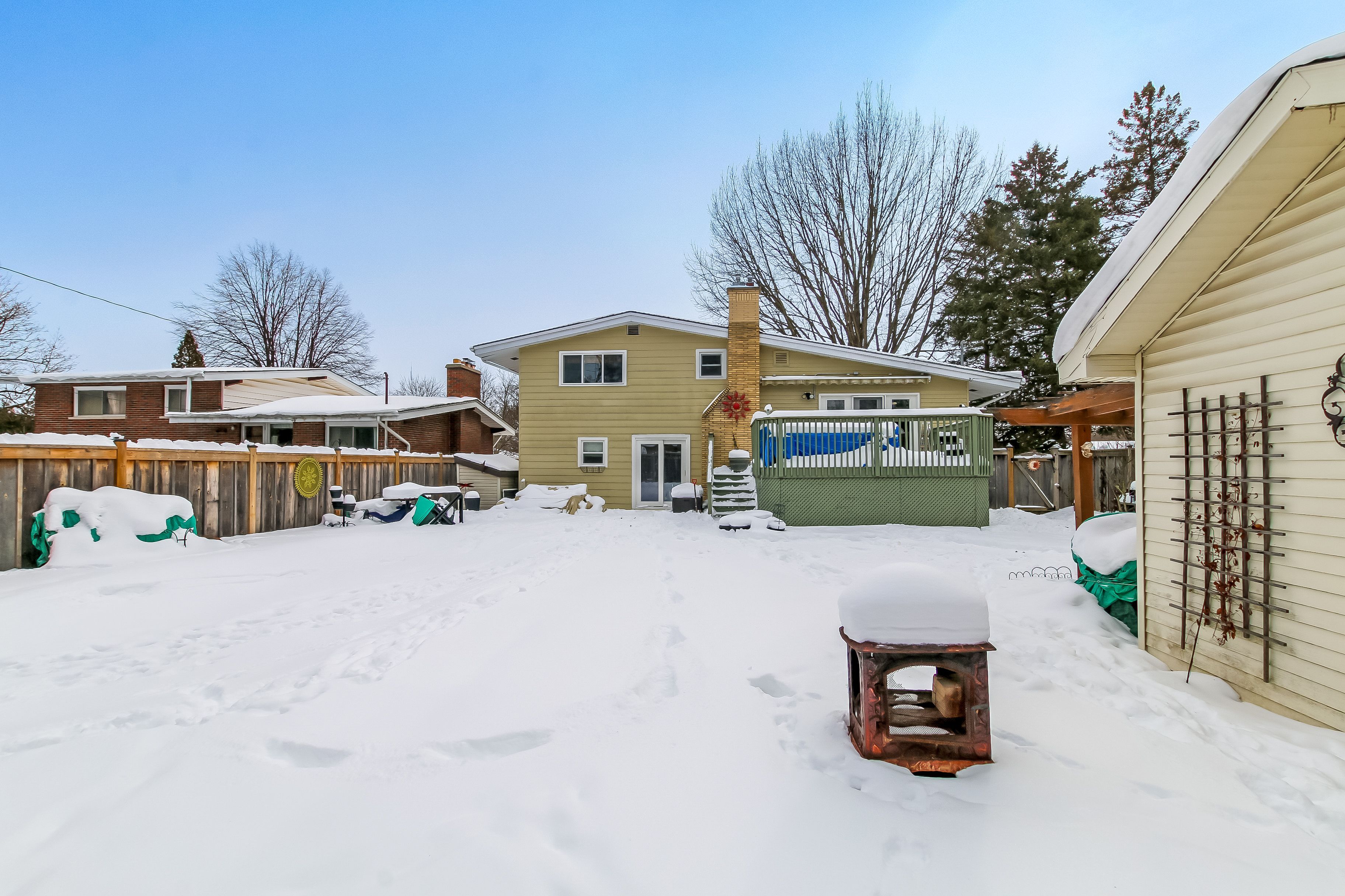 Consider this wonderful family home that shows pride of ownership throughout, both inside and out. Get ready to enjoy the completely refurbished/refreshed (2022) in-ground pool this summer, including newer surrounding concrete and stamped concrete patio in the back-yard! The home itself has been nicely updated throughout over the years and is move-in ready. This 4 level side-split features a welcoming entrance foyer with a few steps up to the main living level, leading to a beautiful open concept kitchen, dining room and spacious family room. Upstairs has 3bedrooms with the large primary bedroom having an attractive cheater ensuite. The entrance level also has a cozy den with gas fireplace insert, and the finished lower level is complete with an additional rec room, plus bedroom or office and a 3-piece bathroom. Just off the kitchen are patio doors leading out to a raised deck with a beautiful roll-out awning that nicely overlooks the pool and patio area - perfect for entertaining! A fully fenced yard, manicured gardens and new concrete driveway only add to this desirable home. Great location with many school options very close by!