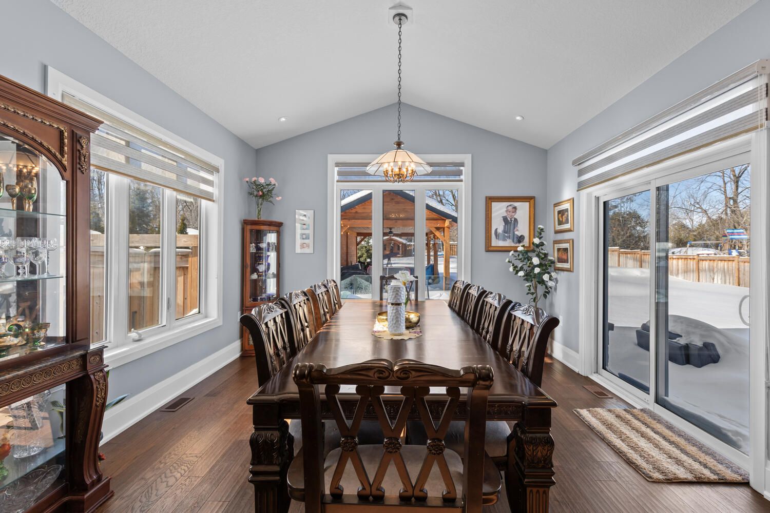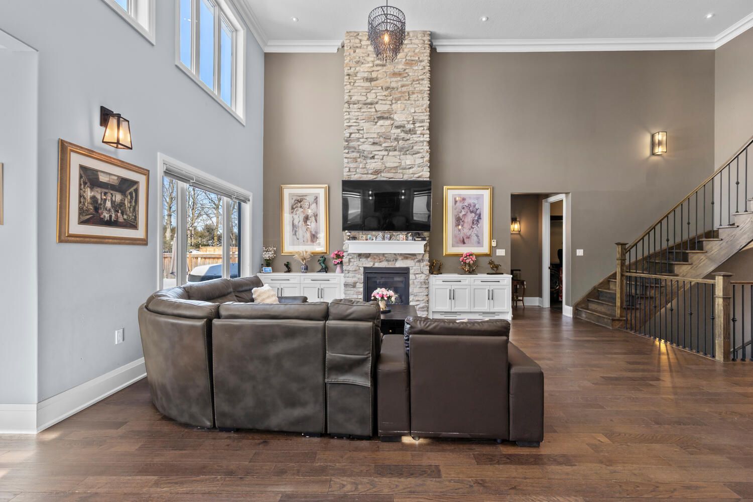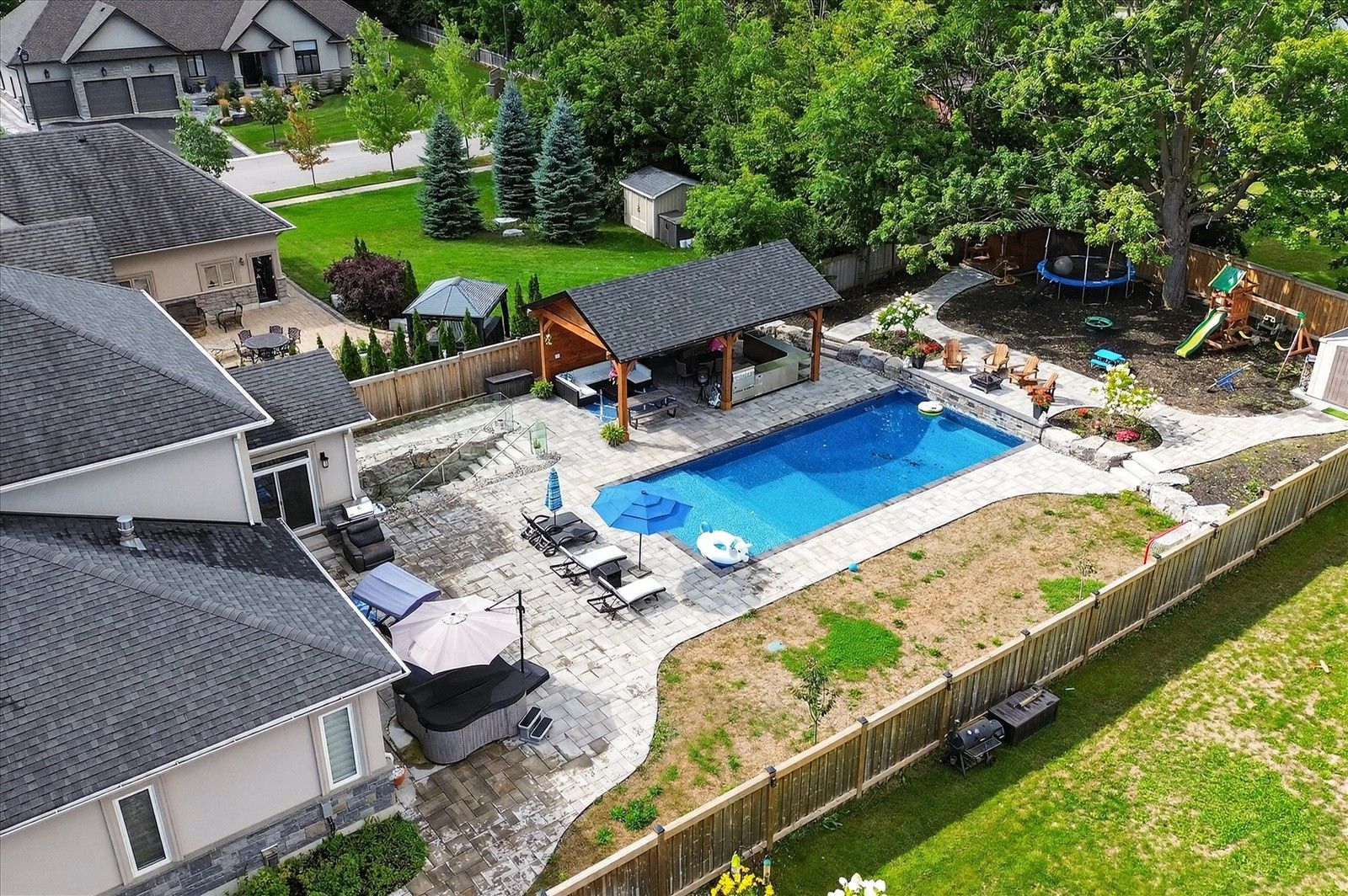 Luxury redefined in innisfil estates! Experience refined living in this exceptional belcourt model home, showcasing over $300,000 in premium upgrades, over 4700 sqf finished space, and set on a beautifully landscaped half-acre lot in prestigious innisfil estates, just moments from the shores of lake simcoe. Offering 4 spacious bedrooms, 3 1/2 bathrooms, and a triple-car garage, this residence seamlessly blends upscale design with functional family living. Step inside to soaring ceilings and abundant natural light. The dramatic great room features a 19 foot ceiling and a breathtaking floor-to-ceiling stone gas fireplace, perfectly complemented by rich hardwood flooring throughout. The open-concept design flows into a chef-inspired kitchen with premium finishes and generous workspace-ideal for entertaining and everyday living. The fully finished basement extends your living space with impressive 9-foot ceilings, heated floors, and a stylish entertaining area complete with a quartz-topped bar and two built-in bar fridges-perfect for hosting guests in comfort and style. The primary suite offers a spa-like ensuite with heated flooring, creating a private retreat within the home. Outdoors, discover a true backyard oasis. The fully fenced half-acre lot is professionally landscaped and equipped with an in-ground sprinkler system. Enjoy a sparkling saltwater inground pool, relaxing hot tub, and a patio sauna for the ultimate at-home wellness experience. The covered gazebo features a dedicated bbq area with gas hookups, making outdoor cooking and entertaining effortless year-round. Located minutes from beaches, golf courses, parks, this exceptional property offers the perfect balance of luxury, comfort, and lifestyle. An extraordinary opportunity for selective buyers, this home must be experienced to be truly appreciated.