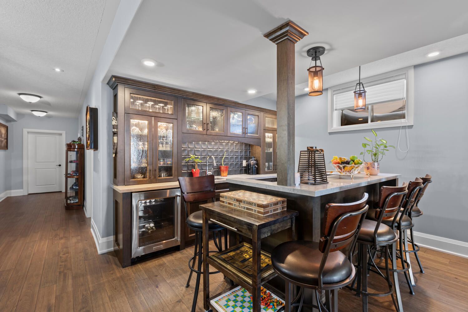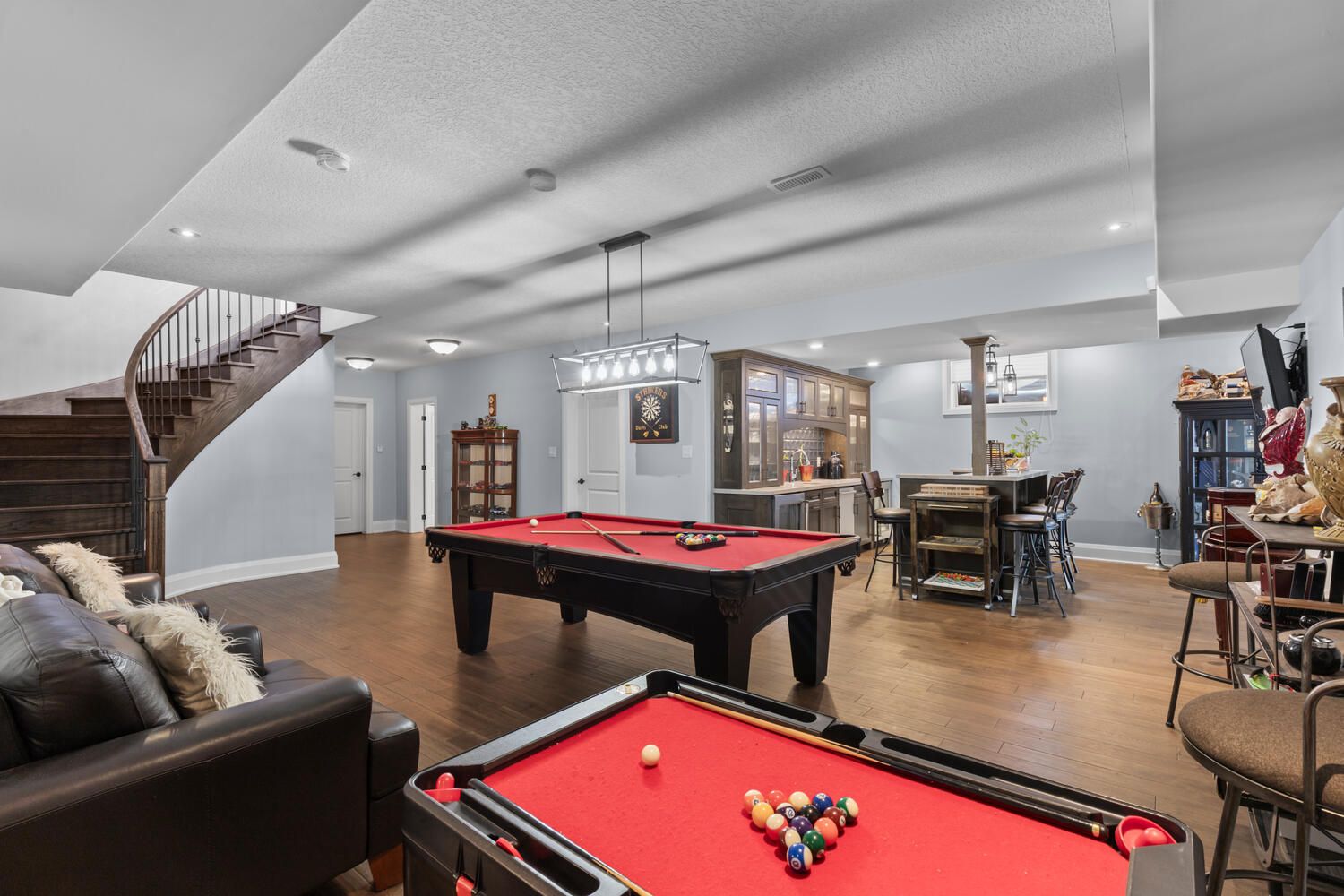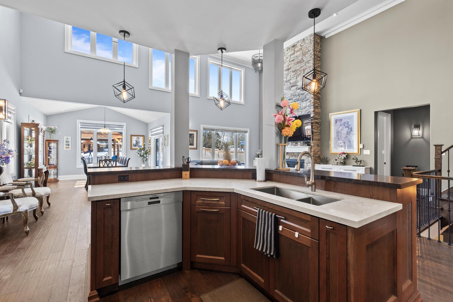 Luxury redefined in innisfil estates! Experience refined living in this exceptional belcourt model home, showcasing over $300,000 in premium upgrades, over 4700 sqf finished space, and set on a beautifully landscaped half-acre lot in prestigious innisfil estates, just moments from the shores of lake simcoe. Offering 4 spacious bedrooms, 3 1/2 bathrooms, and a triple-car garage, this residence seamlessly blends upscale design with functional family living. Step inside to soaring ceilings and abundant natural light. The dramatic great room features a 19 foot ceiling and a breathtaking floor-to-ceiling stone gas fireplace, perfectly complemented by rich hardwood flooring throughout. The open-concept design flows into a chef-inspired kitchen with premium finishes and generous workspace-ideal for entertaining and everyday living. The fully finished basement extends your living space with impressive 9-foot ceilings, heated floors, and a stylish entertaining area complete with a quartz-topped bar and two built-in bar fridges-perfect for hosting guests in comfort and style. The primary suite offers a spa-like ensuite with heated flooring, creating a private retreat within the home. Outdoors, discover a true backyard oasis. The fully fenced half-acre lot is professionally landscaped and equipped with an in-ground sprinkler system. Enjoy a sparkling saltwater inground pool, relaxing hot tub, and a patio sauna for the ultimate at-home wellness experience. The covered gazebo features a dedicated bbq area with gas hookups, making outdoor cooking and entertaining effortless year-round. Located minutes from beaches, golf courses, parks, this exceptional property offers the perfect balance of luxury, comfort, and lifestyle. An extraordinary opportunity for selective buyers, this home must be experienced to be truly appreciated.