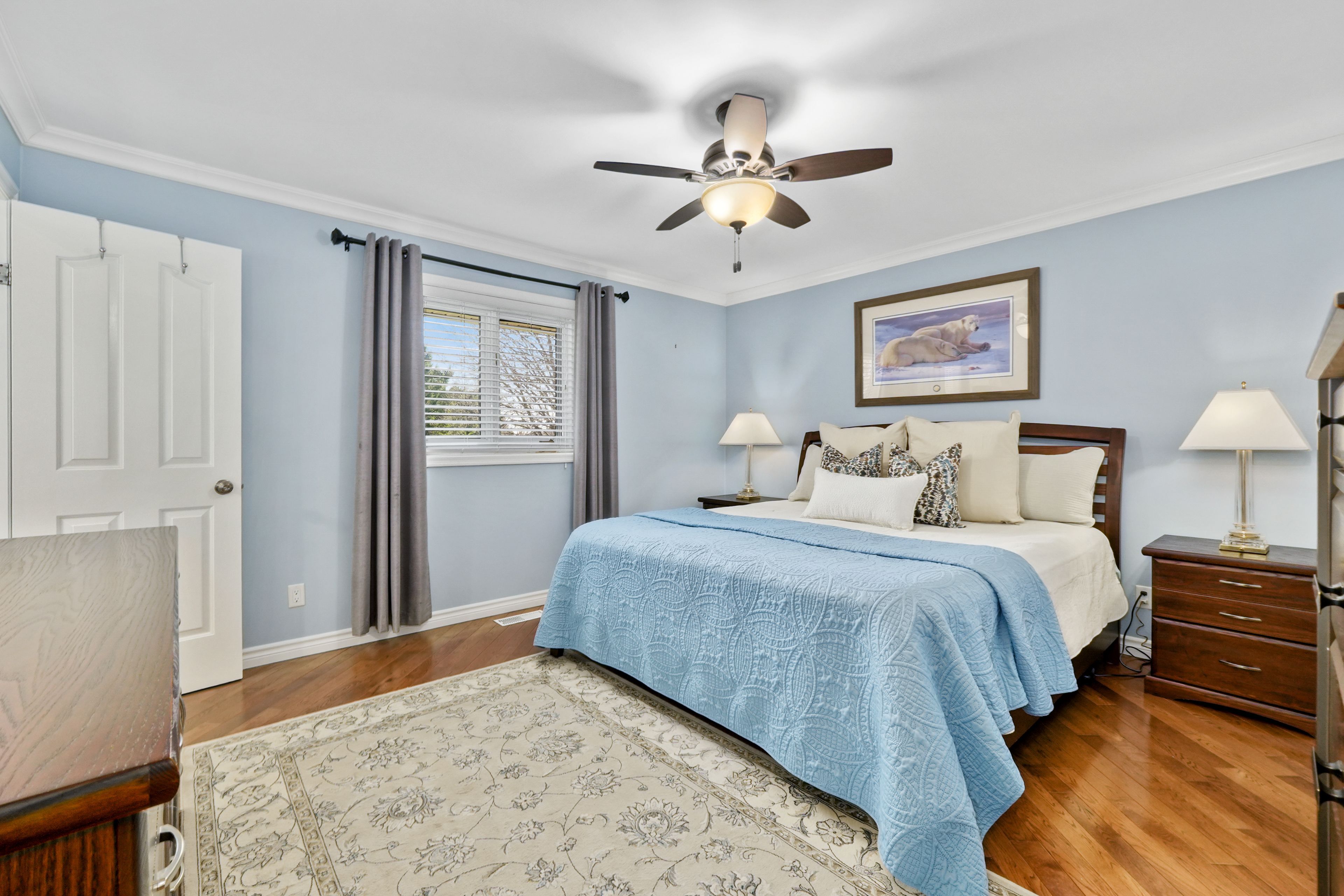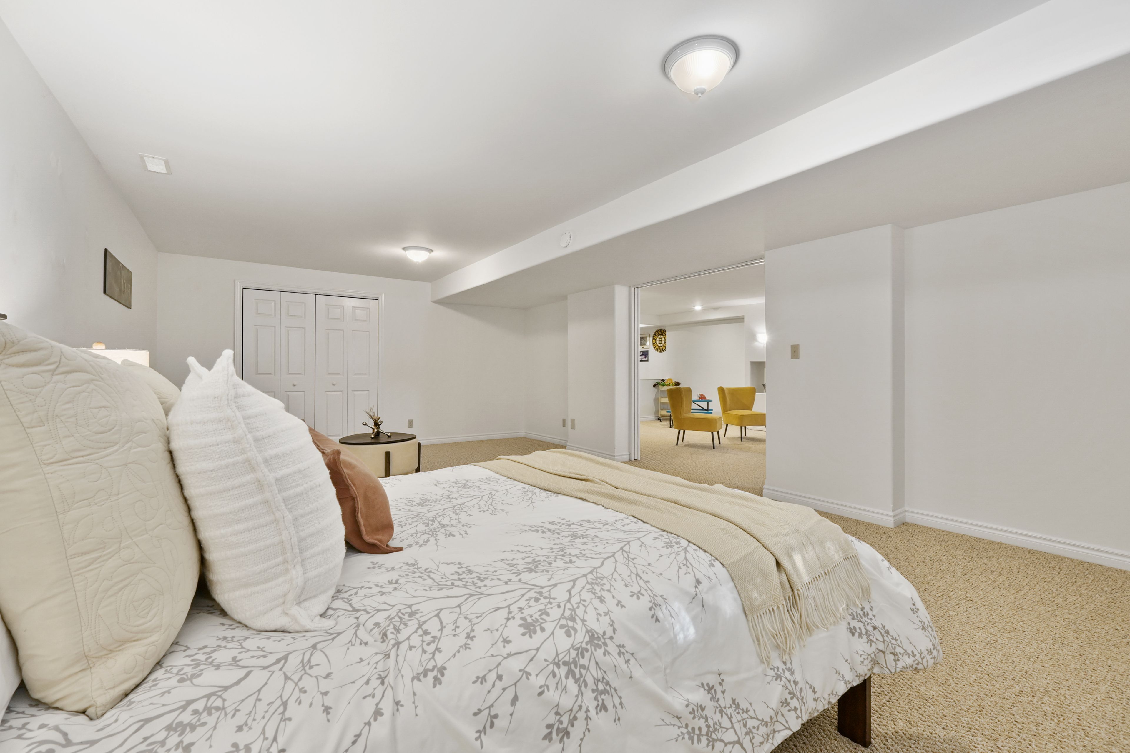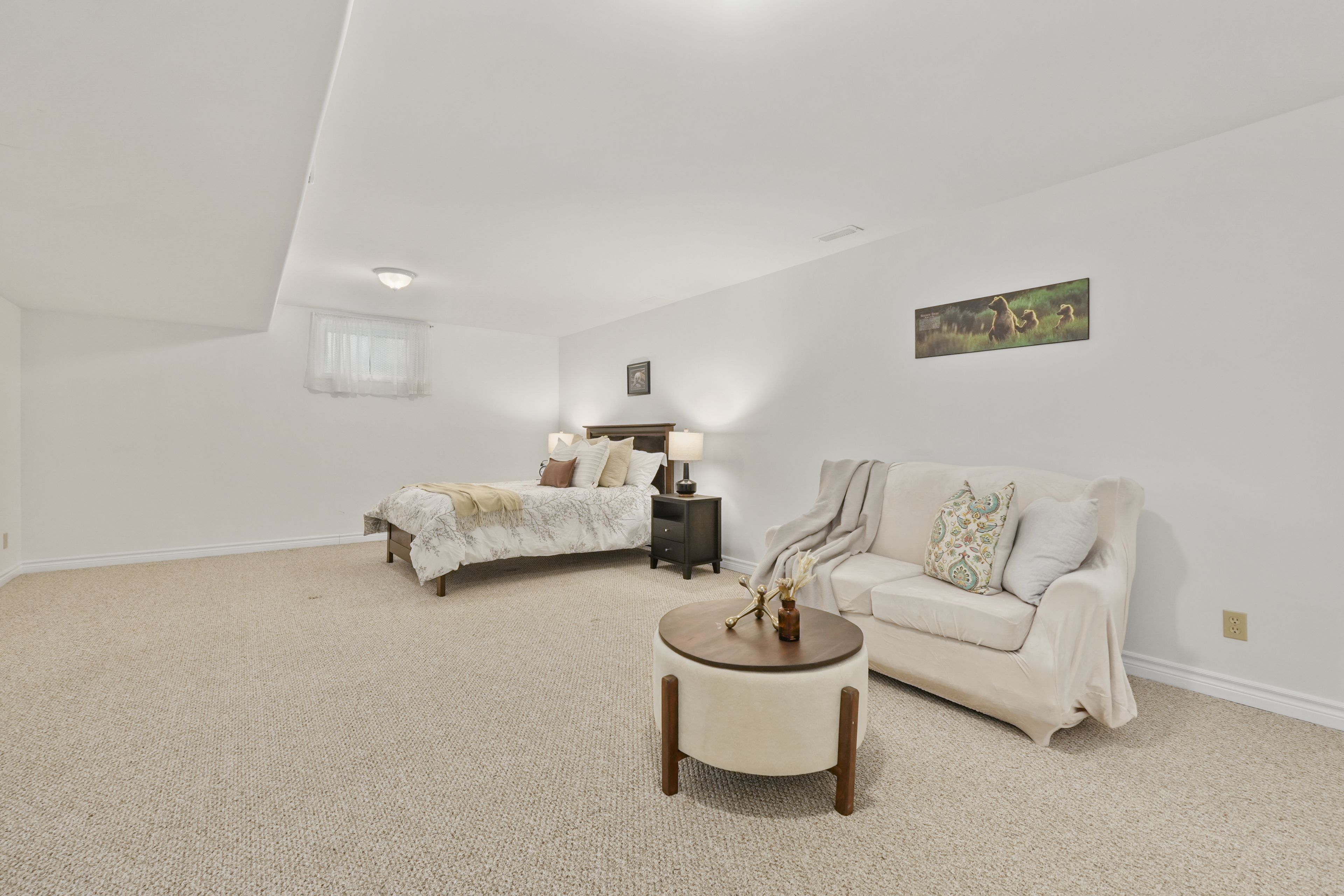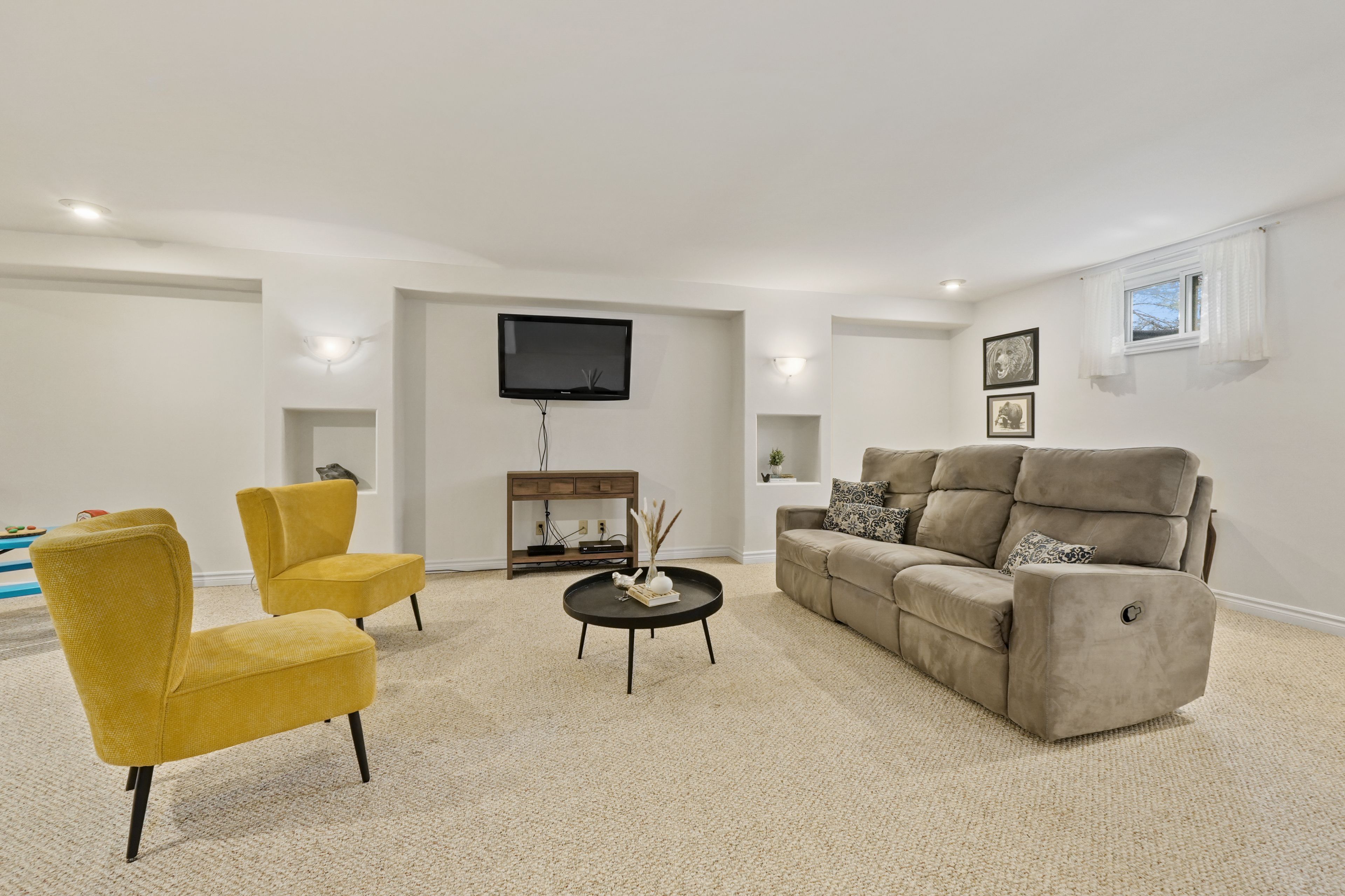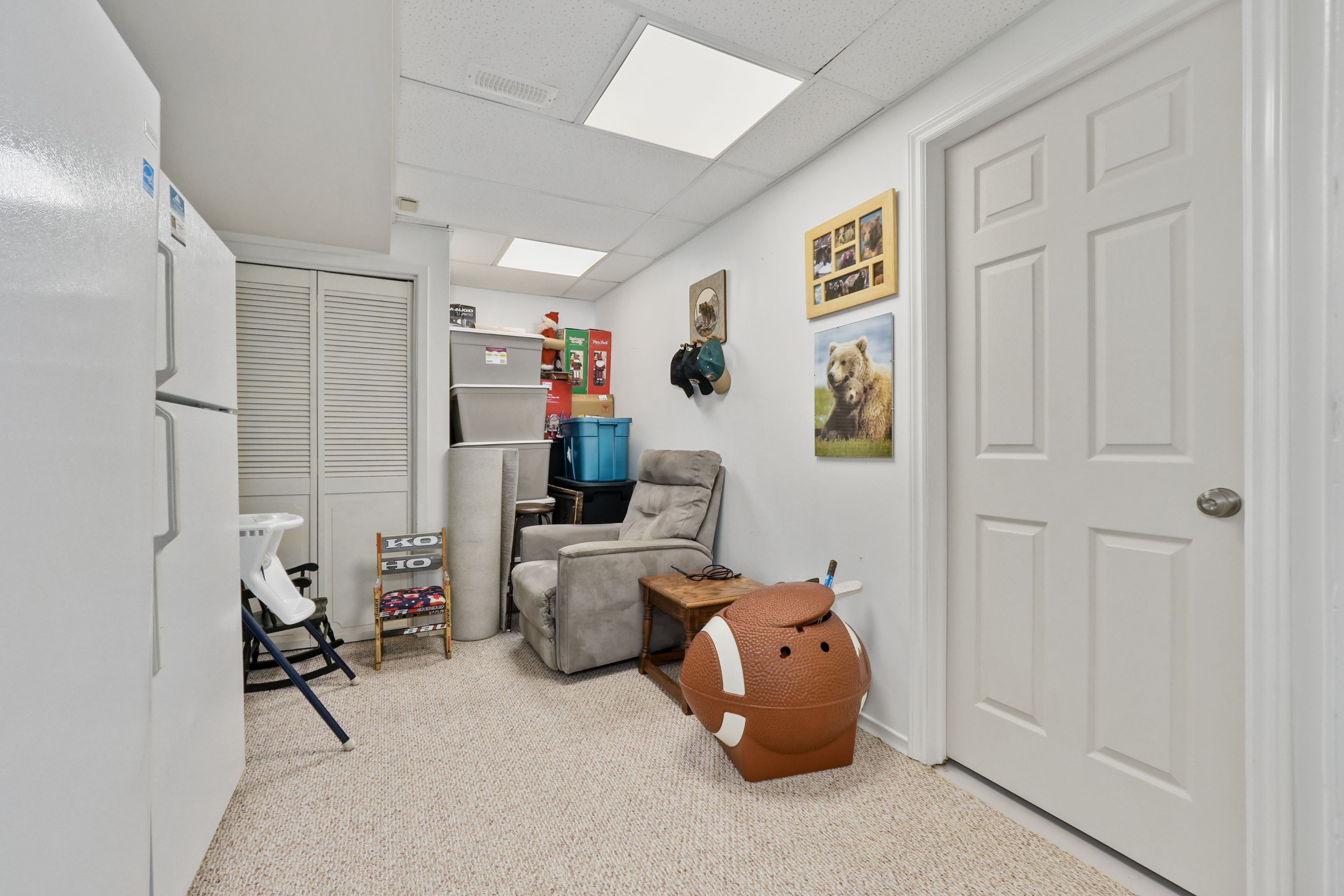 • Finished lower level with rec room, built-in bar, and guest room.