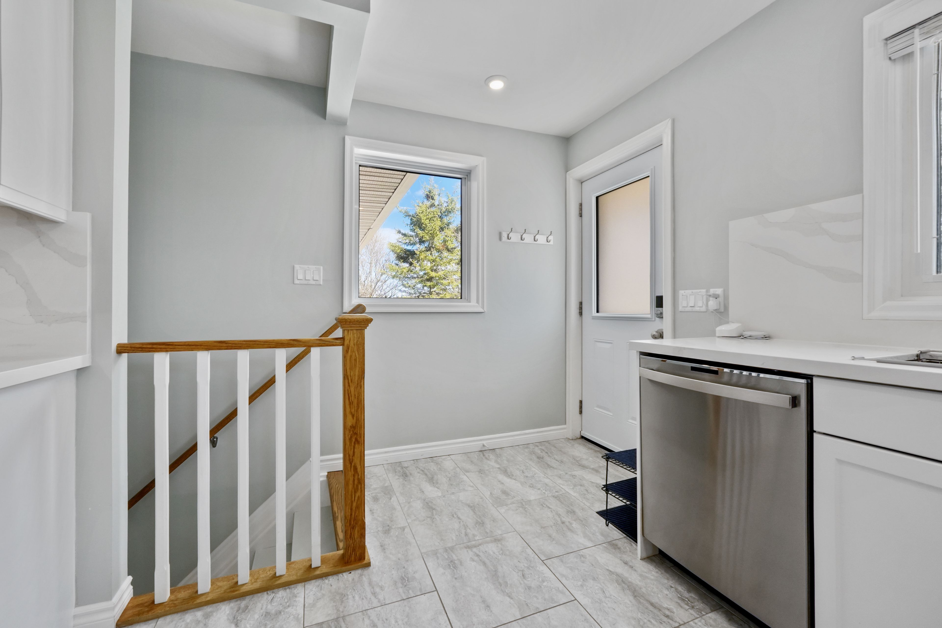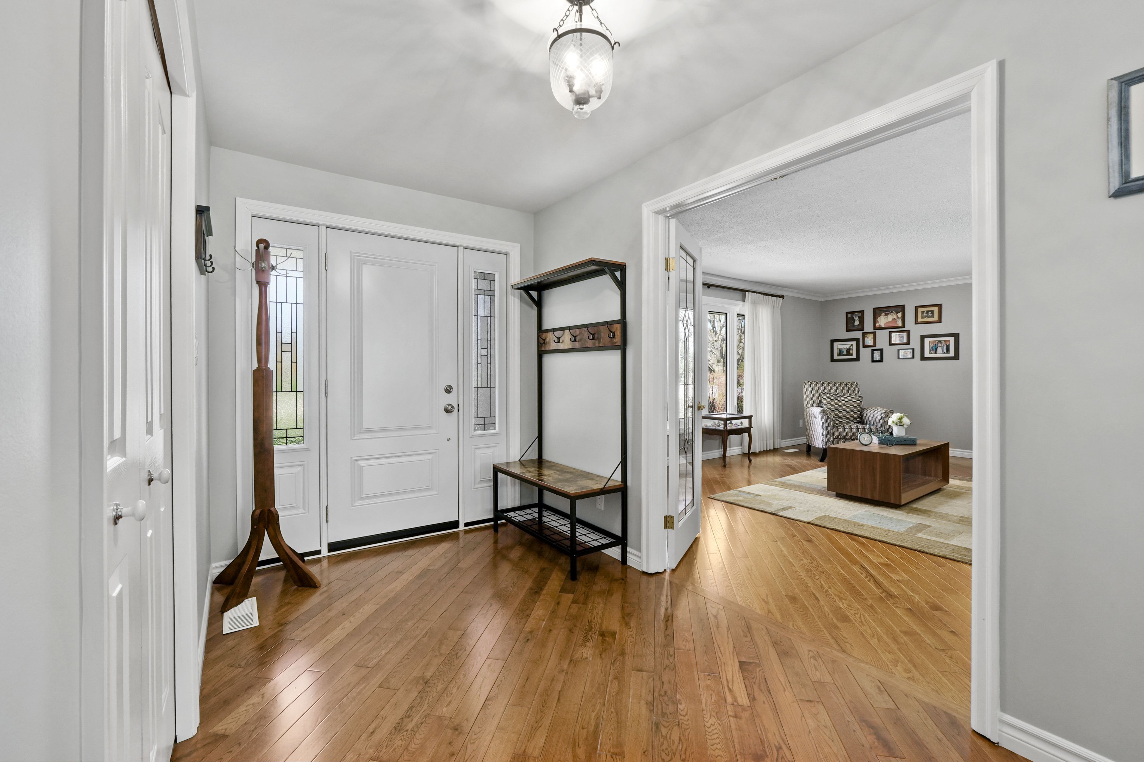 • Open foyer and bright living room with elegant features and natural light.