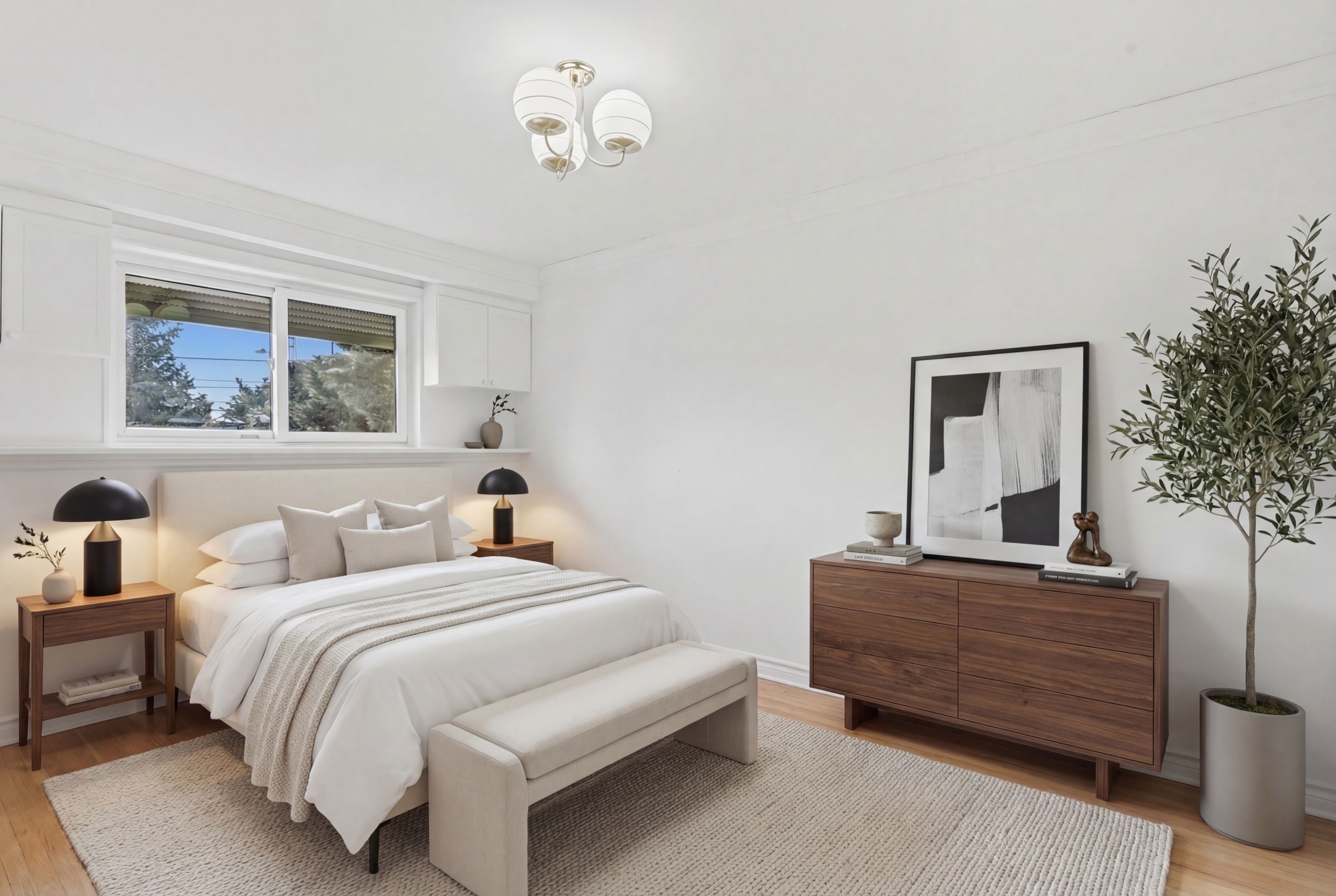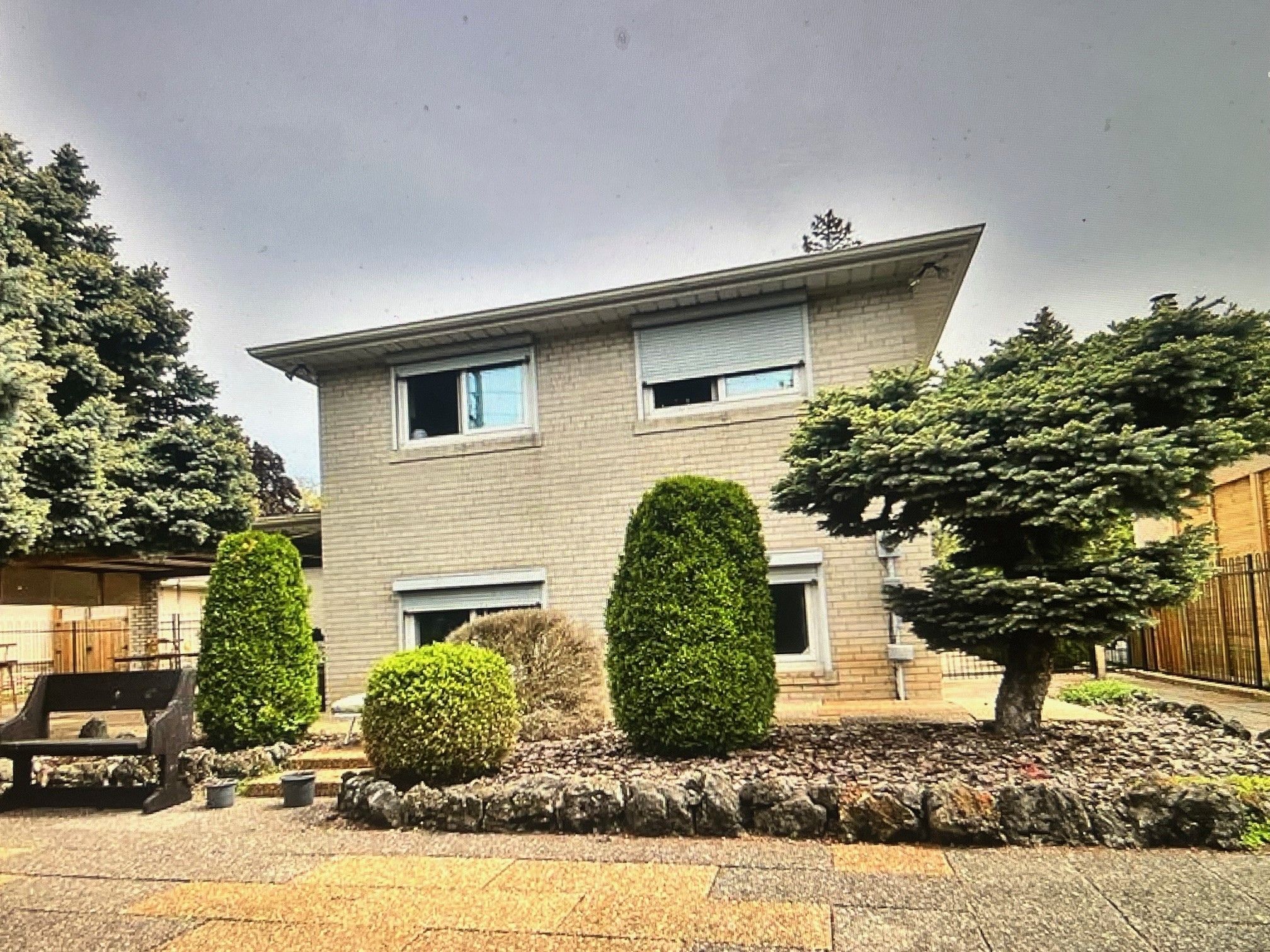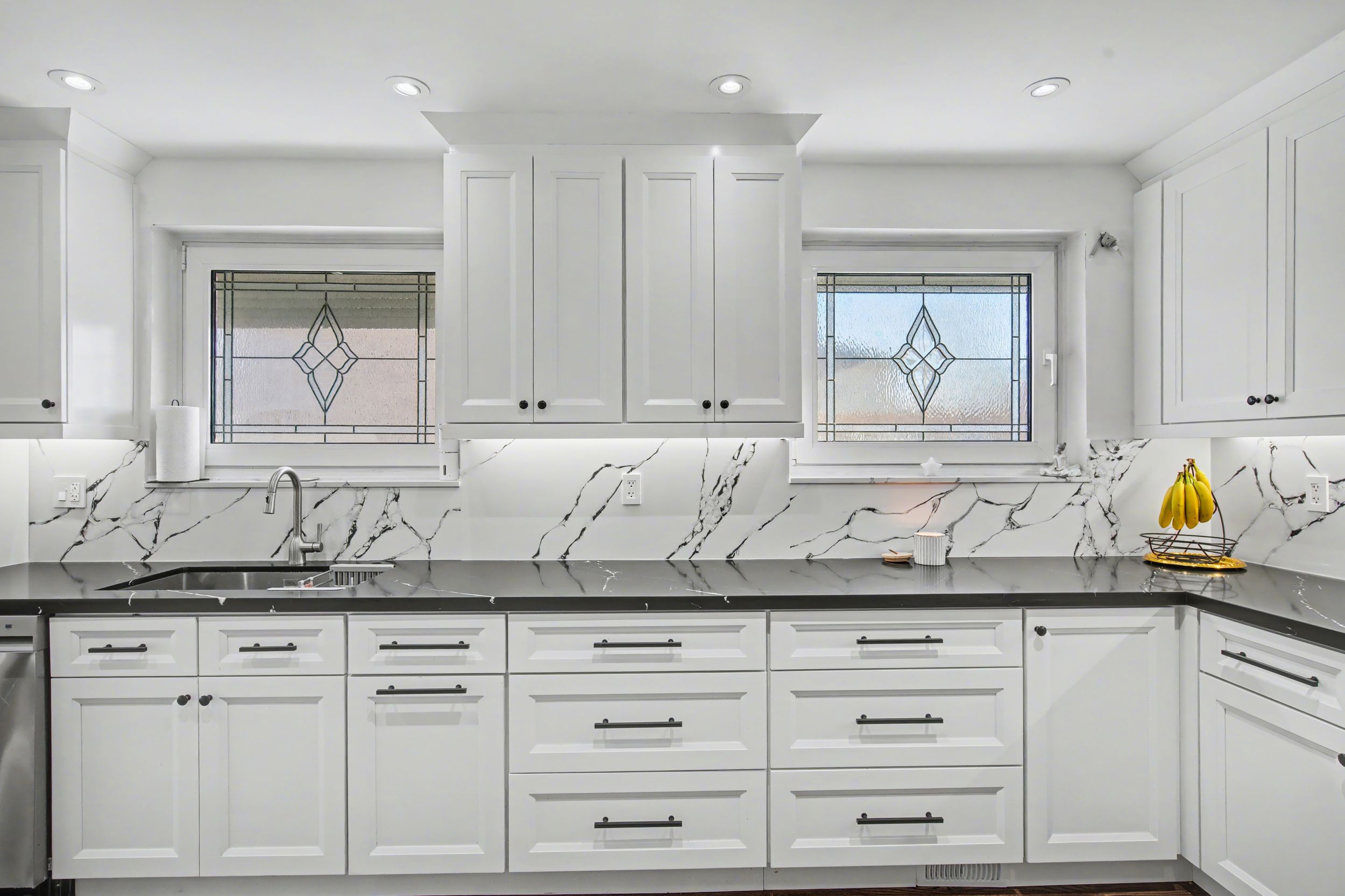 Set on a beautifully landscaped lot, this elegant four-level backsplit offers timeless curb appeal and refined interior living. Boasting approximately 1,802 sq ft of thoughtfully designed space, the home features four spacious bedrooms and two full bathrooms, complemented by a series of tasteful upgrades. Enjoy a brand-new 2025 custom kitchen with quartz slab backsplash, sleek black stone countertops, high-end stainless steel appliances, and classic white cabinetry with elegant black hardware. Recent upgrades include new windows, renovated bathrooms, hardwood floors, front porch, garage door, furnace, central air conditioning, roof, and washer/dryer. A separate side entrance leads to a private, fenced backyard with covered patio-perfect for relaxing or entertaining. Move-in ready and meticulously maintained, this home is a true showpiece.