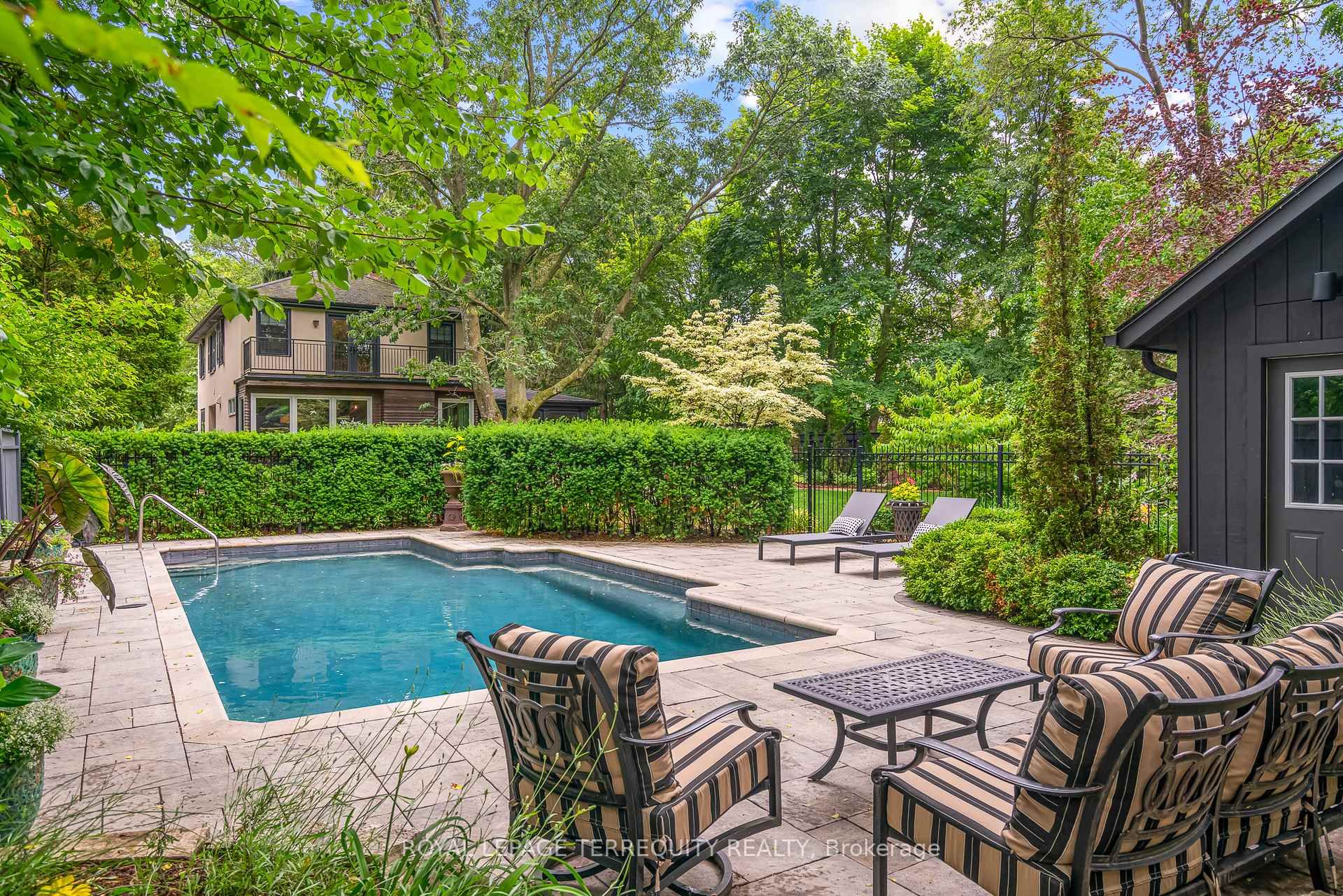 Welcome to 277 king st in the heart of niagara-on-the-lake's old town. This stunning home is set on an oversized, professionally landscaped lot featuring a heated salt water pool. The patio is an entertainer's delight! Built-in grill and outdoor kitchen with a bar. There's ample outdoor dining space and gas fire bowl to gather around on cooler evenings. Walk-out from the dining room to spacious maintenance free deck. Inside, the spacious main floor offers plenty of room to entertain. The dining room features a custom wine cellar. The oversized living room has a wood burning fireplace and custom built-in bookcases. The family room features a gas fireplace, built-in bar, floor to ceiling windows to enjoy views of the private yard. The eat-in kitchen features stainless steel appliances and pot filler over the range. The side entrance to the mudroom is perfect on a rainy or snowy day. A nice sized den or office with built-in book cases rounds out the main floor. Upstairs you will find the primary bedroom with a five piece ensuite bath. Walkout to the second floor balcony. Laundry is located on the second floor for convenience. There are two additional bedrooms with large windows overlooking the front gardens. Steps to the famous shaw theatre, fine dining and shopping. A quick walk to the historic niagara-on-the-lake golf course, the oldest in north america. A perfect full-time or weekend residence that does not disappoint!