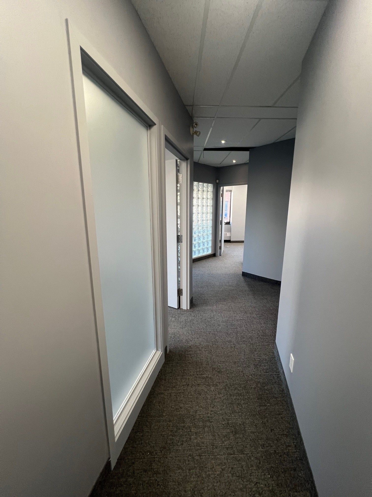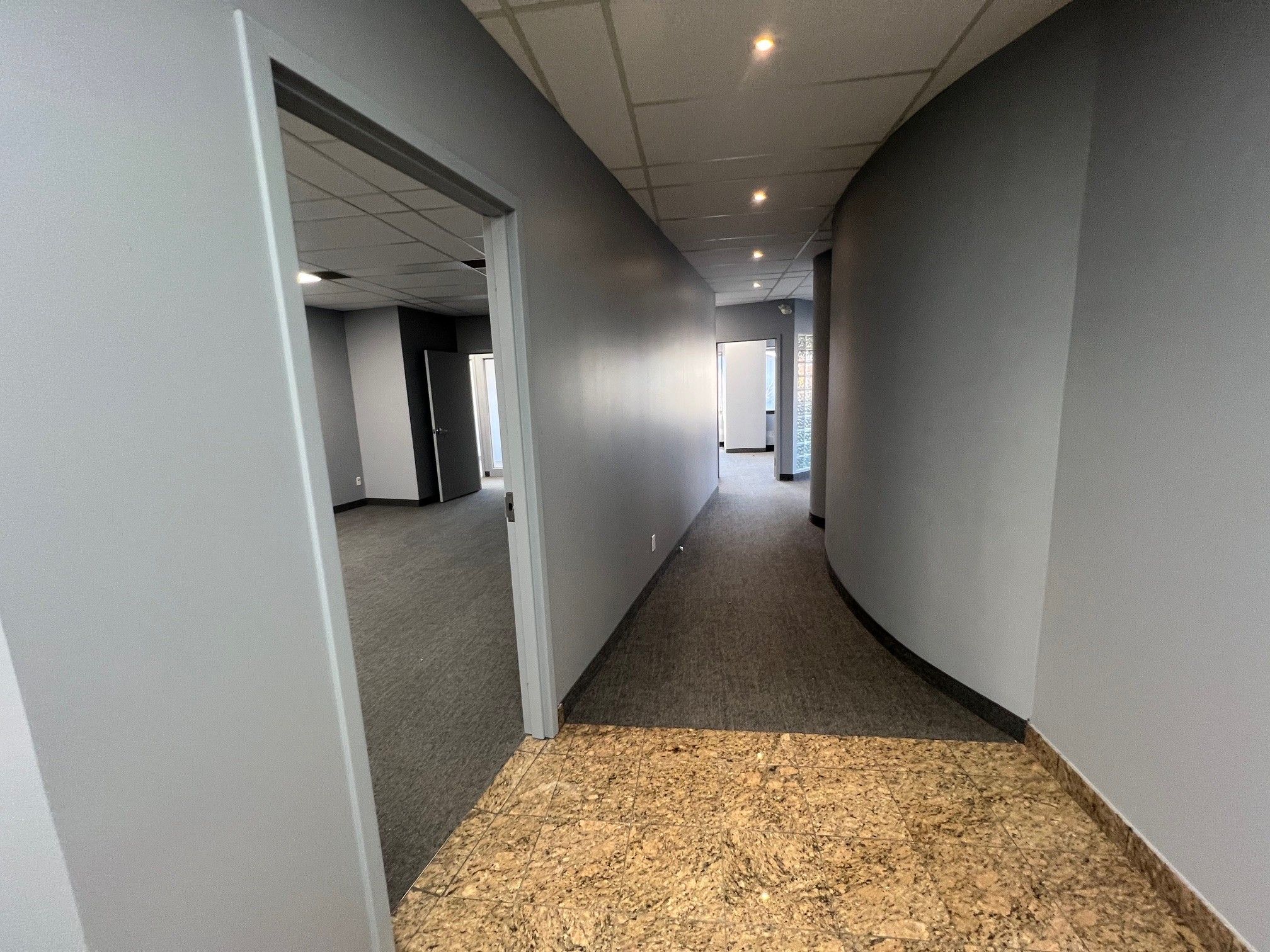 • Includes private offices, meeting room, kitchen, and open area.