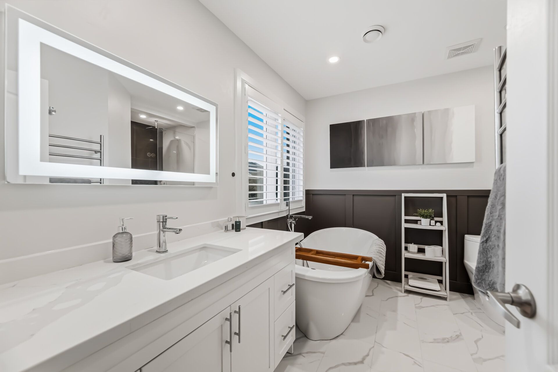 • Upgraded kitchen features quartz countertops and stainless steel appliances.