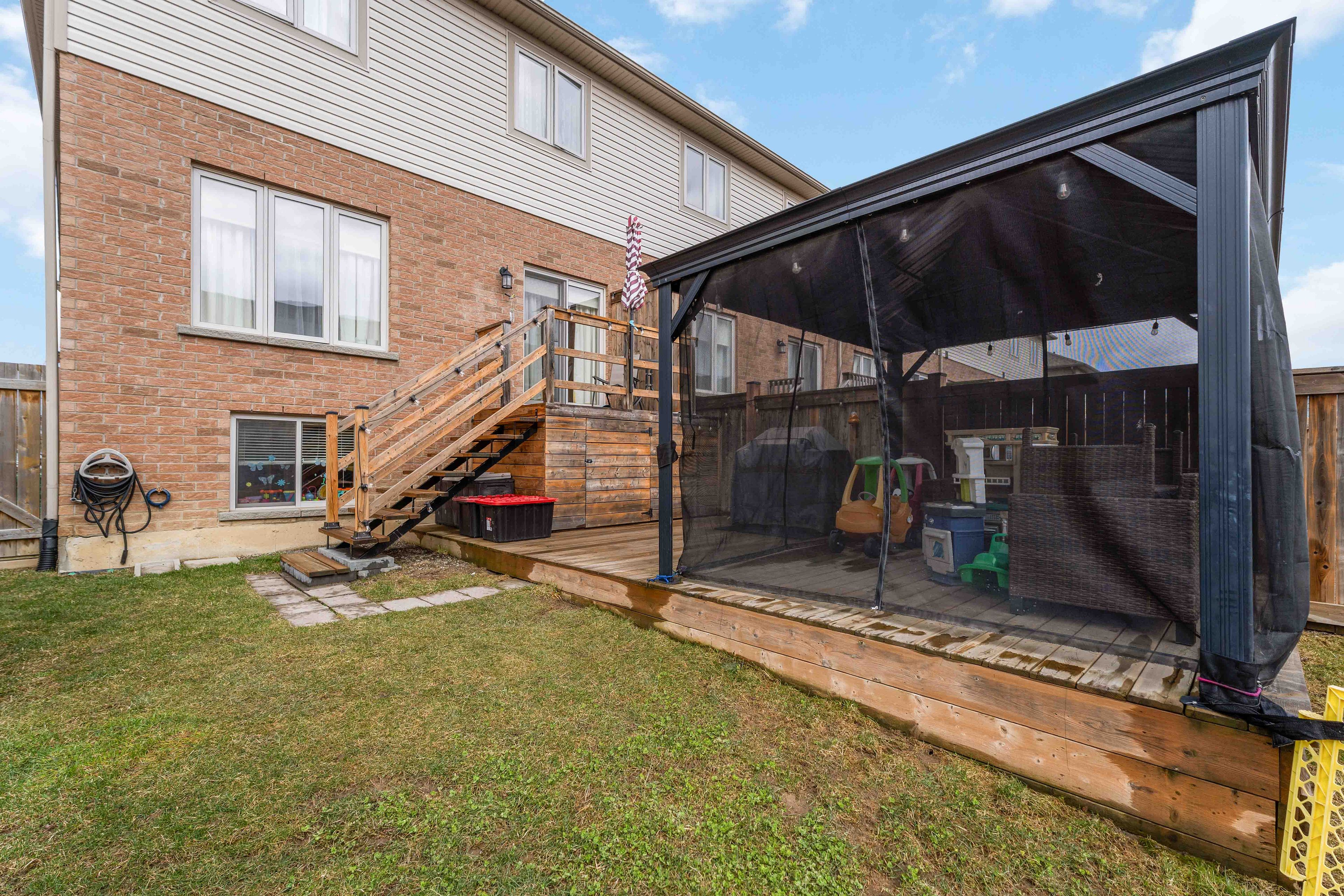 • Large deck overlooks an oversized backyard for outdoor enjoyment.