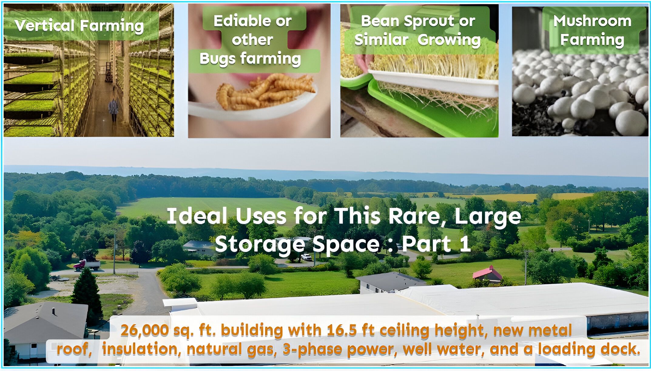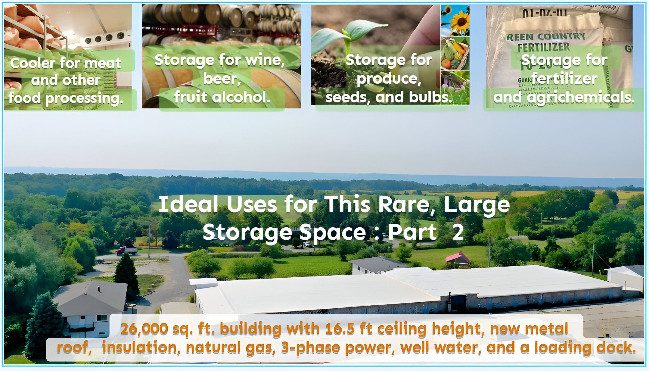 • Spacious barn with 26,000 square feet and high ceilings for versatile use.