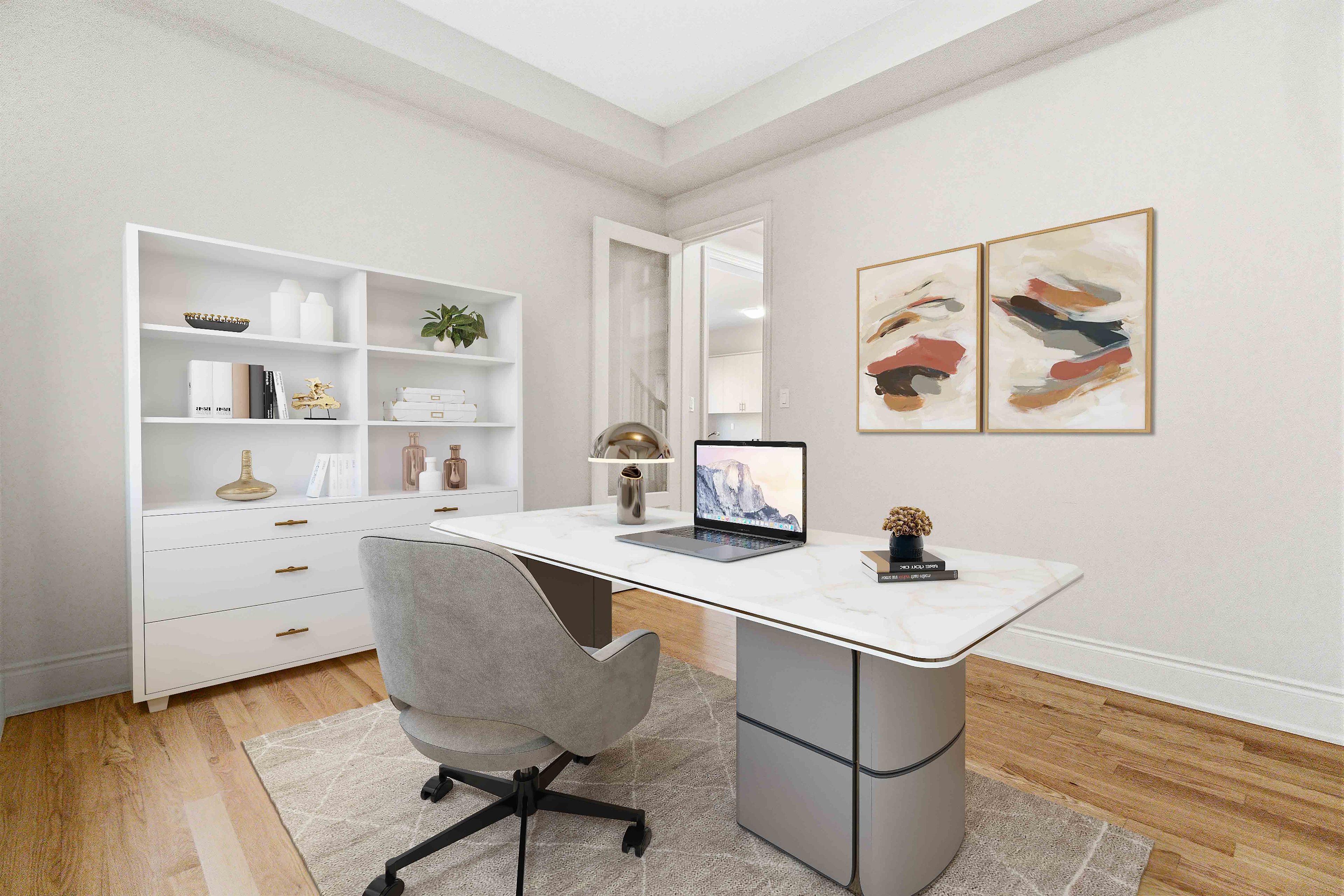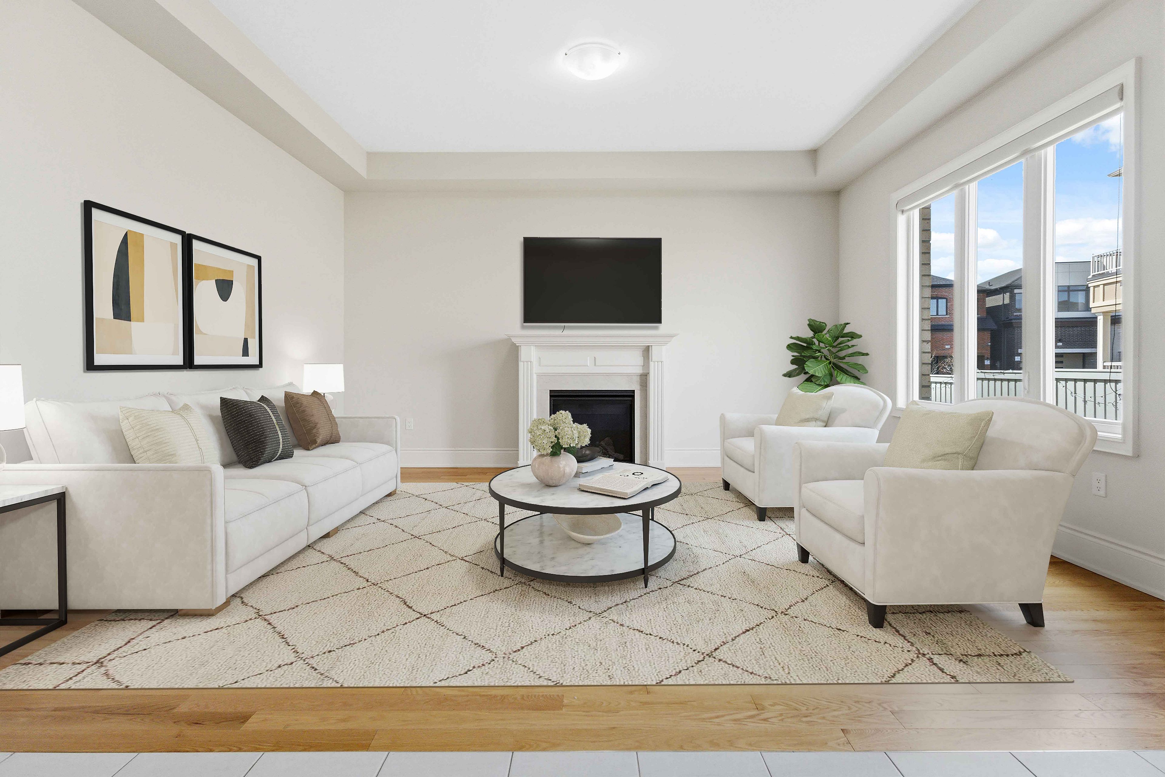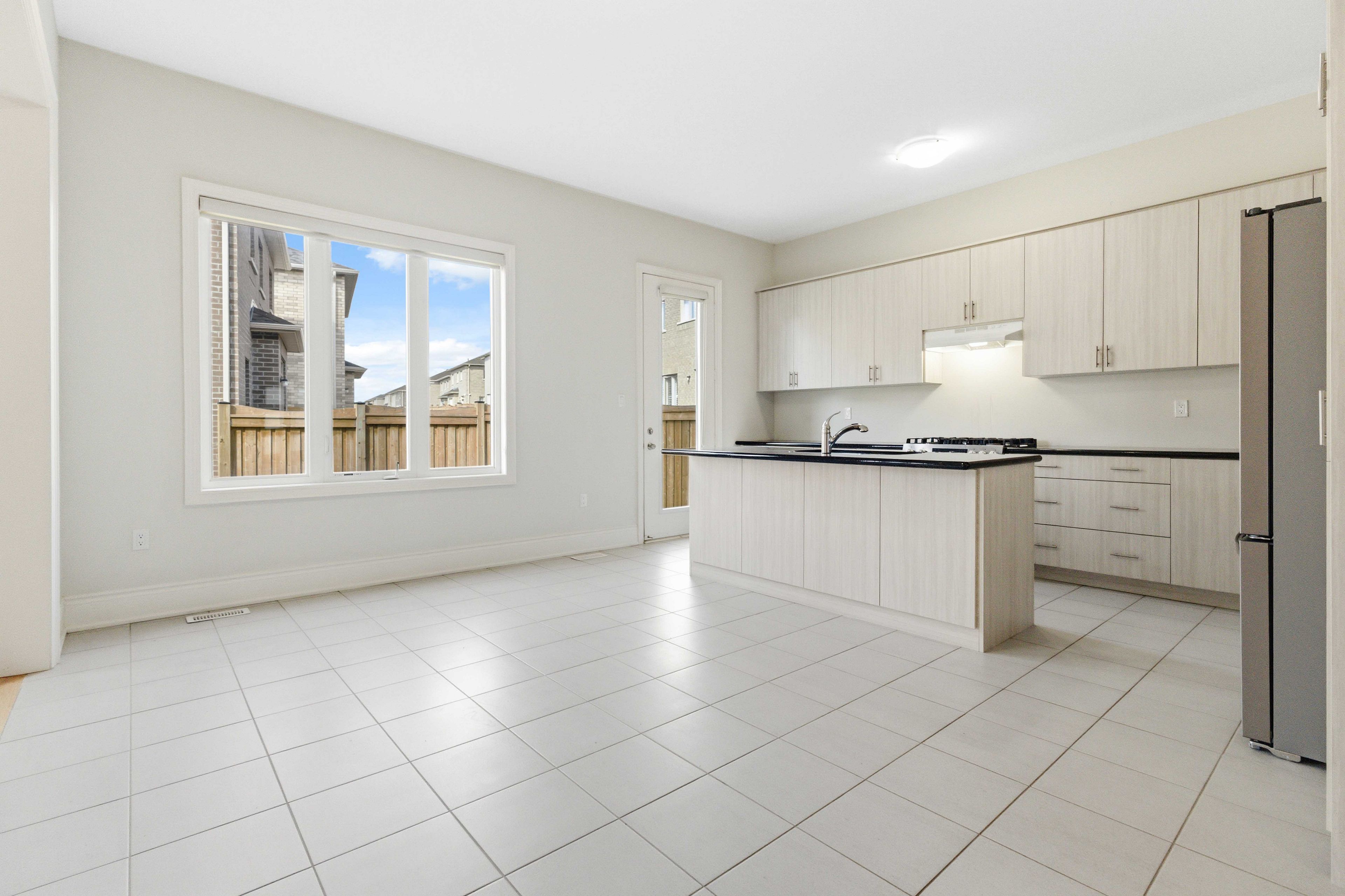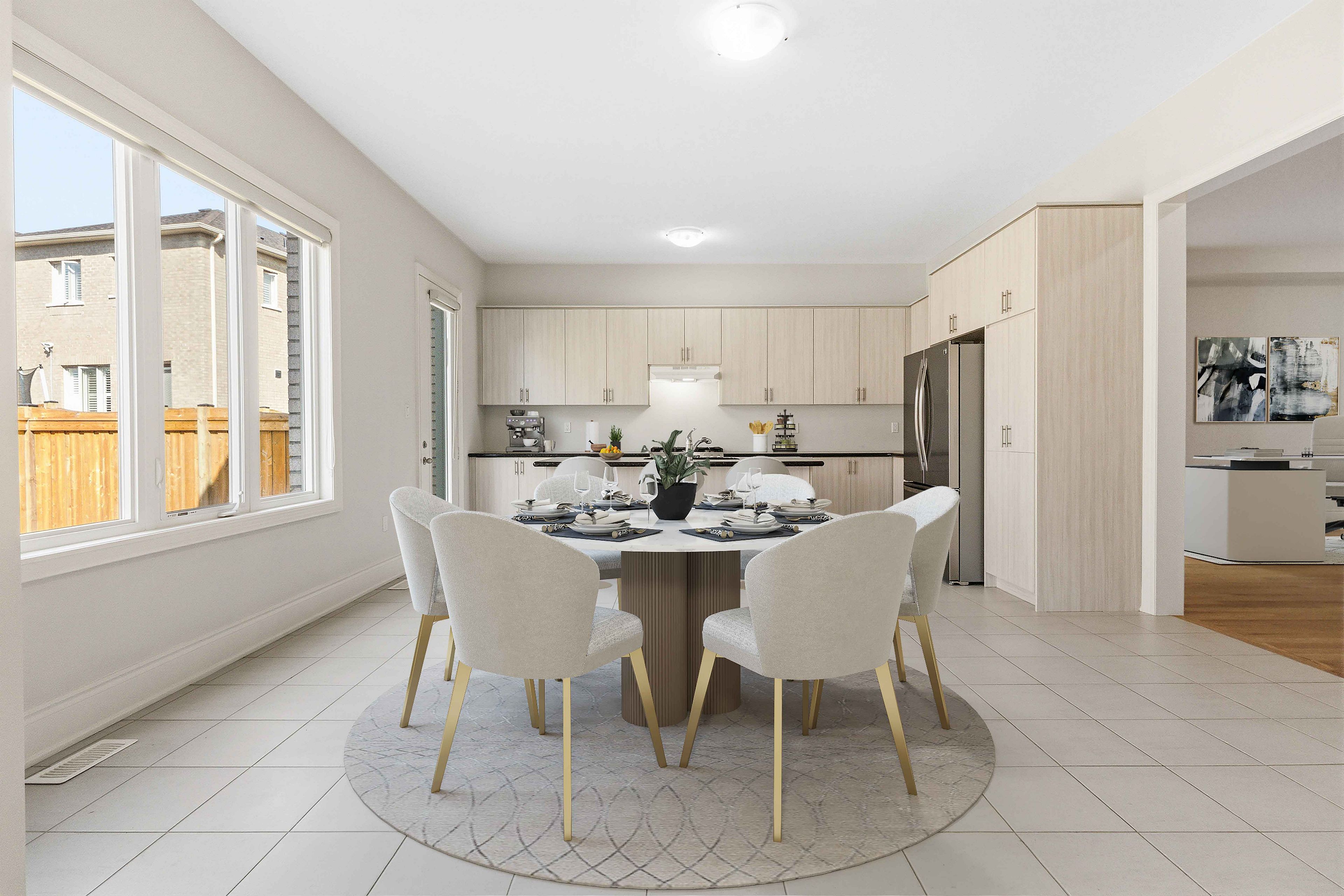 • Bright open-concept layout with large windows for natural light.