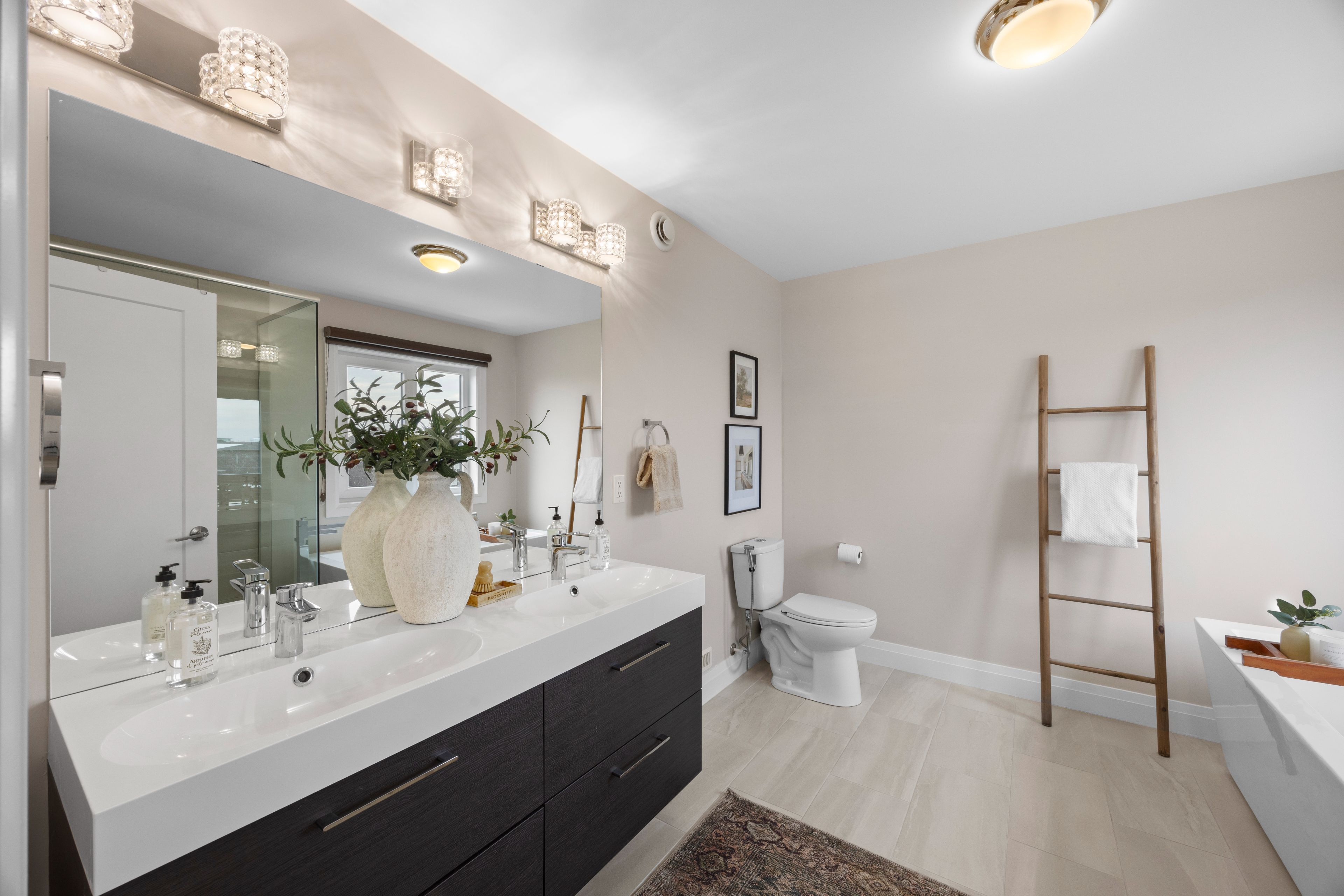 • Upper level features spacious bedrooms, including a luxurious primary suite.