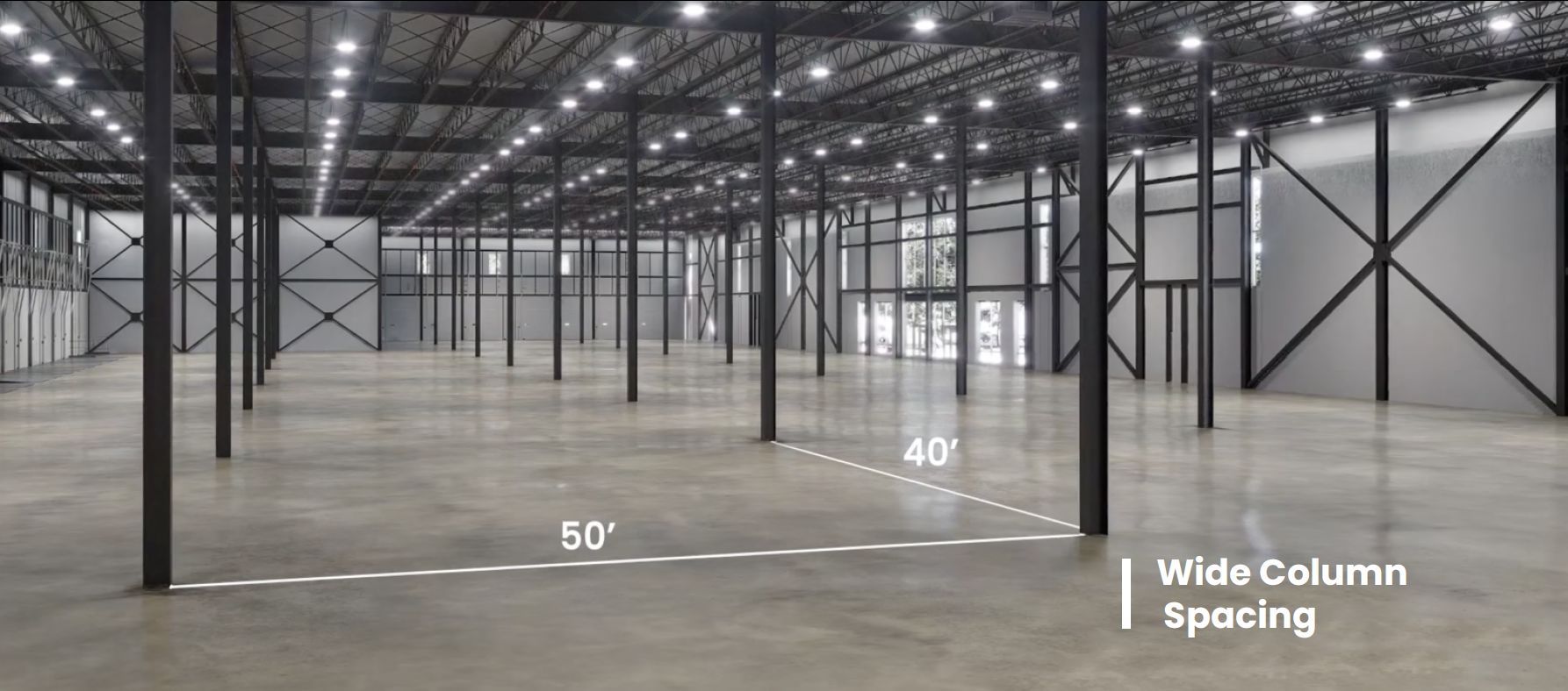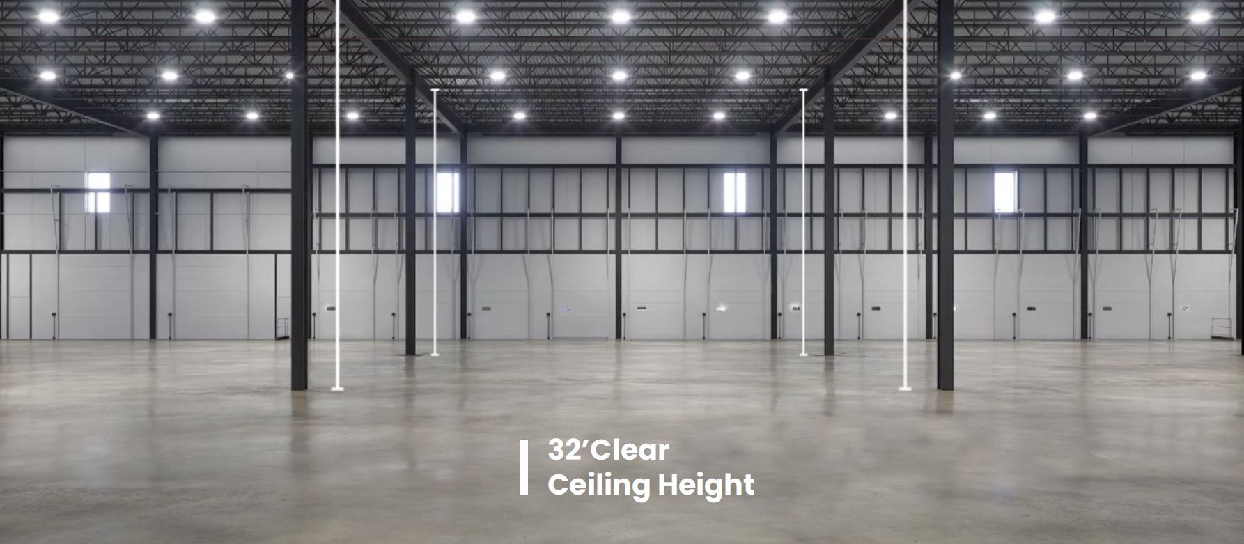 • 32' clear ceiling height and flexible column spacing for efficient operations.
