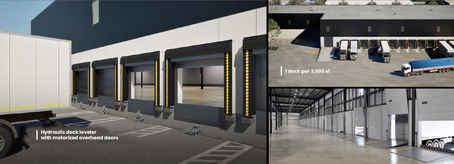 • Dedicated shipping and receiving areas with ample dock-level and drive-in doors.