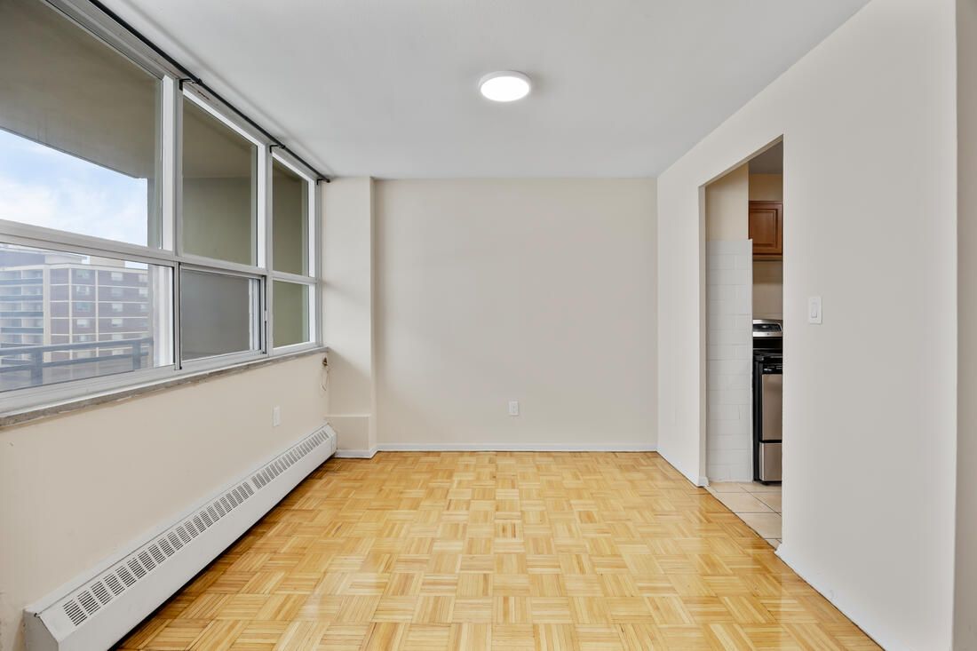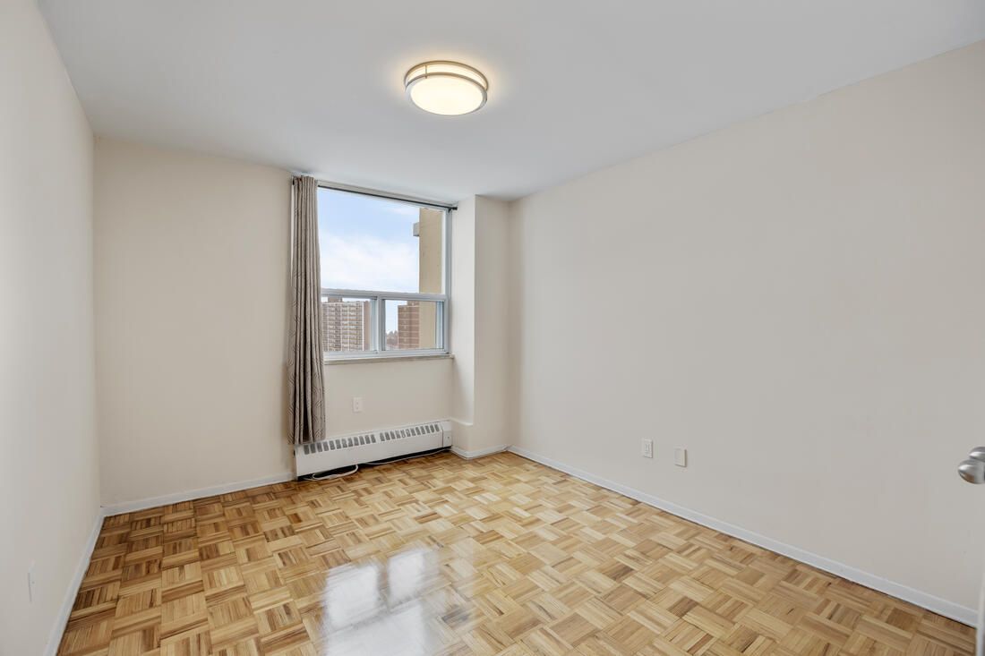 Bright and spacious unit in well maintained building. Gleaming parquet floors! Balcony! Next door to fairview mall.