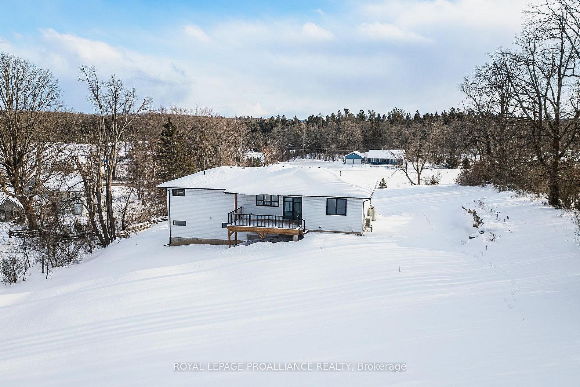 Perched upon 1 acre of gently rolling terrain w/ panoramic southern exposure, this modern prairie-style bungalow is ready for occupancy. Brand-new custom home by duromac homes offering exceptional quality, thoughtful design, & tarion warranty. Boasting approx. 2700sqft of living space, the 1745sqft main floor is complemented by a finished lower lvl w/ additional 933sqft, ideal for multigenerational living or in-law suite thanks to a sep. Entrance off garage. The main lvl features 9ft ceilings with an 11ft step-up in the living rm, & a floor-to-ceiling shiplap electric f/p. The striking dbl front door opens to a spacious entry w/ black railings & 8in wide luxury vinyl flooring throughout. Showstopping kitchen featuring ceiling-height 2-tone cabinetry, quartz counters, soft-close, 8ft x 4ft island with seating & a large walk-in pantry. Open dining area offers seamless access to the rear deck, partly covered for shade & partly open for sun. Private & luxurious east-wing primary suite with 9ft patio doors to a private balcony with glass railings, a spa-like ensuite with quartz dbl vanity, standalone soaker tub, glass/tile shower, plus a spacious wic. 2 additional bdrms on the opposite end of home share a 4 pc bath. M/f laundry including sink. Downstairs, the bsmt features a large rec/games rm with oversized windows, 4th bdrm & 3pce bath. Insulated, drywalled dbl garage includes transom windows & stylish modern garage door. Outside, the meticulously designed exterior combines stone, metal, & vinyl siding with natural stone accents & stone pillars. Additional features include a high-eff propane/heat pump hvac system, owned hwt, water system with uv light, erv air exchanger, garage door opener, seeded lawn, & drilled well. Surrounded by large-acreage properties, outlined with natural trees for privacy & armour stone lined driveway, this home is the perfect blend of luxury, comfort & peaceful country living. Floor plans, survey, & well record avail. Quick closing possible.