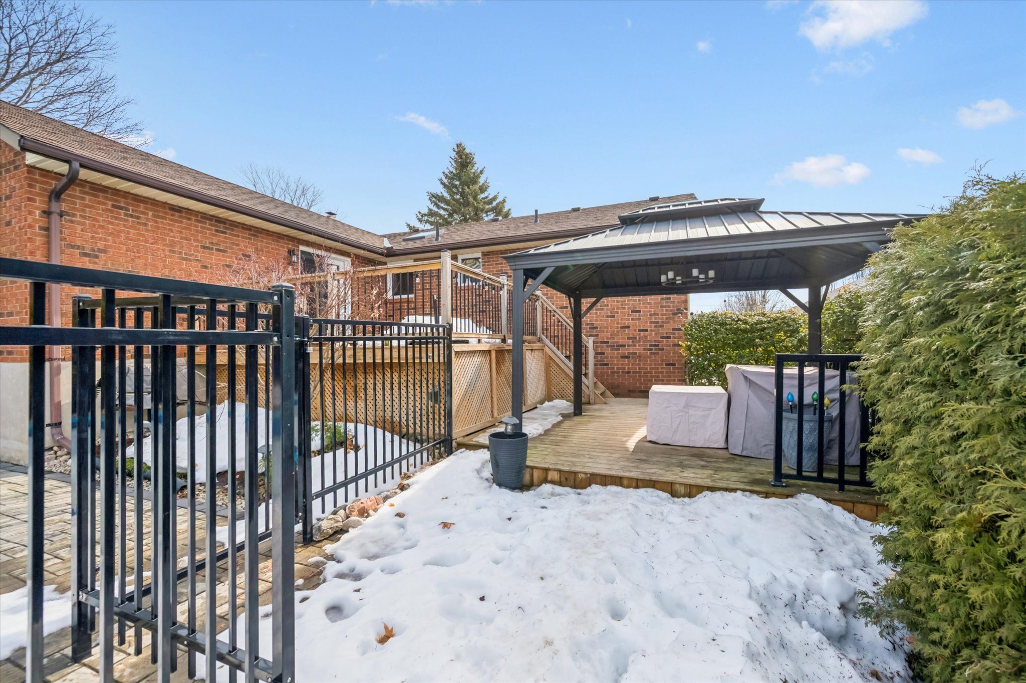 This raised bungalow is going to definitely surprise when you step inside. Nicely updated - and a very spacious layout offering over 2,100 square feet of finished living area. A newer inground salt water pool with professional hardscaping and gazebo is a special bonus here! The home itself features 4 bedrooms and 2 full baths. Lots of natural light streams throughout the home thanks to all the oversized windows and a large skylight in the kitchen. Beautiful hardwood floors on the main level. And the vaulted ceilings make the home feel even larger. Living and family rooms on the main level and a rec room on the lower level. Lots of space to spread out. Gas fireplace in family room. Walk out to rear deck overlooking the pool and backyard. A great family home - and perfect for entertaining. Double wide interlock brick driveway. A very well maintained home that is move in ready.
