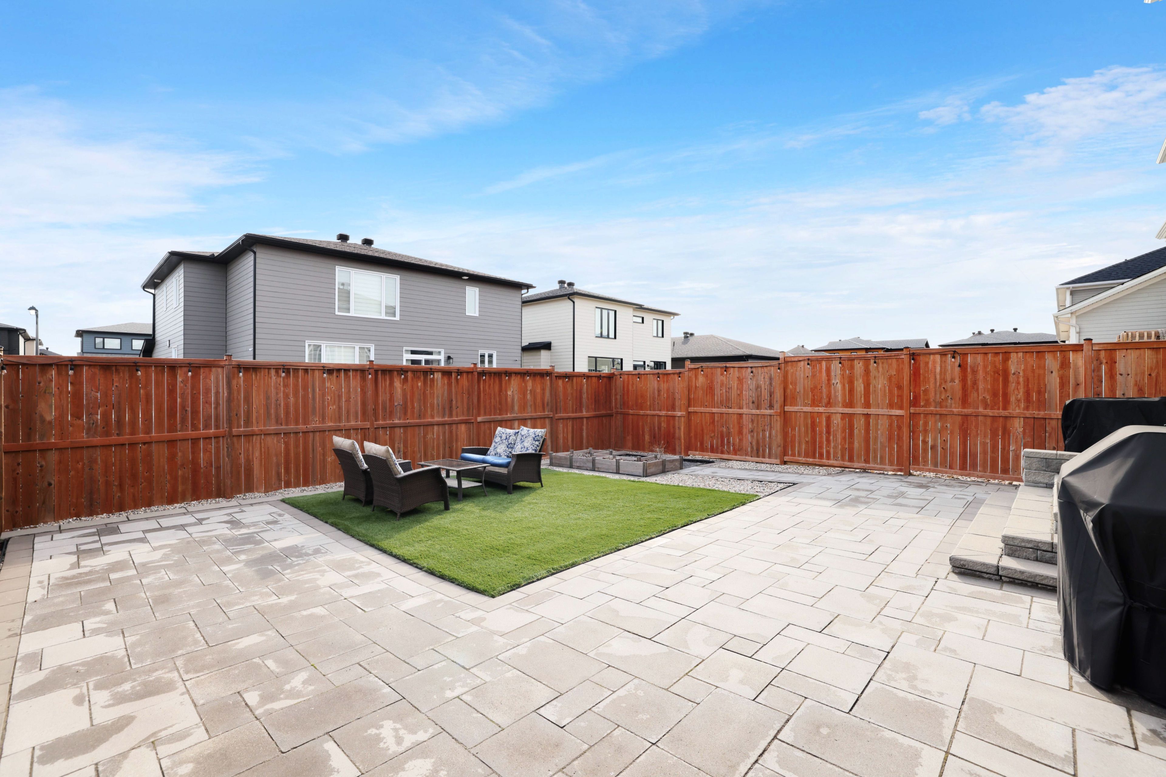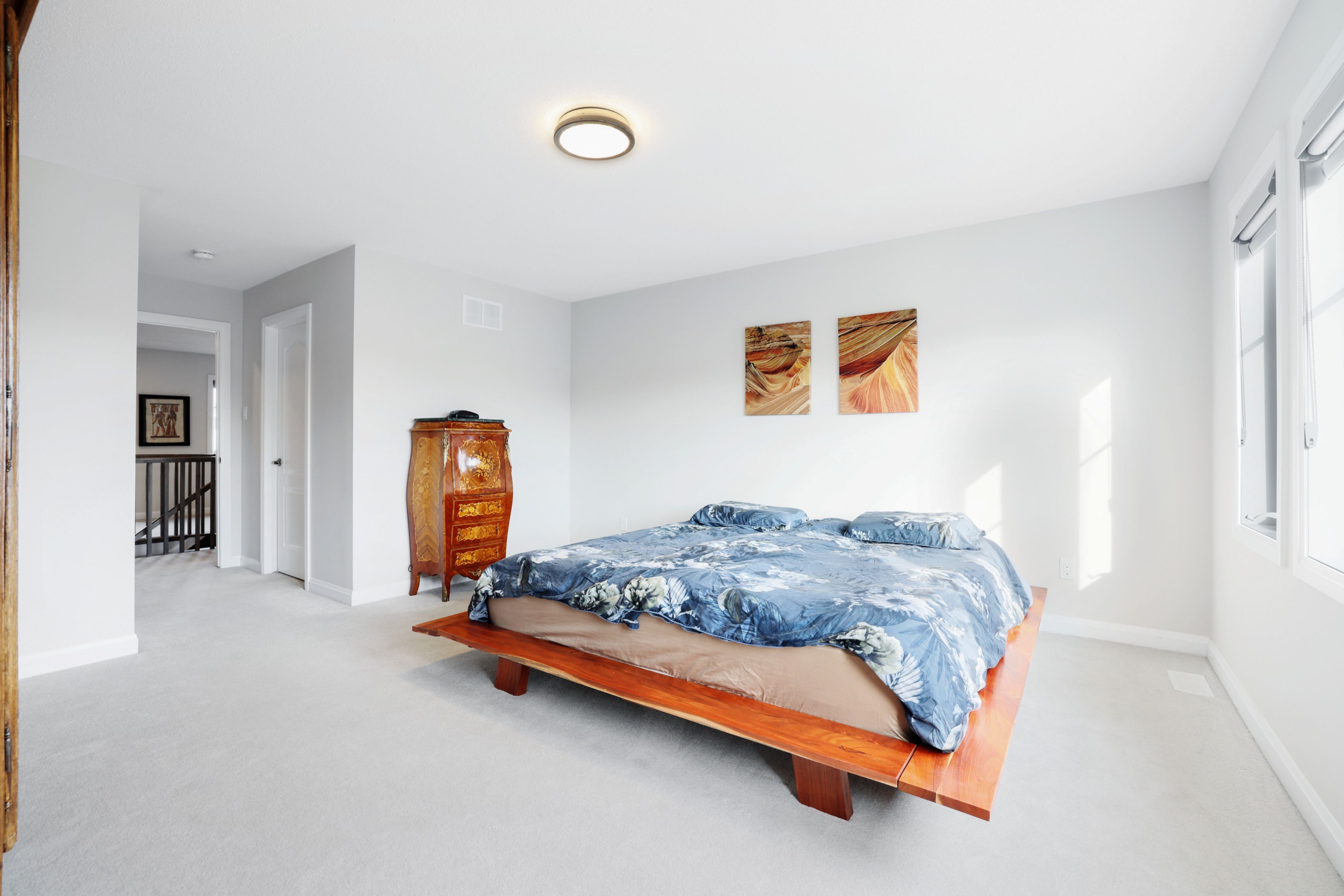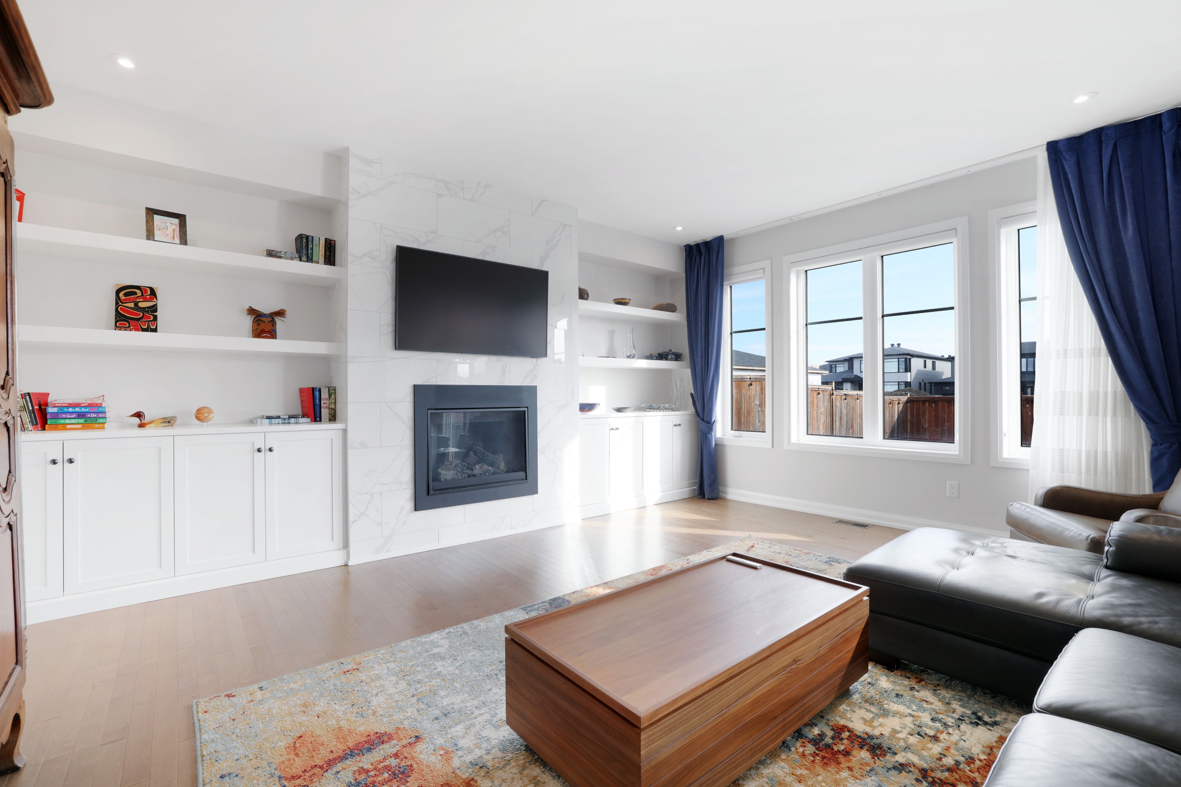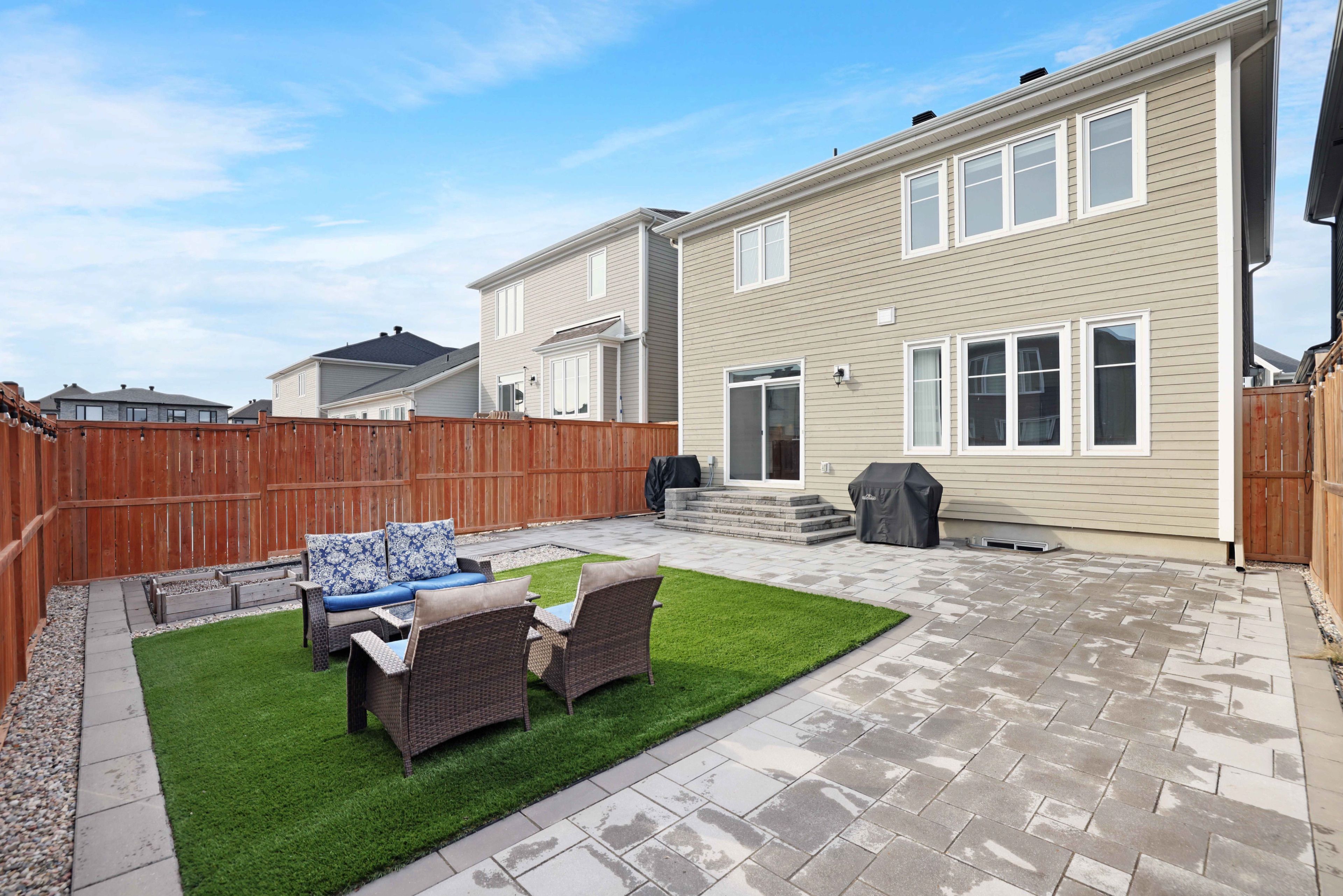 This gorgeous 4 bedroom home with a loft, offers elegant living space with contemporary finishes & neutral decor. Hardwood flows throughout the main floor including the gourmet kitchen complete with induction stove, quartz countertops, soft-close drawers providing generous work & storage space, an entertainment-size island & patio doors to the low maintenance backyard. Enjoy the living room with gas fireplace surrounded by custom built-in shelving and large windows. The primary bedroom boasts 2 walk-in closets and well-appointed en-suite with double sinks, warming towel bar & walk-in shower. Three additional bedrooms (one is segregated with a cathedral ceiling and triple window), full bathroom and loft area suitable for an office nook offer adaptable living space. The main floor mudroom with built-in storage bench, hall tree & cabinetry provides direct access to the attached two car garage and stairway to the finished basement complete with a 3-piece rough-in for an additional bathroom. The private, fully fenced back yard offers a landscaped, low maintenance entertainment-size space to relax and unwind with extensive interlock, stone and artificial turf and the option of raised gardens. Close to schools, parks and walking distance to trails and the pond. Just imagine!