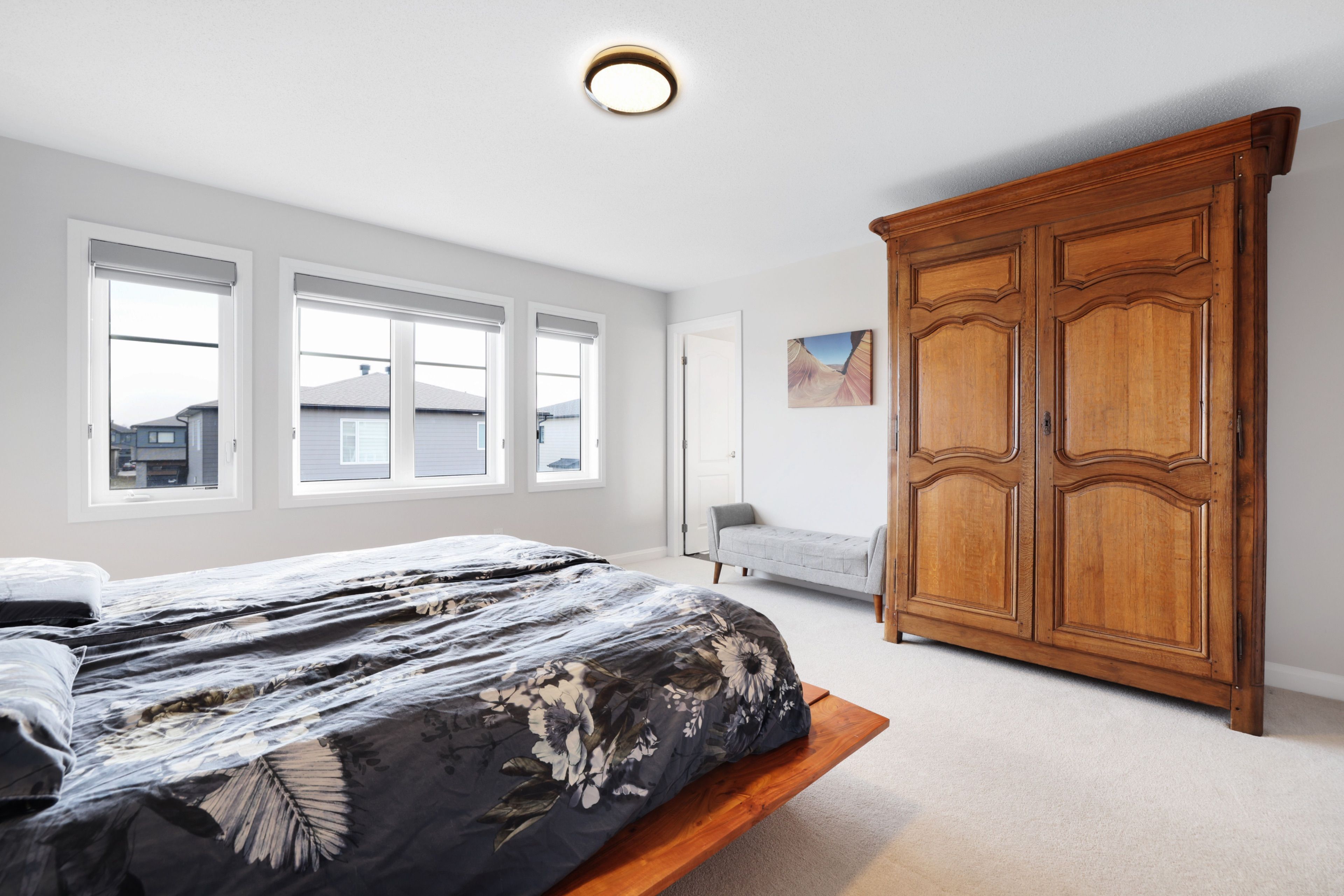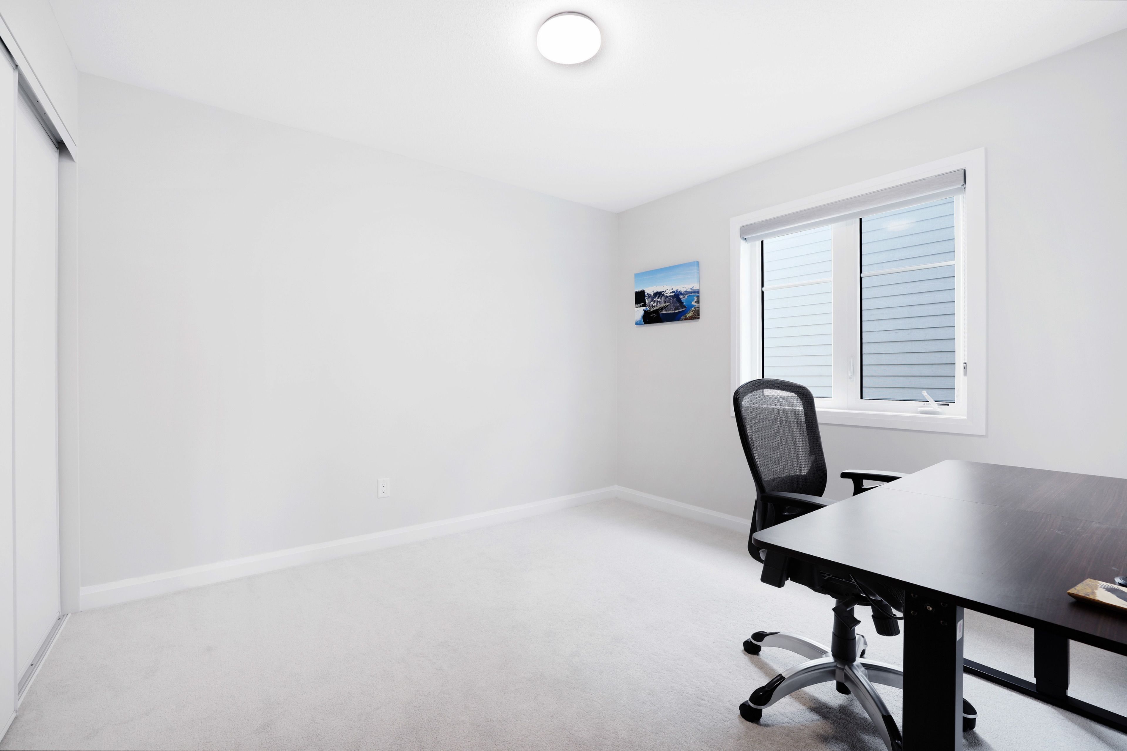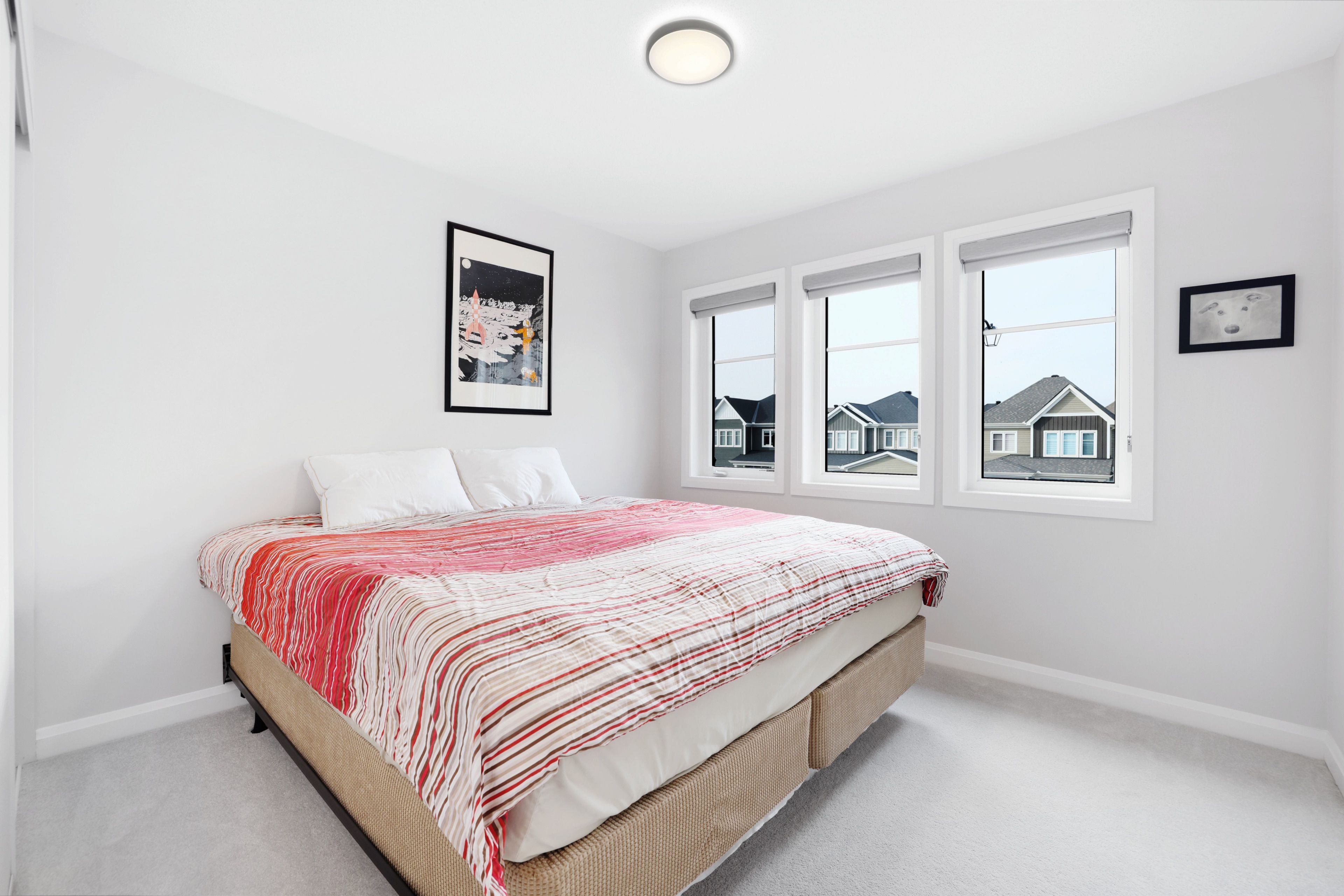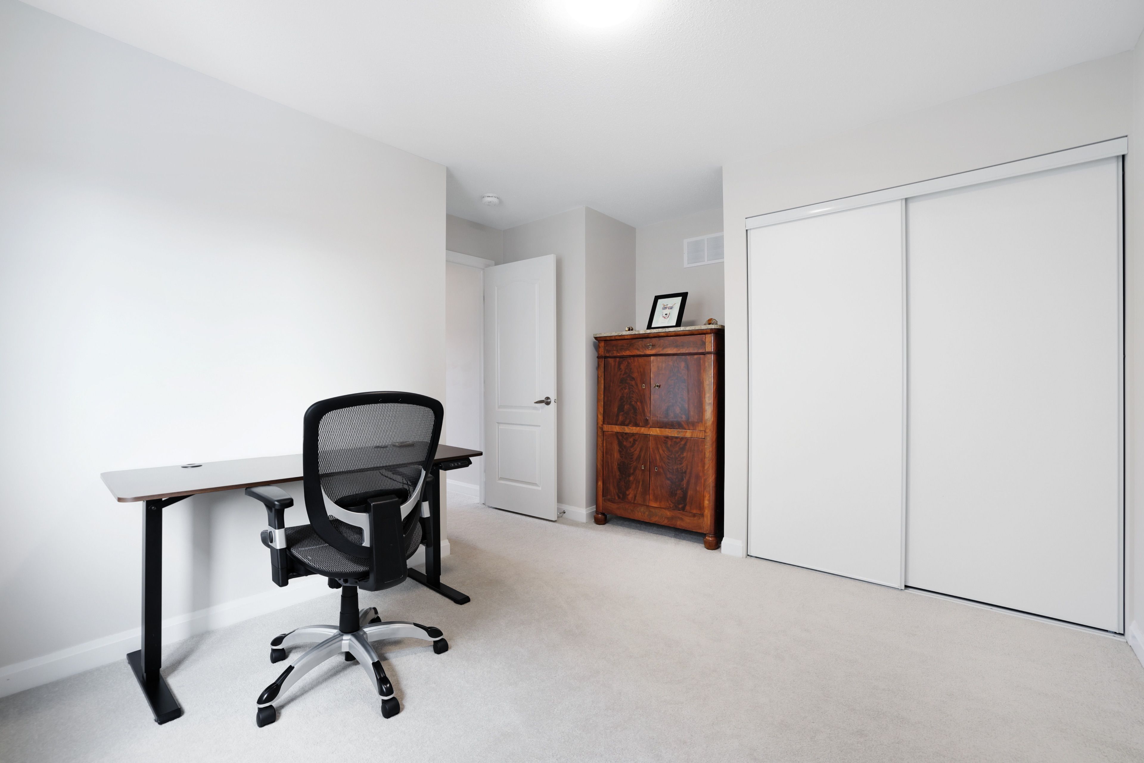 This gorgeous 4 bedroom home with a loft, offers elegant living space with contemporary finishes & neutral decor. Hardwood flows throughout the main floor including the gourmet kitchen complete with induction stove, quartz countertops, soft-close drawers providing generous work & storage space, an entertainment-size island & patio doors to the low maintenance backyard. Enjoy the living room with gas fireplace surrounded by custom built-in shelving and large windows. The primary bedroom boasts 2 walk-in closets and well-appointed en-suite with double sinks, warming towel bar & walk-in shower. Three additional bedrooms (one is segregated with a cathedral ceiling and triple window), full bathroom and loft area suitable for an office nook offer adaptable living space. The main floor mudroom with built-in storage bench, hall tree & cabinetry provides direct access to the attached two car garage and stairway to the finished basement complete with a 3-piece rough-in for an additional bathroom. The private, fully fenced back yard offers a landscaped, low maintenance entertainment-size space to relax and unwind with extensive interlock, stone and artificial turf and the option of raised gardens. Close to schools, parks and walking distance to trails and the pond. Just imagine!