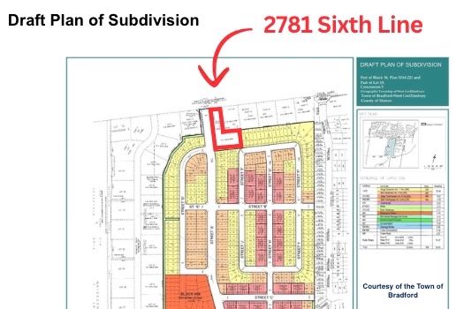 A prime investment opportunity to acquire 1. 631 acres of land located at the main entrance of bradford's largest upcoming residential subdivision with 998 homes, the bradford highlands(former bradford highlands golf course). This exceptional corner lot boasts over 110 feet of frontage on sixth line and over 427 feet along the future main entrance of the subdivision,offering high visibility and exposure. Strategically positioned within a rapidly growing community, this property presents endless potential for future development, including commercial use, a small plaza, gas station, or residential projects (subject to approvals). With ongoing residential expansion and a surging local population, this parcel offers outstanding potential for investors and developers seeking to establish a presence in one of bradford's most desirable growth areas. Its size, location, and direct adjacency to new subdivision lands make it a valuable long-term addition to any real estate portfolio. A 5 bedroom, 2-storey home with over 2,300 sq. Ft. Of above-ground living space adds further value to the property ideal for rental income or as a comfortable residence while capitalizing on future development potential.