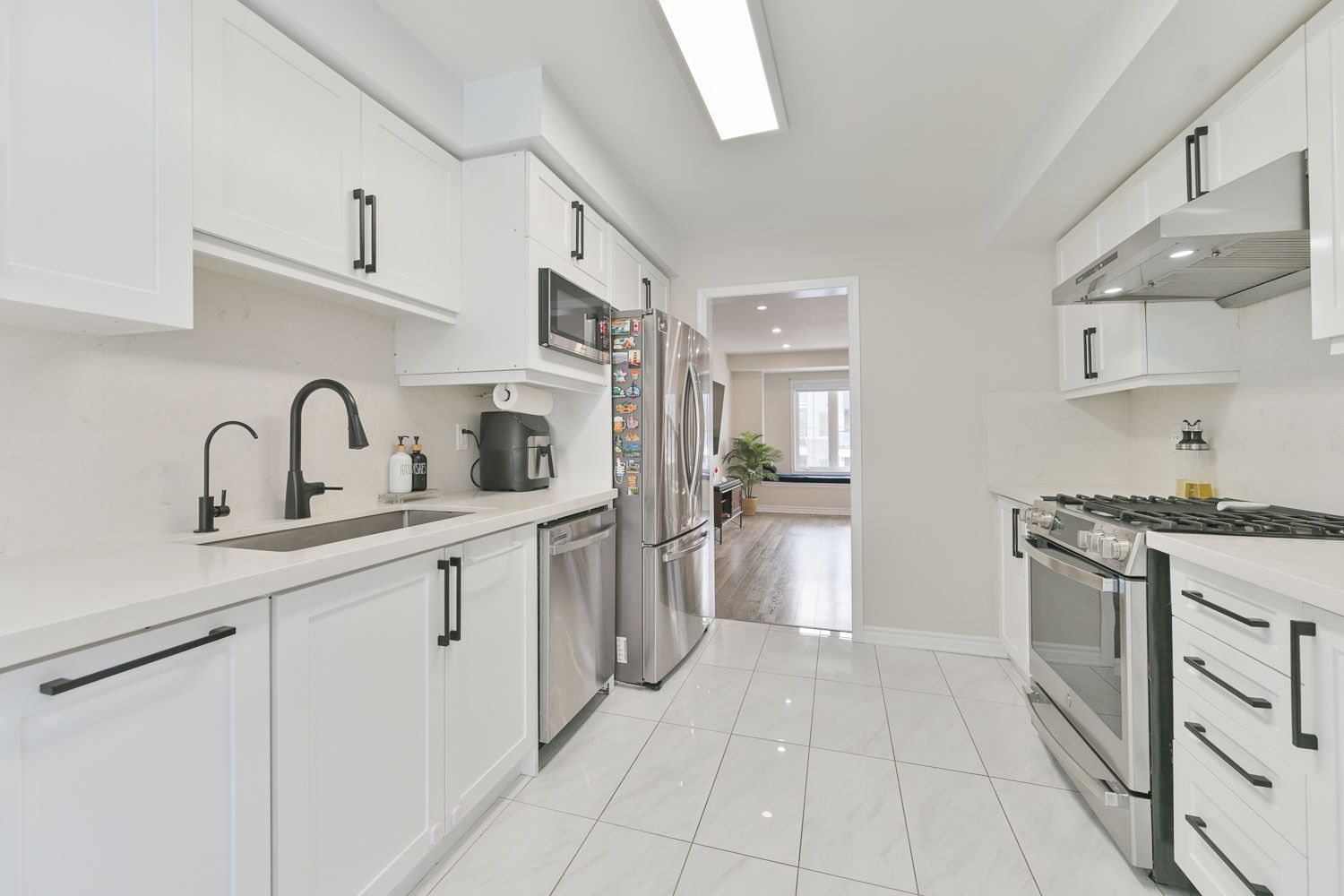 • Updated gourmet kitchen with stainless steel appliances and ample storage.