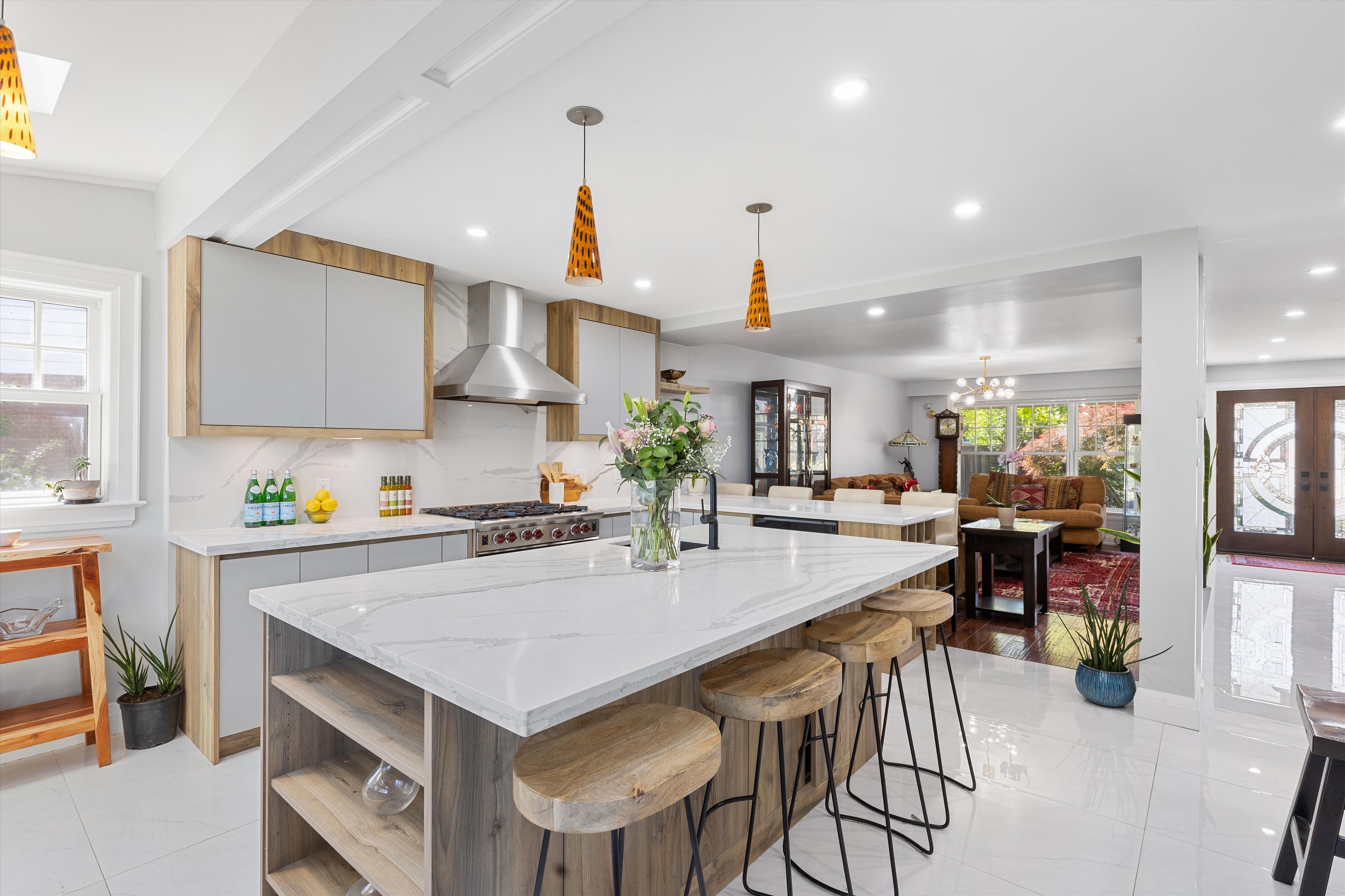 • Chef-inspired kitchen with high-end appliances and a spacious center island.