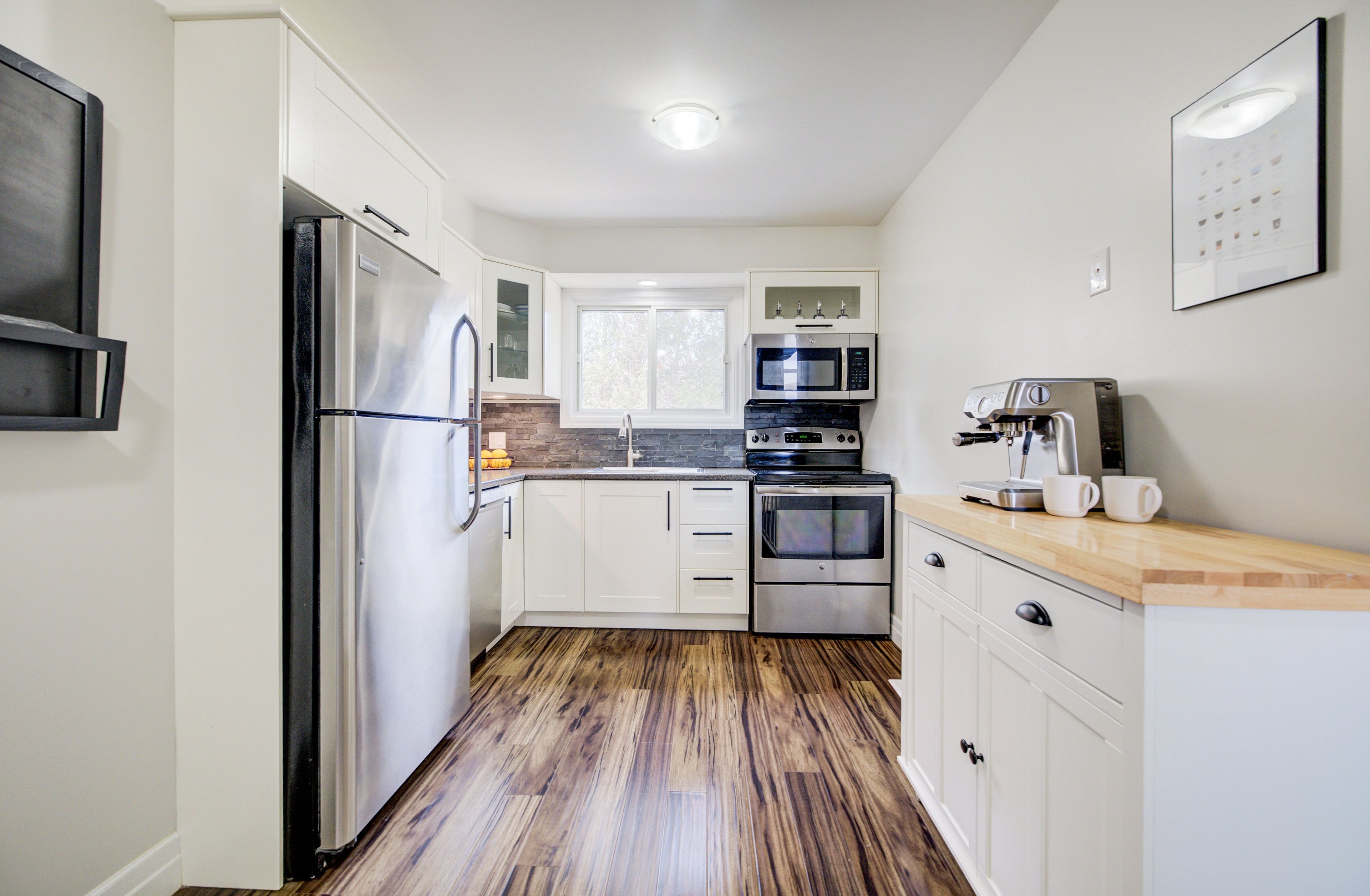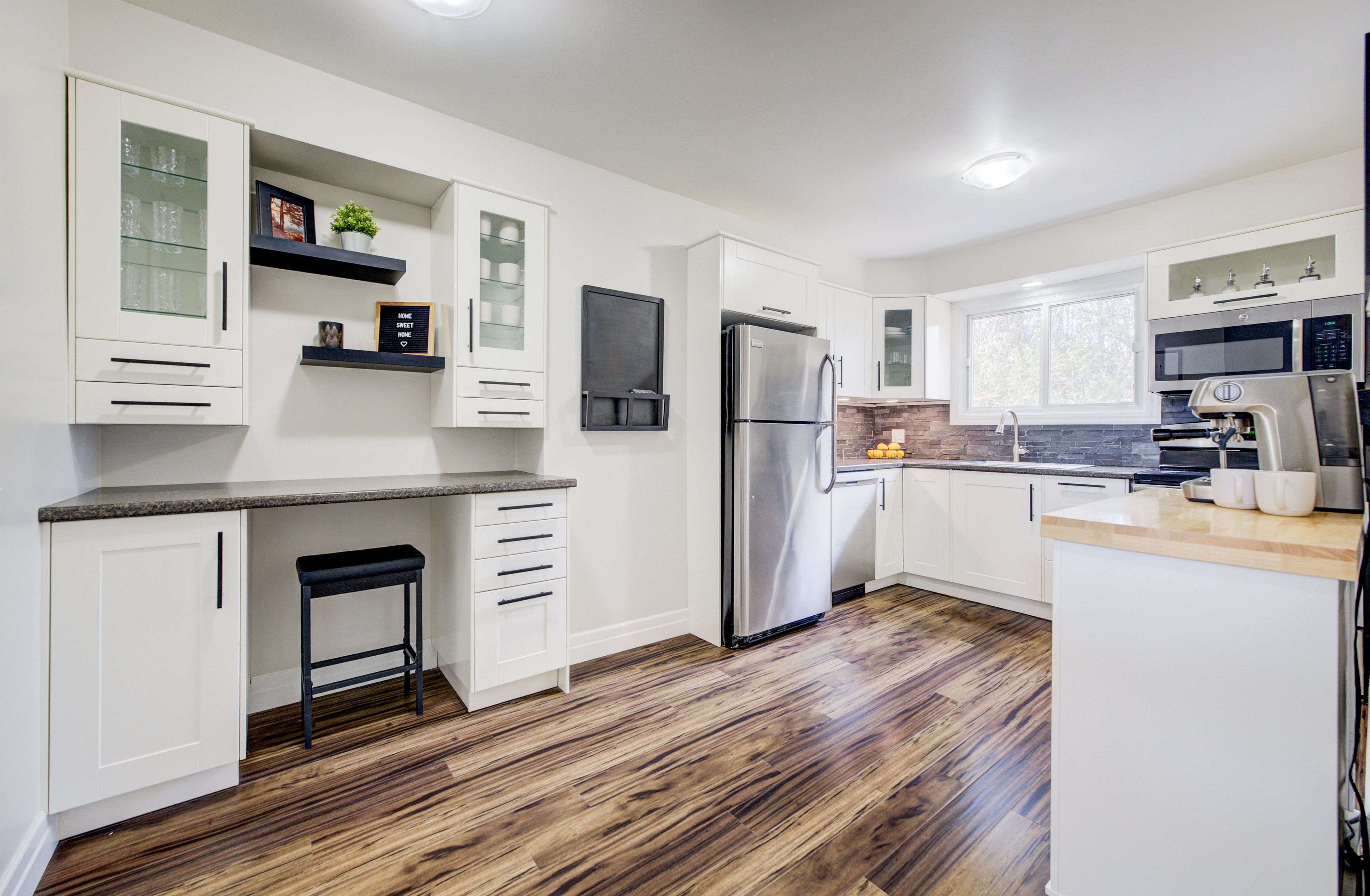 • Bright kitchen with dining area and walkout to the patio for outdoor living.