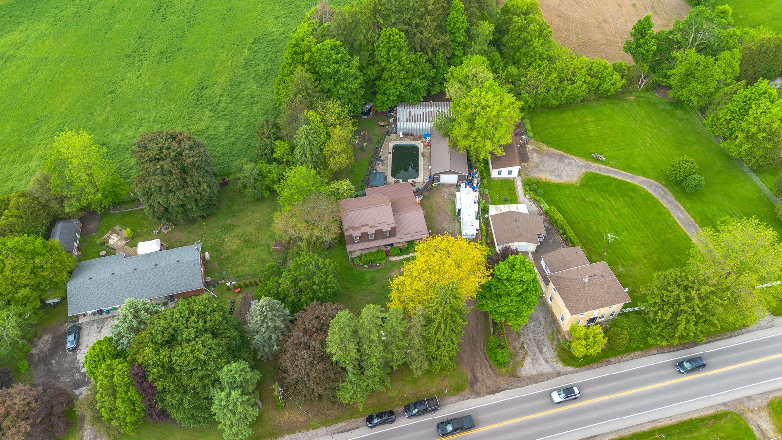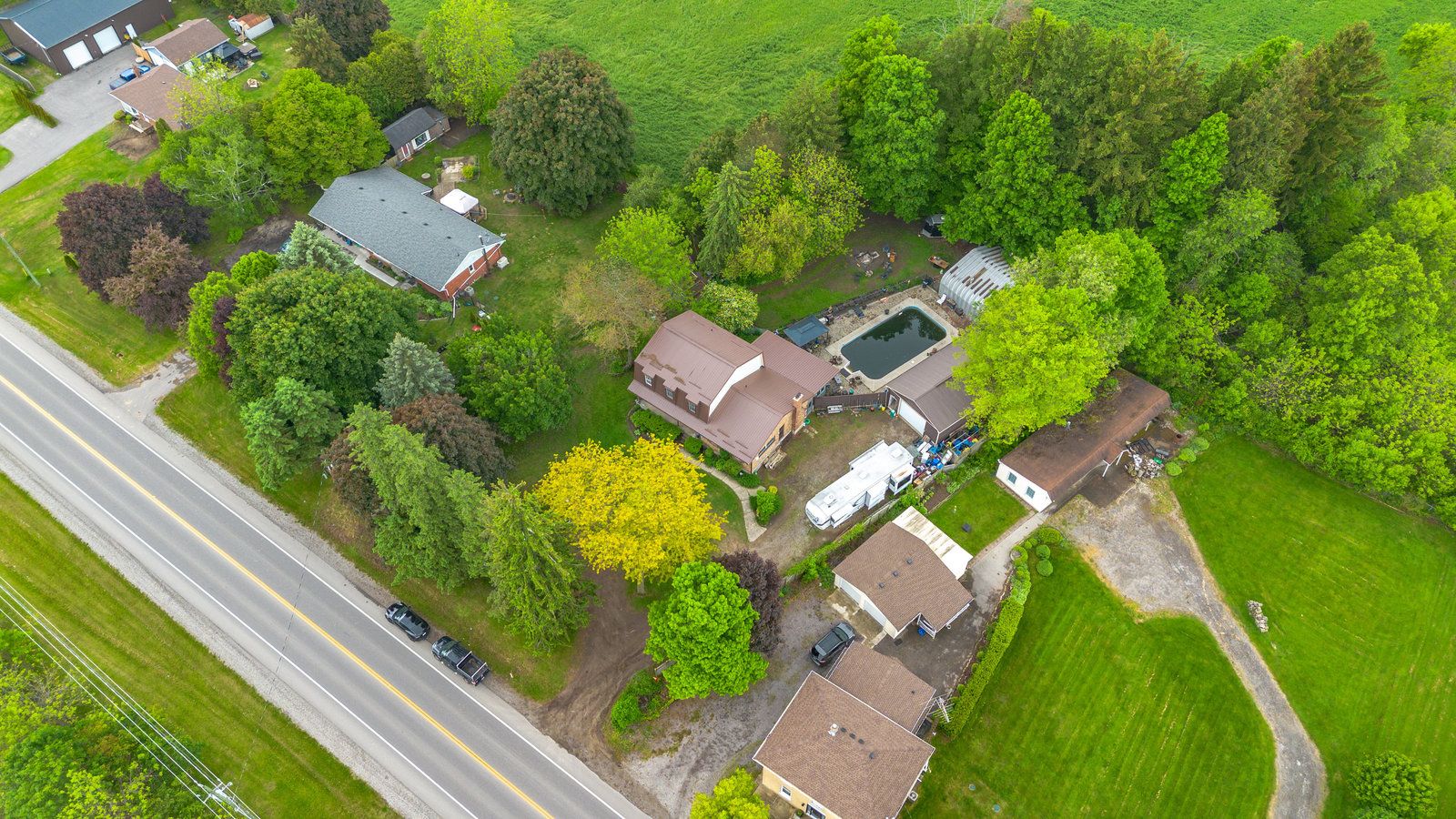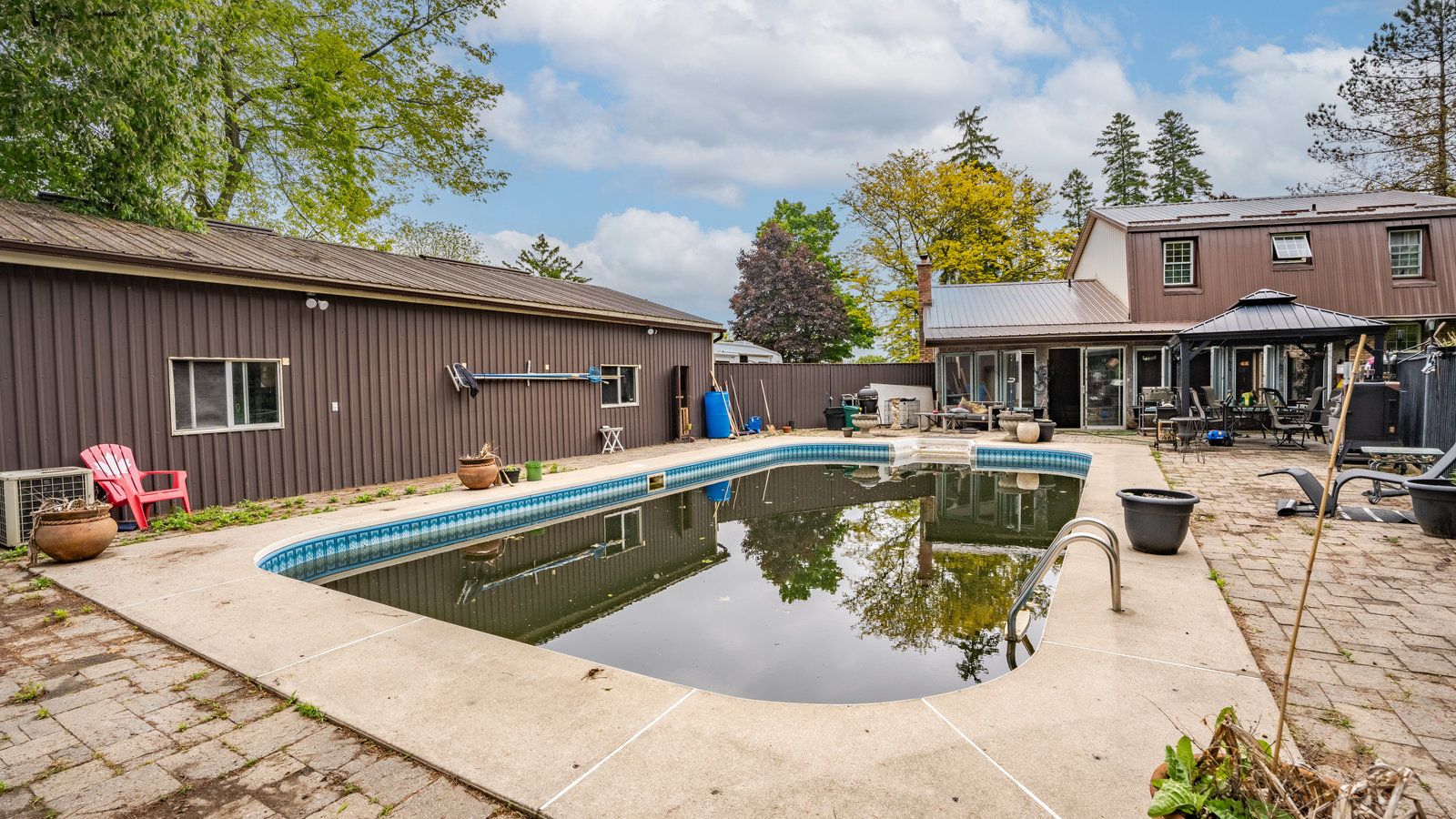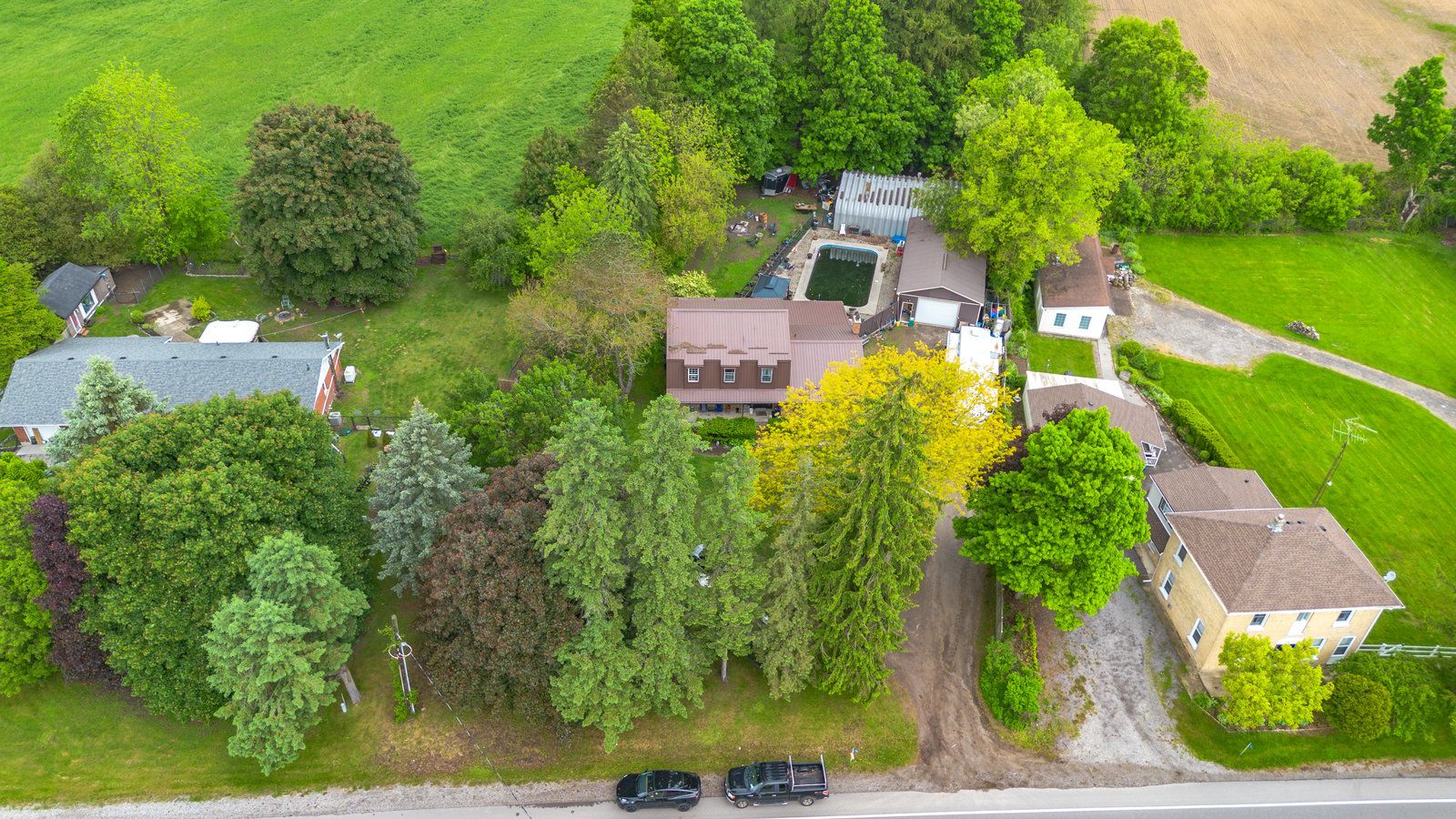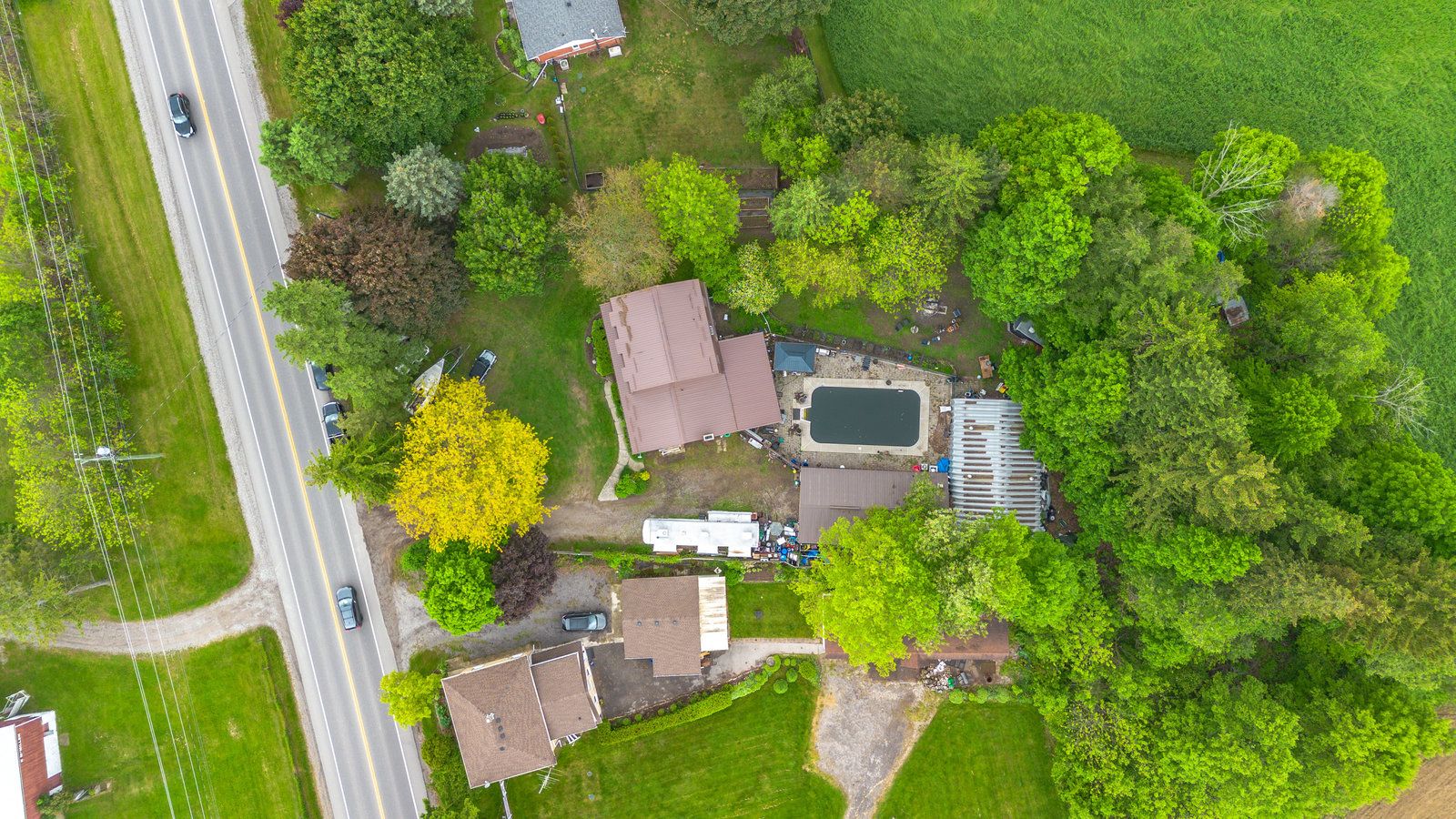 Welcome to 279 cockshutt road in brantford - a charming and spacious 2-storey home nestled on a beautifully landscaped 0. 92-acre lot in a tranquil rural setting. This property offers approximately 3,507 sq ft of living space, including 3 bedrooms and 2 full bathrooms, making it perfect for families or multi-generational living. The main floor features blonde hardwood and tile flooring, a bright and inviting layout with a formal living room, a cozy family room with wood burning fireplace, a separate dining area, and a well-appointed kitchen filled with natural light and ample cabinetry. Upstairs, you'll find 3 bedrooms and 2 full bathrooms, while the partially finished basement offers flexible space for a rec room, office, or additional guest quarters with a walk-up back entrance. Outside, enjoy the peaceful surroundings, mature trees, and a large yard, covered porch with bar and hot tub, and oversized in-ground pool ideal for entertaining or relaxing. The home also includes a heated detached 6-car garage, additional large insulated/ heated quonset, and parking for 10+ vehicles. Recent updates include roof shingles (2016) and a natural gas forced-air heating and central a/c system. With a private well and septic system, this home offers self-sufficient living just minutes frombrantford's conveniences, schools, and highways. Zoned residential and located near the corner of cockshutt road and campbell farm road, this property is a rare opportunity to enjoy country living with modern comforts.