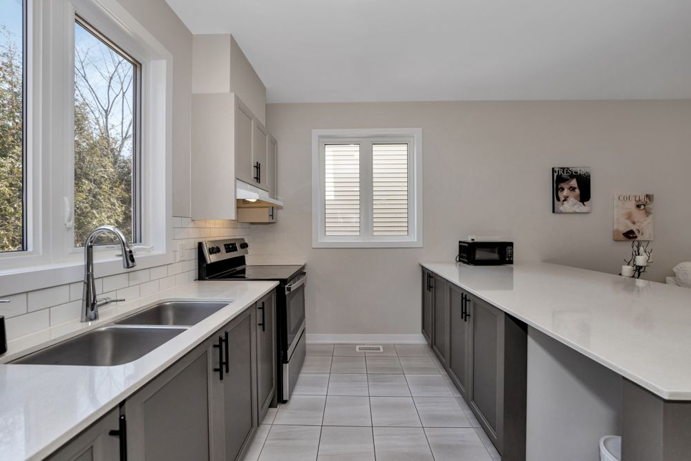 • Upgraded kitchen with quartz countertops and stainless steel appliances.