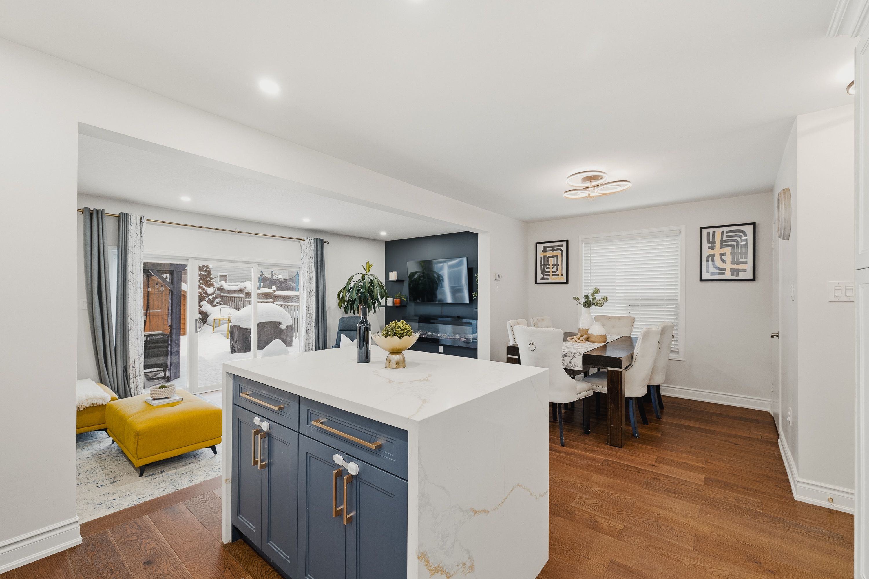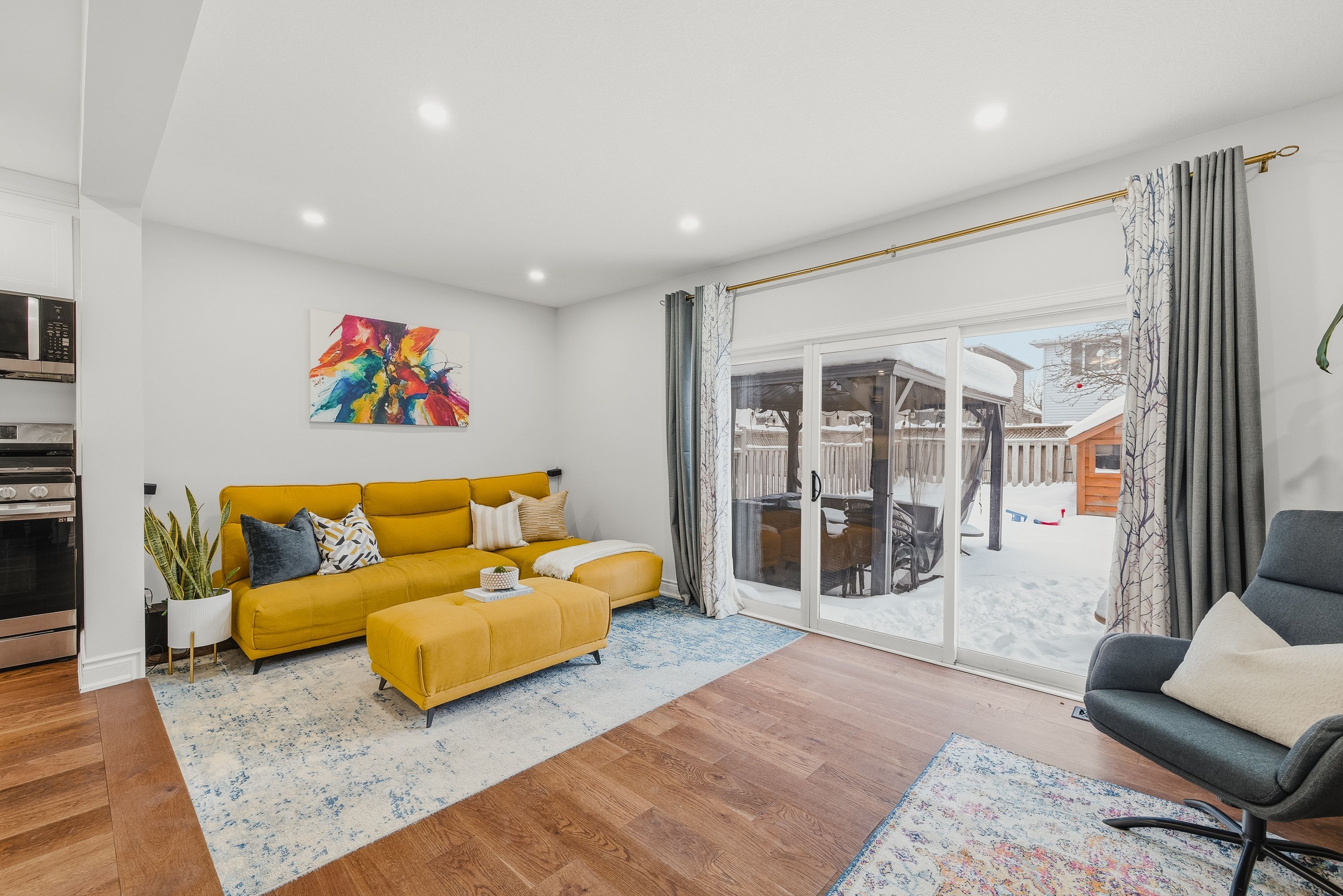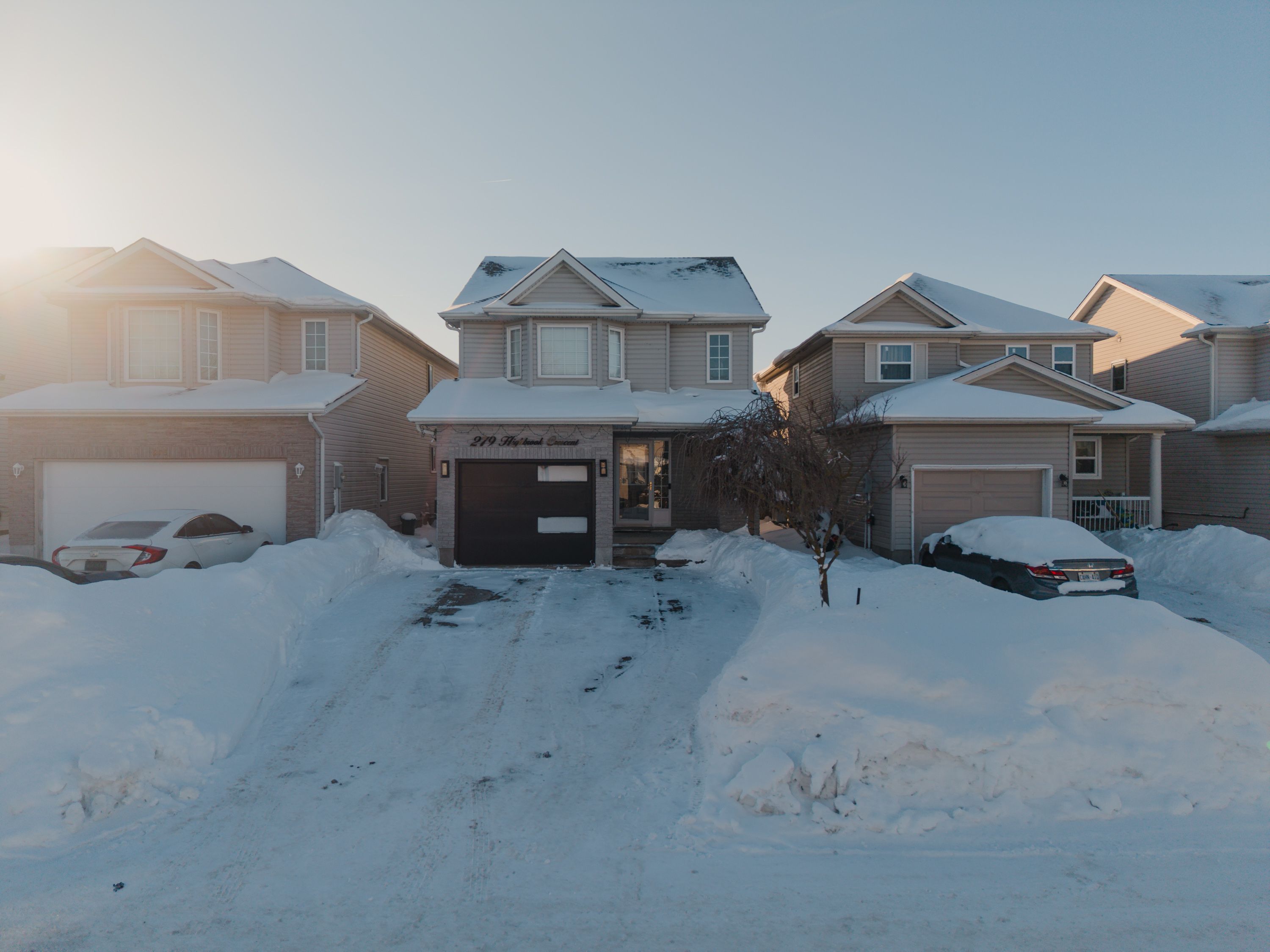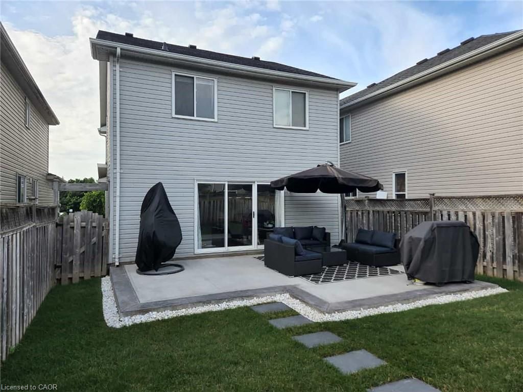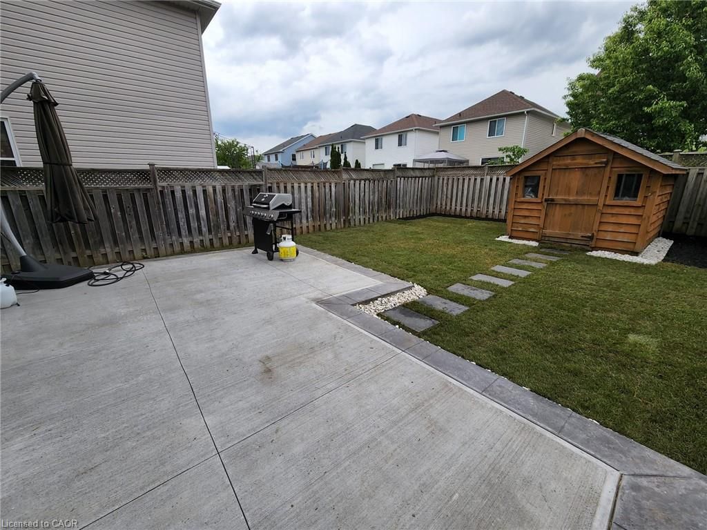 Welcome to 279 highbrook crescent, a fully finished home offering 3 bedrooms, 4 bathrooms, and parking for up to 5 vehicles, located in a quiet, family-friendly neighbourhood of kitchener. This move-in-ready property combines modern upgrades with functional living space throughout. The bright, open-concept main floor features updated flooring, pot lights, hardwood stairs, and popcorn ceilings removed throughout the home (2021). The refreshed kitchen with stainless steel appliances flows seamlessly into the dining and living areas, with walk-out access to the backyard-ideal for everyday living and entertaining. The private backyard features a concrete patio and is thoughtfully landscaped (2022), with a custom wood shed and a gazebo added in 2024, creating an inviting outdoor retreat. The second floor offers a spacious primary bedroom with ensuite, along with two additional well-sized bedrooms and a full 4-piece bathroom. Recent updates include accent walls, a built-in closet in the kids' room (2024), and ensuite upgrades with a new vanity and glass shower door (2026). The fully finished basement provides additional living space with updated carpet (2021) and a 3-piece bathroom with new vanity (2026). Additional upgrades include stove, dishwasher, furnace, and water softener (2021), fridge and microwave (2024), updated staircase spindles, powder room vanity, baseboards, stucco ceiling, and full interior paint (2024). Conveniently located within walking distance to grocery stores, shopping plazas, restaurants, schools, daycare, parks, trails, mclennan park, and sheridan nursery.