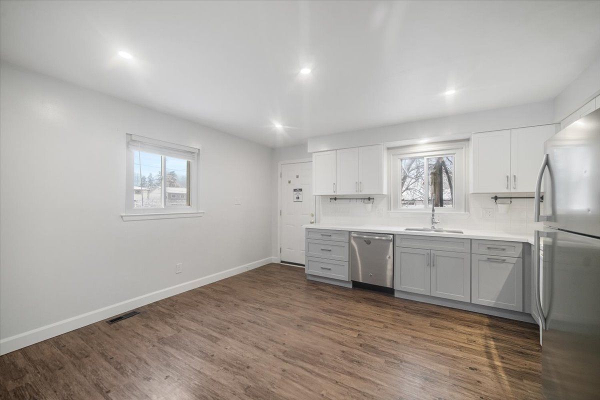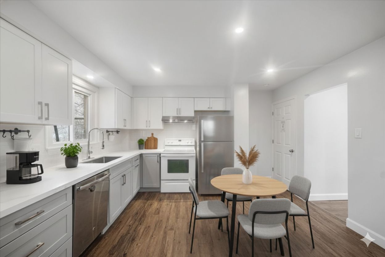 • Bright main floor with new vinyl flooring and eat-in kitchen.