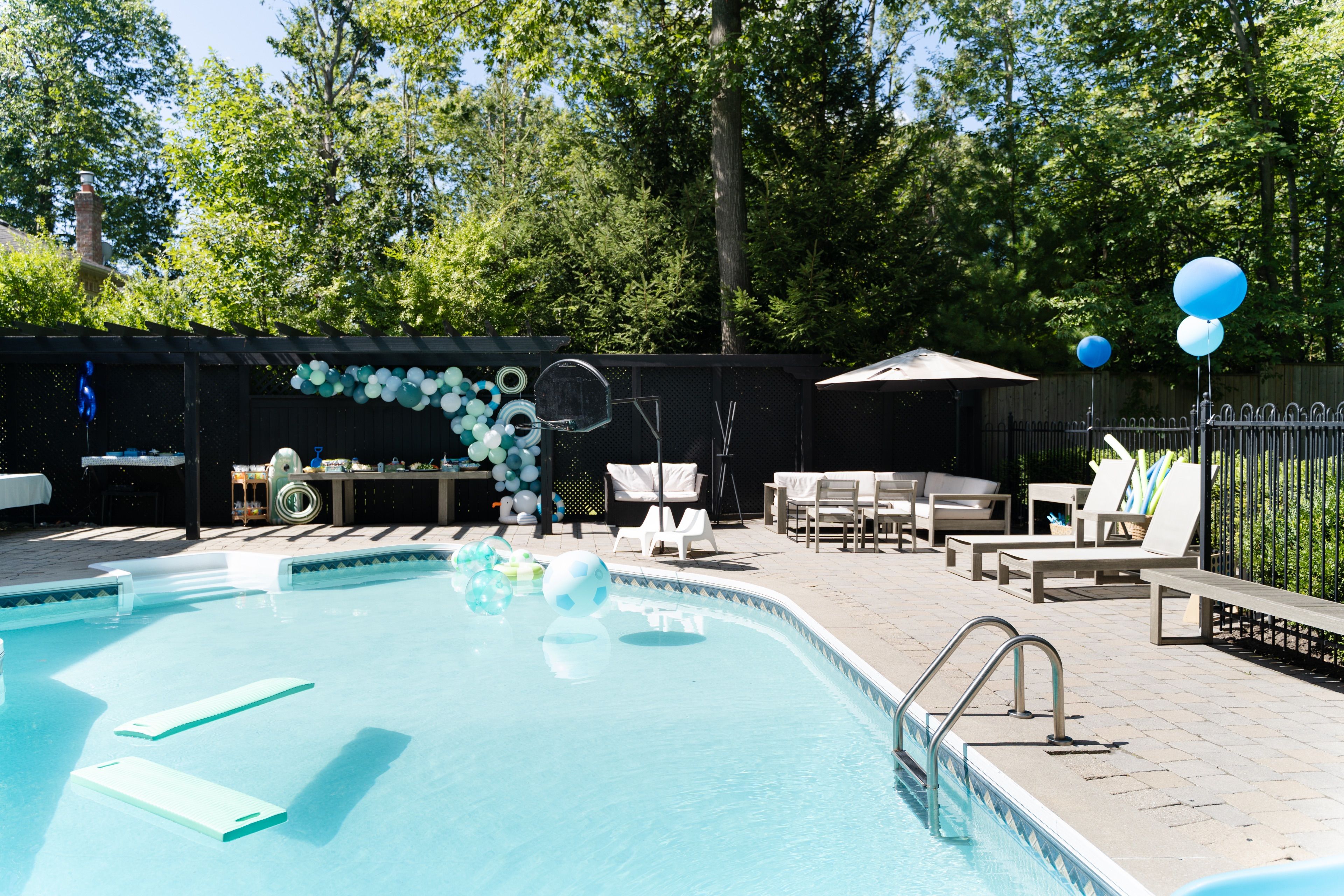 • Private backyard with a heated saltwater pool and mature landscaping.
