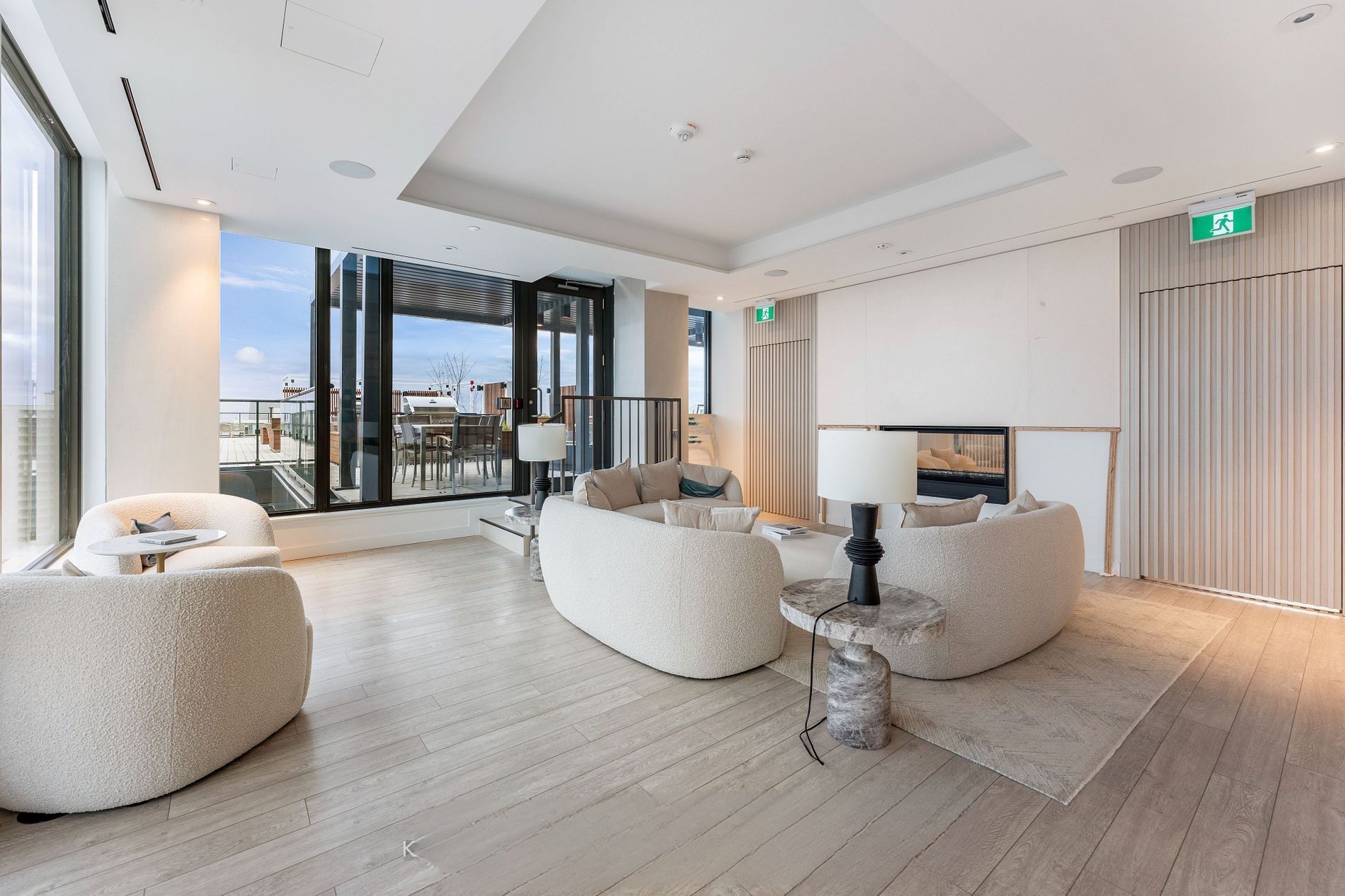 • Floor-to-ceiling windows and lake view from the balcony enhance the living experience.