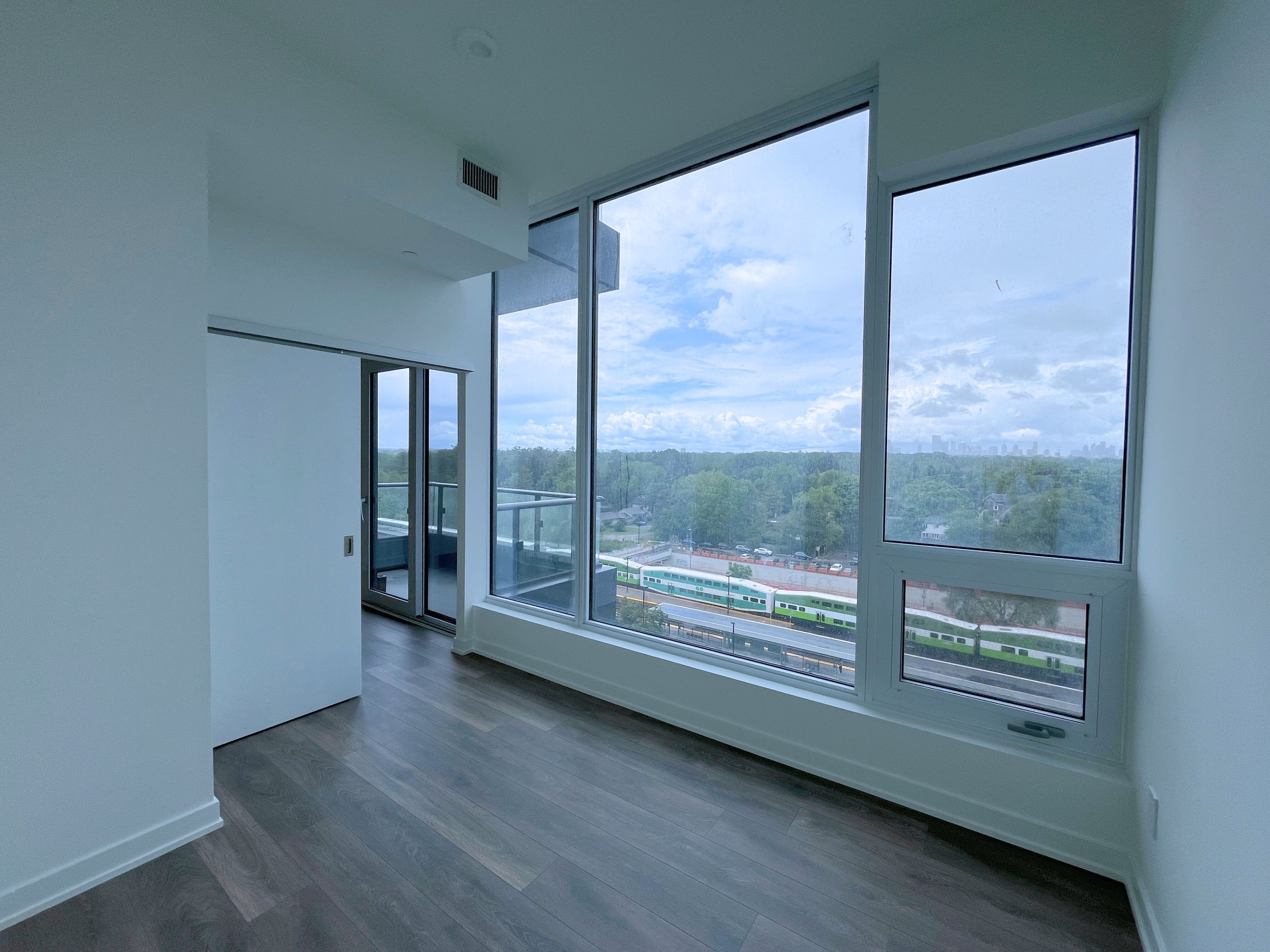Experience the epitome of luxury in this new, 449 sq ft suite featuring soaring 10-foot ceilings. Flooded with natural light from the expansive floor-to-ceiling windows, this intelligently designed open-concept space effortlessly merges a chic living area with a state-of-the-art kitchen, complete with integrated appliances and elegant quartz countertops, perfect for everything from a quick morning coffee to elaborate culinary creations. Step out onto the generous balcony to enjoy the outdoors. Benefit from the excellent building amenities that elevate your living experience without needing to leave the premises. Situated in the heart of mississauga, you're just steps away from a vibrant selection of restaurants, lively cafes, essential shops, convenient go transit options, and future lrt, making life both easy and enjoyable.