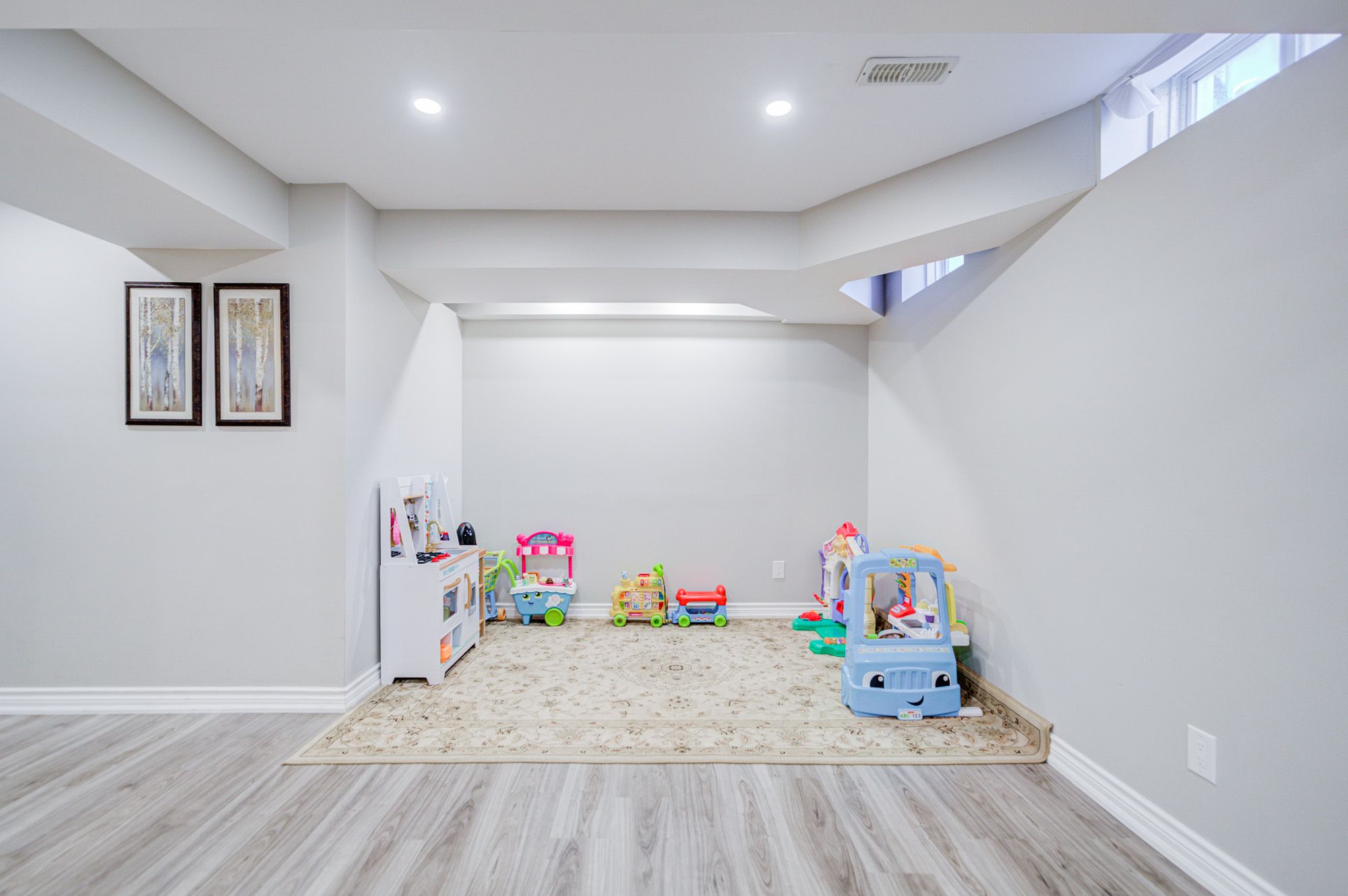 • Finished basement offers a large recreation area and additional storage.