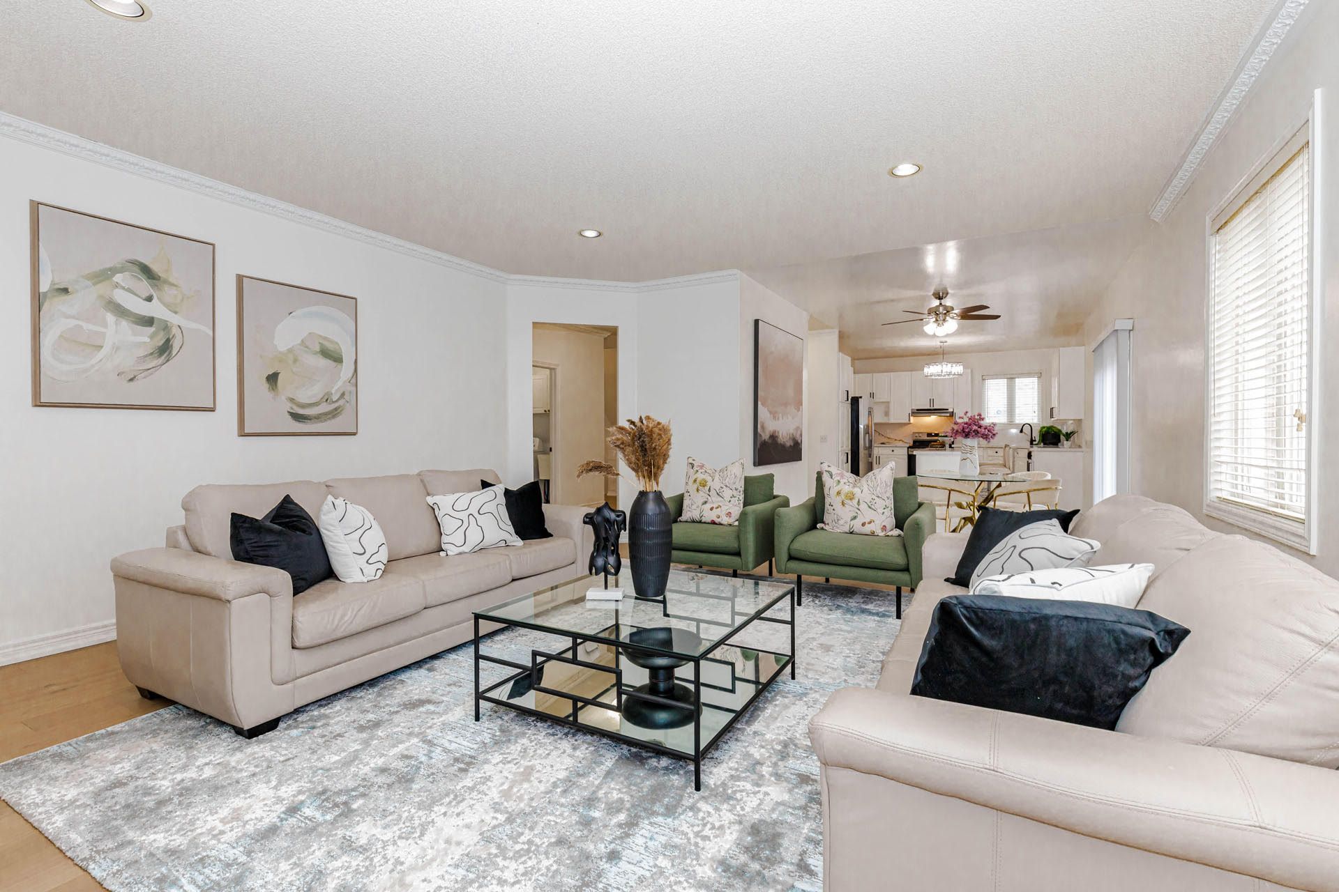 • Bright, open layout with high ceilings and abundant natural light.