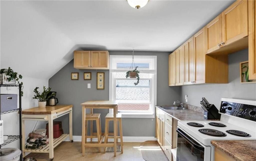 • Updated kitchen with a gas stove and ample storage.