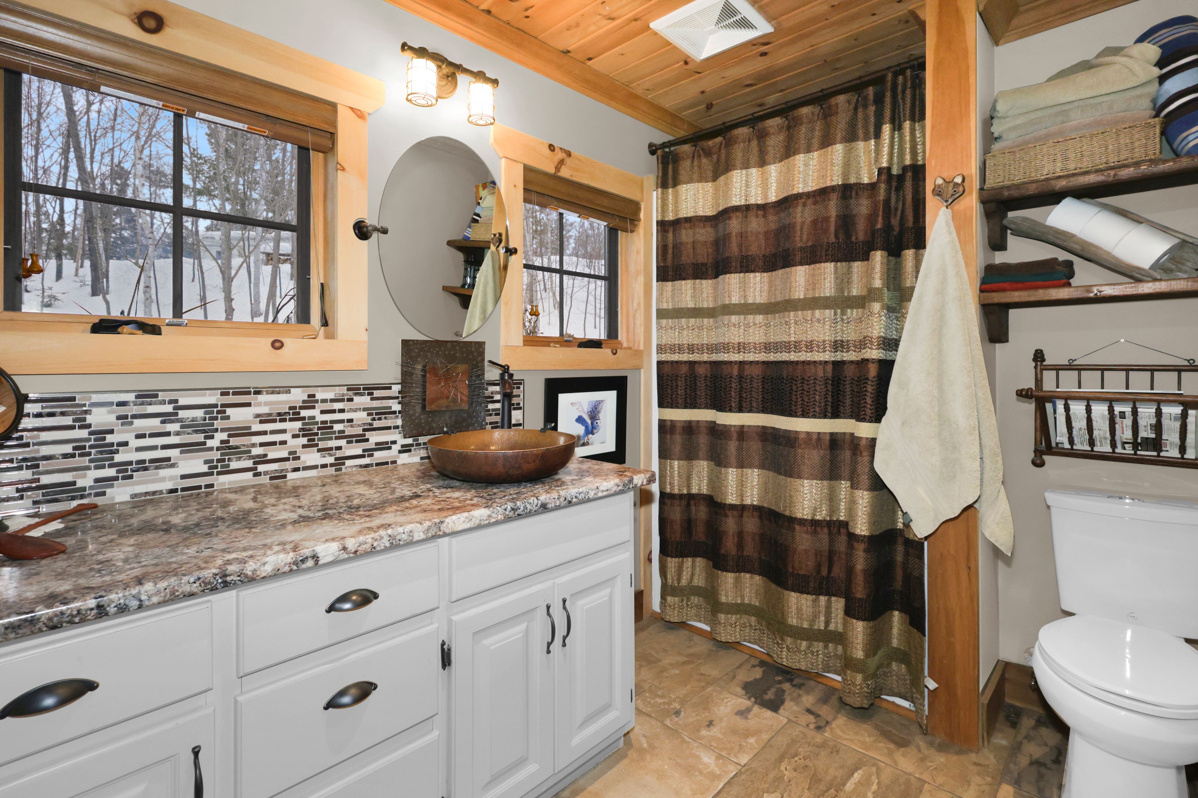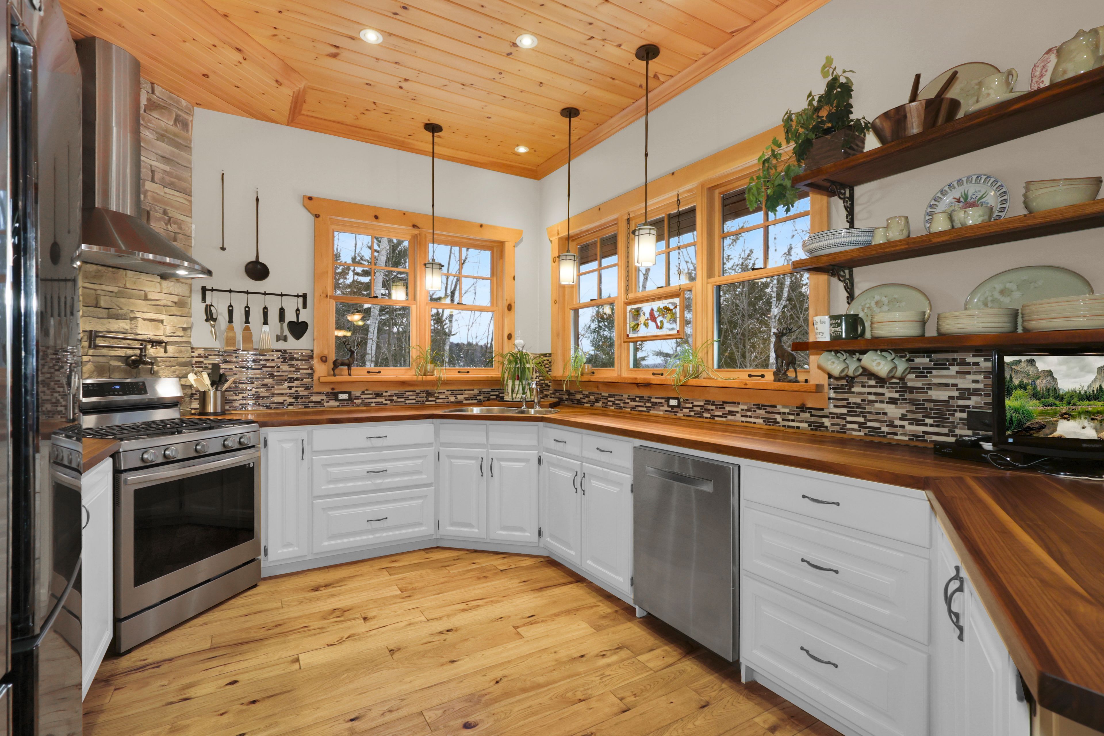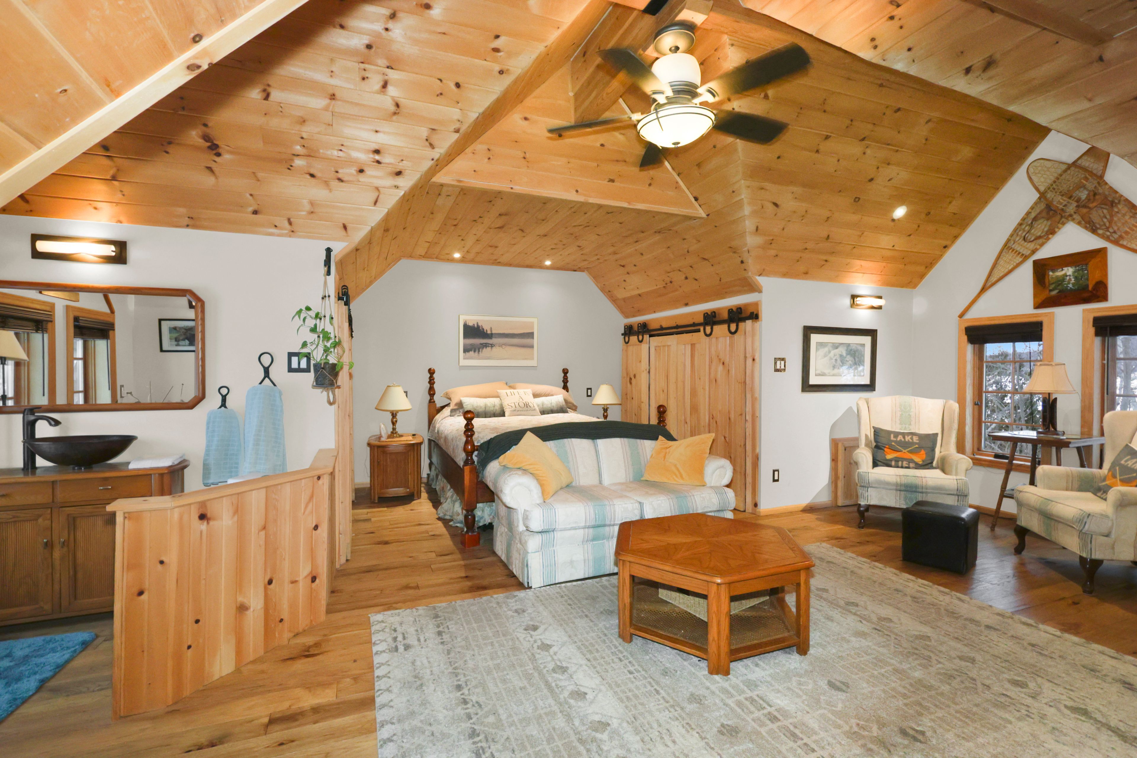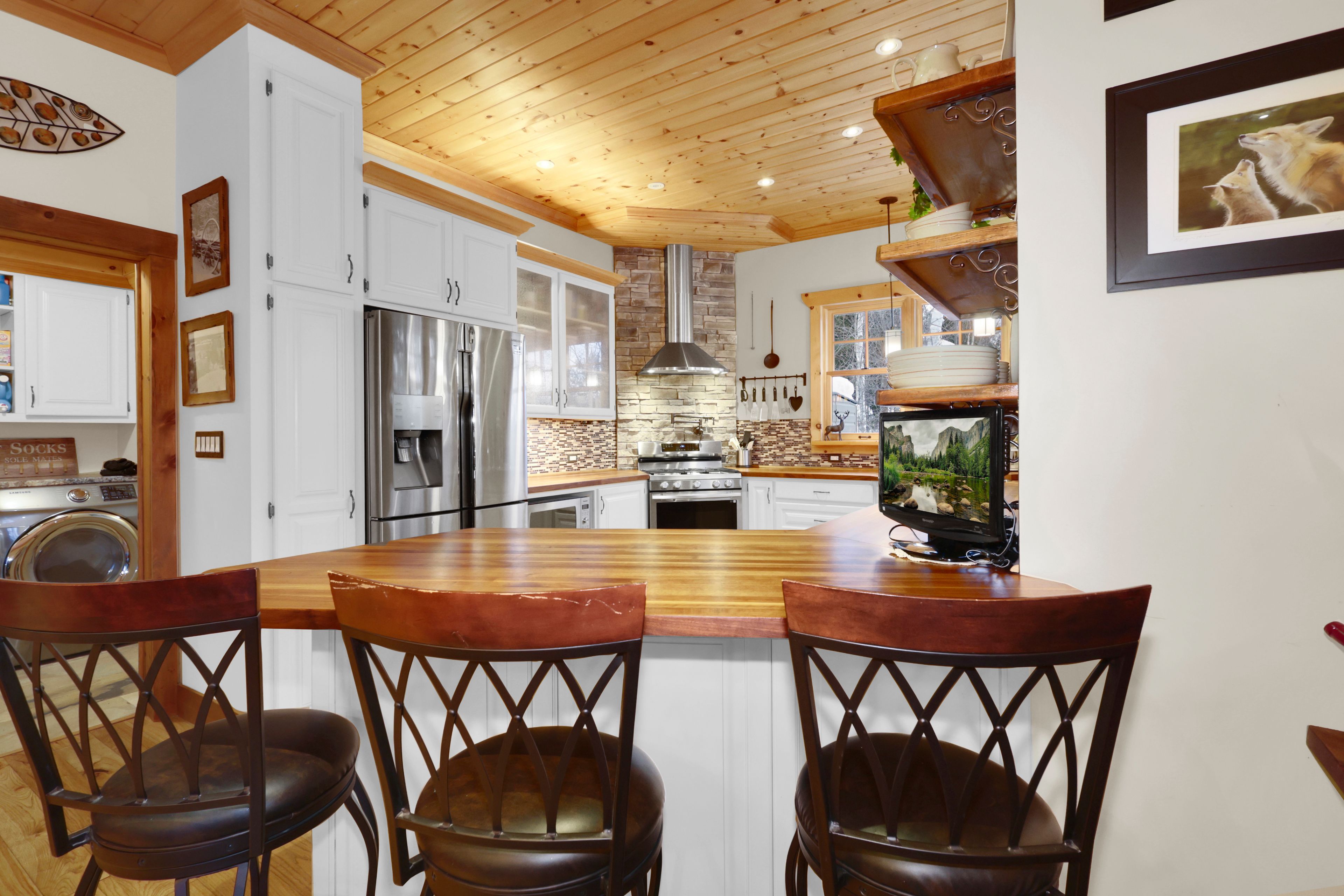 • Custom-built log home with 2 bedrooms and 2 baths.